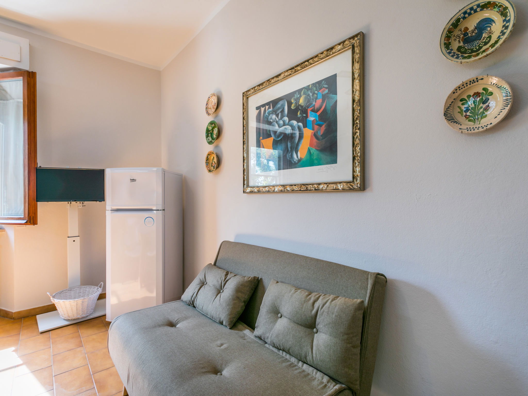 "Le Rocche", Appartement de 3 pièces 55 m2 au 1er étage. Spacieux et clair, aménagement agréable et moderne: à l'étage supérieur: (escalier extérieur) séjour/chambre à coucher avec 1 divan-lit et TV (satellite). Sortie sur la terrasse. 2 chambres doubles, chaque chambre avec: TV (satellite), chauffage électrique et air-conditionné avec TV (satellite), chauffage électrique et air-conditionné. Cuisine ouverte (mini-four, lave-vaisselle, 4 plaques à induction, grille-pain, bouilloire électrique, cafetière électrique) avec table pour les repas. Douche/bidet/WC. Chauffage électrique, chauffage au gaz, air-conditionné. Possibilité de chauffage uniquement du 10.10. au 19.04. Grande terrasse 20 m2, couverte. Place pour s'asseoir. Belle vue éloignée sur la mer et les alentours. A disposition: coffre-fort, chaise haute pour enfant, lit bébé jusqu'à 2 ans, sèche-cheveux. Internet (Connexion WIFI, gratuit). Veuillez noter: maximum 1 animal/ chien autorisé. Extincteur. IT050006B5LNZZD6VU