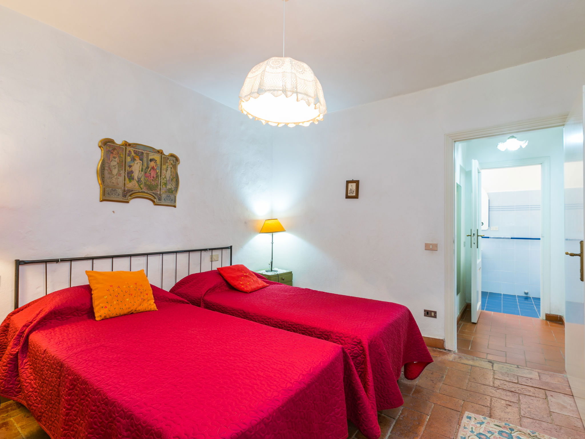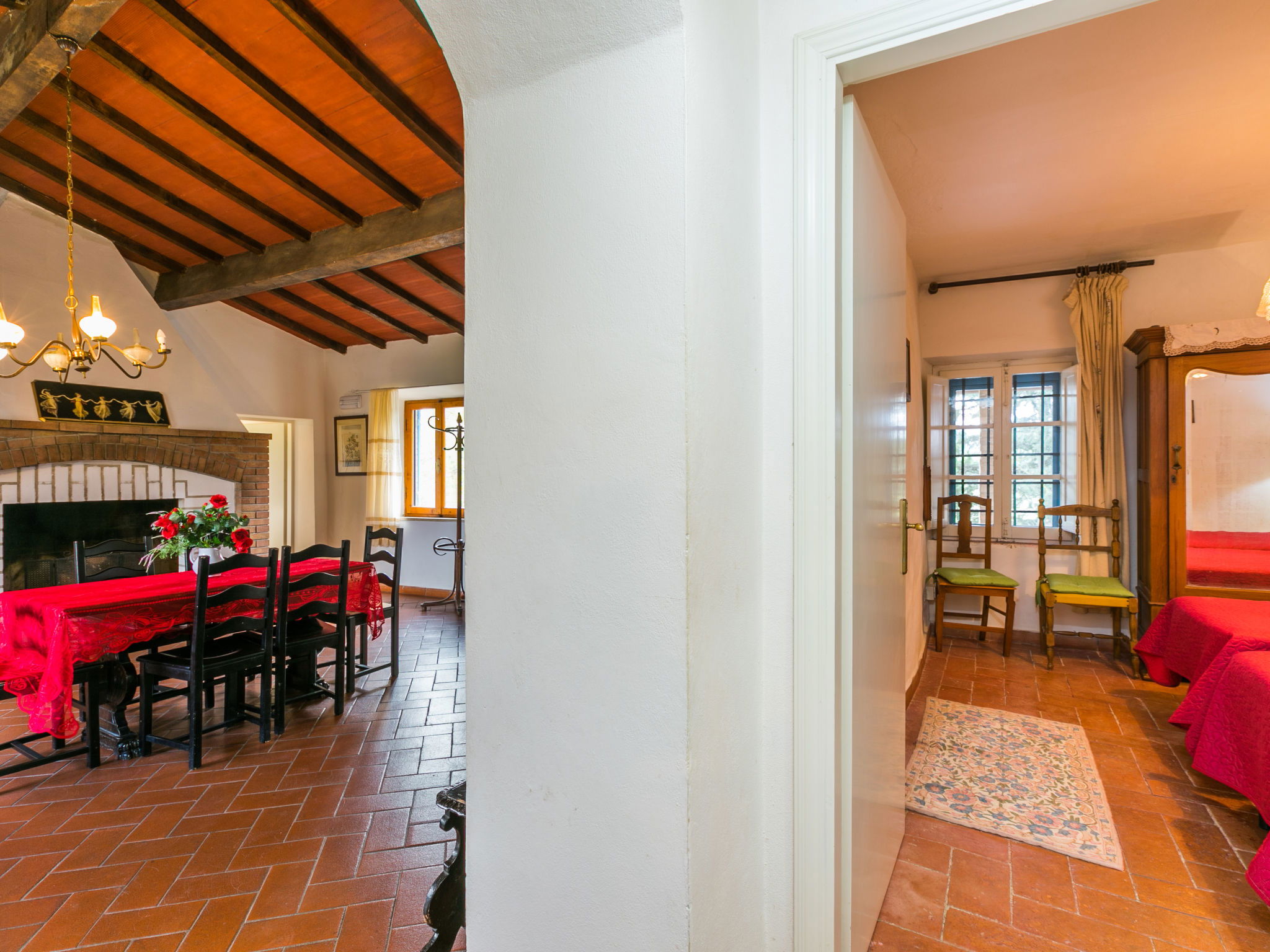"Fattoria Petraglia - Padronale", Appartement de 3 pièces 90 m2 au 1er étage. Logement idéal pour 4 adultes + 2 enfants. Spacieux, aménagement fonctionnel et rustique: à l'étage supérieur: (escalier extérieur) grand séjour/chambre à coucher avec 1 divan-lit, cheminée, table pour les repas et TV (satellite) (écran plat). 1 chambre double. 1 chambre avec 2 lits (80 cm). Petite cuisine (4 feux, micro-ondes, congélateur, cafetière électrique). Bain/bidet/WC. Chauffage au gaz (en sus). Sol en pierres naturelles. Jardinet. Meubles de terrasse, barbecue. Belle vue sur le jardin, les alentours et la forêt. A disposition: chaise haute pour enfant, lit bébé jusqu'à 2 ans. Internet (Connexion WIFI, gratuit). Place de parking (2 Voitures). Veuillez noter: adapté(e) aux familles. Logement non-fumeur. Maximum 1 animal/ chien autorisé. Entrée privée. IT052016B522T7FAR2