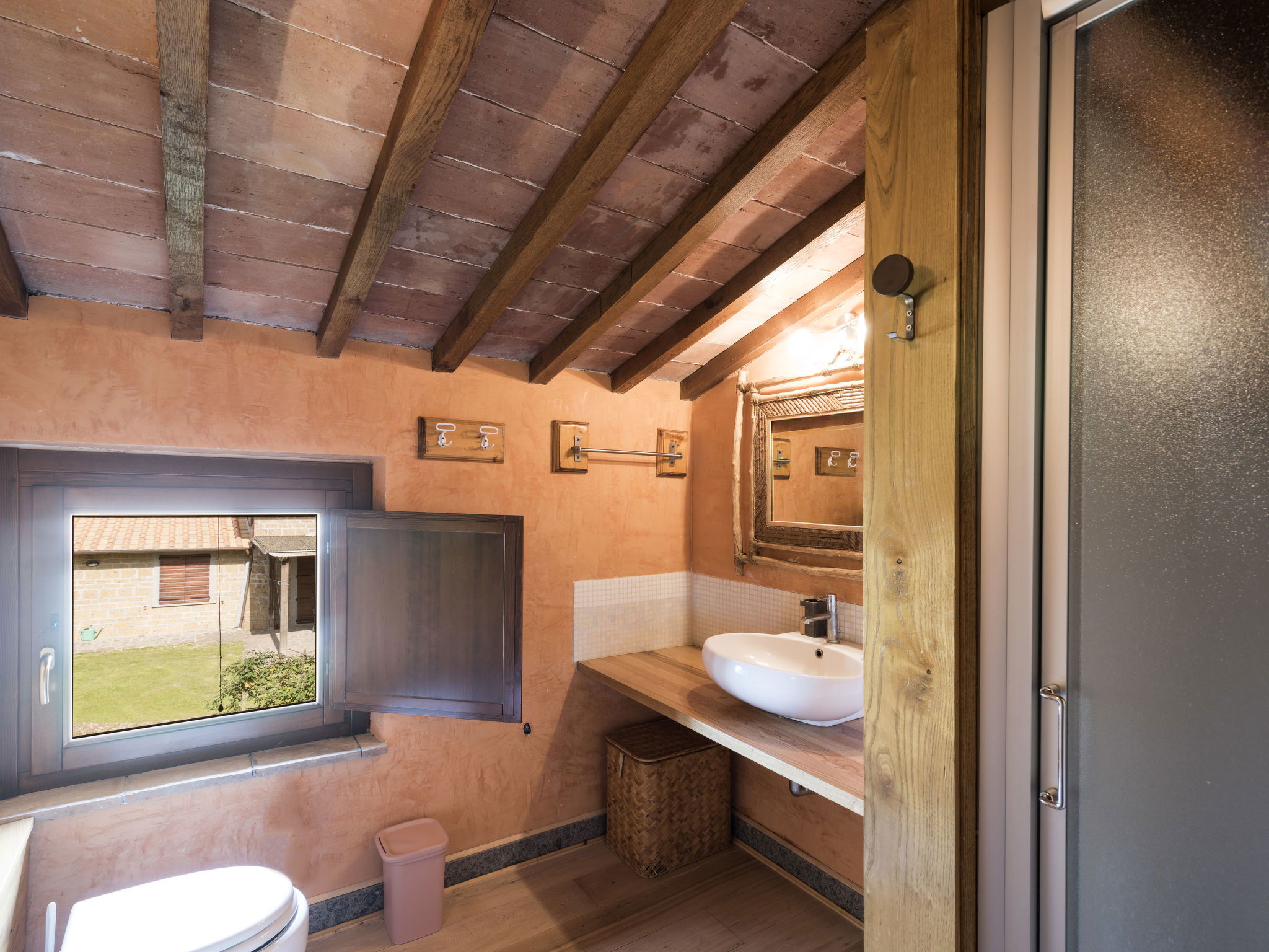 Belle maison de campagne accueillante "Podere La Cavallara", environnée par les champs. 6 appartements dans la résidence. À 4 km du centre de Montefiascone, à 17 km du centre de Viterbo, à 85 km du centre de Roma, à 1.1 km du lac. En commun: terrain 2'500 m2, jardin entretenu avec pelouse et arbres, piscine (12 x 6 m, profondeur 140 - 150 cm, disponibilité saisonnière: 16.Mai. - 03.Oct.) avec systeme d'électolyseur au sel. Douche extérieure, meubles de jardin, barbecue, espace de jeux pour les enfants. Infrastructures de la résidence: Connexion WIFI, bain à remous (en sus). Lave-linge (en commun), vélo à disposition. Accès en voiture (200 m chemin non goudronné). Place de parking (couvert) sur le terrain. Magasins 1.5 km, supermarché 4 km, arrêt de bus 2.8 km, gare ferroviaire "Montefiascone" 7 km, plage de sable "Lago di Bolsena" 1.1 km, plage de gazon "Lago Di Bolsena" 1.1 km, centre thermal "Terme Dei Papi" 16 km, baignade en lac "Lago di Bolsena" 1.1 km. Attractions à proximité: Bolsena 18 km, Civita Di Bagno Regio 18 km, Viterbo 19 km, Caprarola 35 km, Orvieto 30 km, Pitigliano 40 km. Veuillez noter: voiture recommandée.