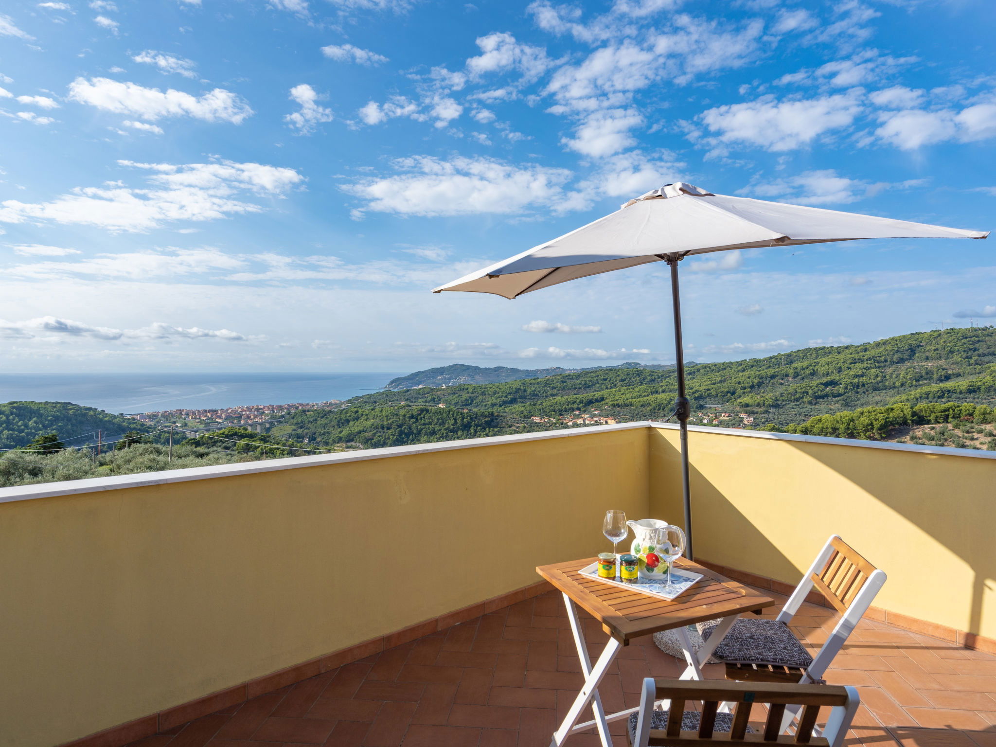 Chiappa à 5 km de San Bartolomeo al Mare: Petite résidence "Colline e Mare". 6 appartements dans la résidence. Dans la localité Chiappa, en bordure de la localité, à 5 km du centre de San Bartolomeo al Mare, à 7.5 km du centre de Diano Marina, situation ensoleillée, surélevée dans un quartier résidentiel, à 5 km de la mer. Sentier en escalier jusqu'à la maison. Parking public 200 m possible dans la rue. Magasins 5 km, supermarché 7.5 km, restaurant 5 km, bar 5 km, arrêt de bus 7.4 km, gare ferroviaire "Diano" 9 km, plage de graviers "San Bartolomeo al Mare" 5 km.
