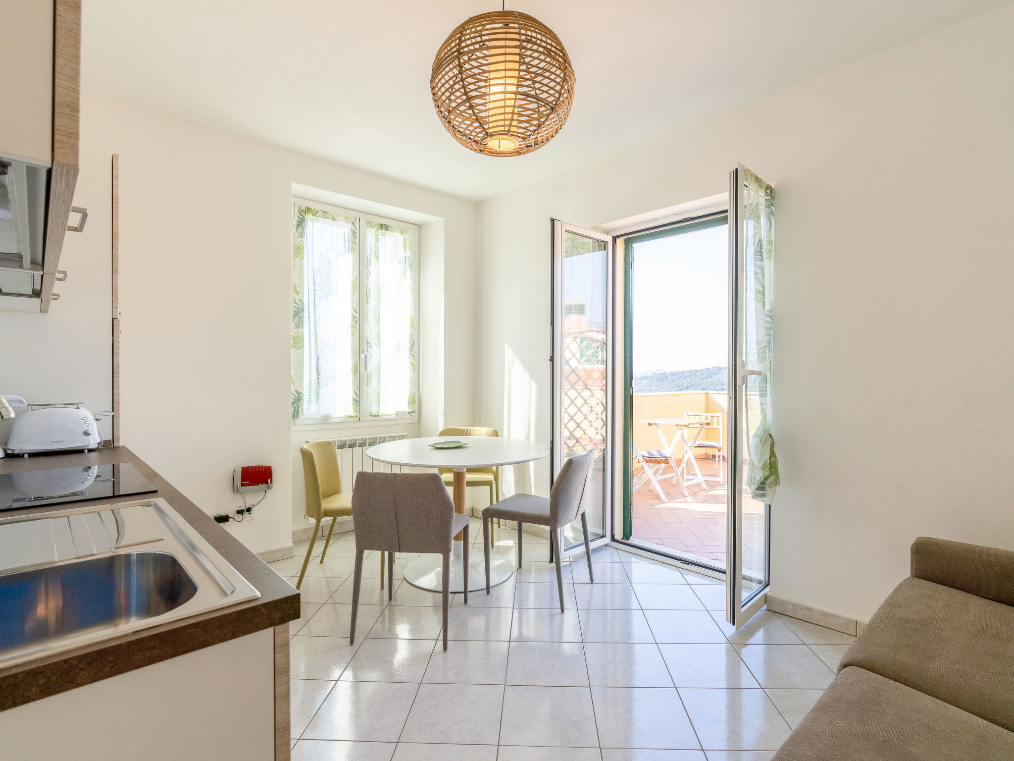 "Basilico", Appartement de 2 pièces 50 m2 au 2ème étage. Clair, aménagement fonctionnel et moderne: 1 chambre avec 1 grand-lit (160 cm). Cuisine/séjour (four, lave-vaisselle, 4 plaques à induction, congélateur, cafetière électrique) avec table pour les repas, 1 divan-lit double (140 cm). Sortie sur la terrasse. Douche/WC. Chauffage au gaz. Possibilité de chauffage uniquement du 15.10. au 30.04. Grande terrasse, situation sud-ouest. Meubles de terrasse, barbecue (portable), chaises longues. Très belle vue éloignée sur la mer et les alentours. A disposition: lave-linge, chaise haute pour enfant, lit bébé jusqu'à 2 ans. Internet (Connexion WIFI, gratuit). Place de parking (1 Voiture). Maximum 1 animal/ chien autorisé. IT008052C2JGB5XOH6