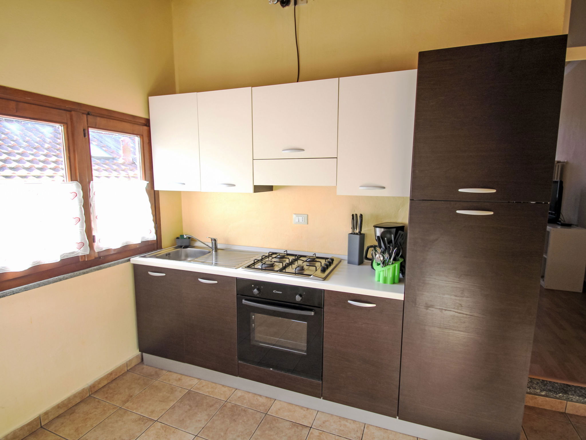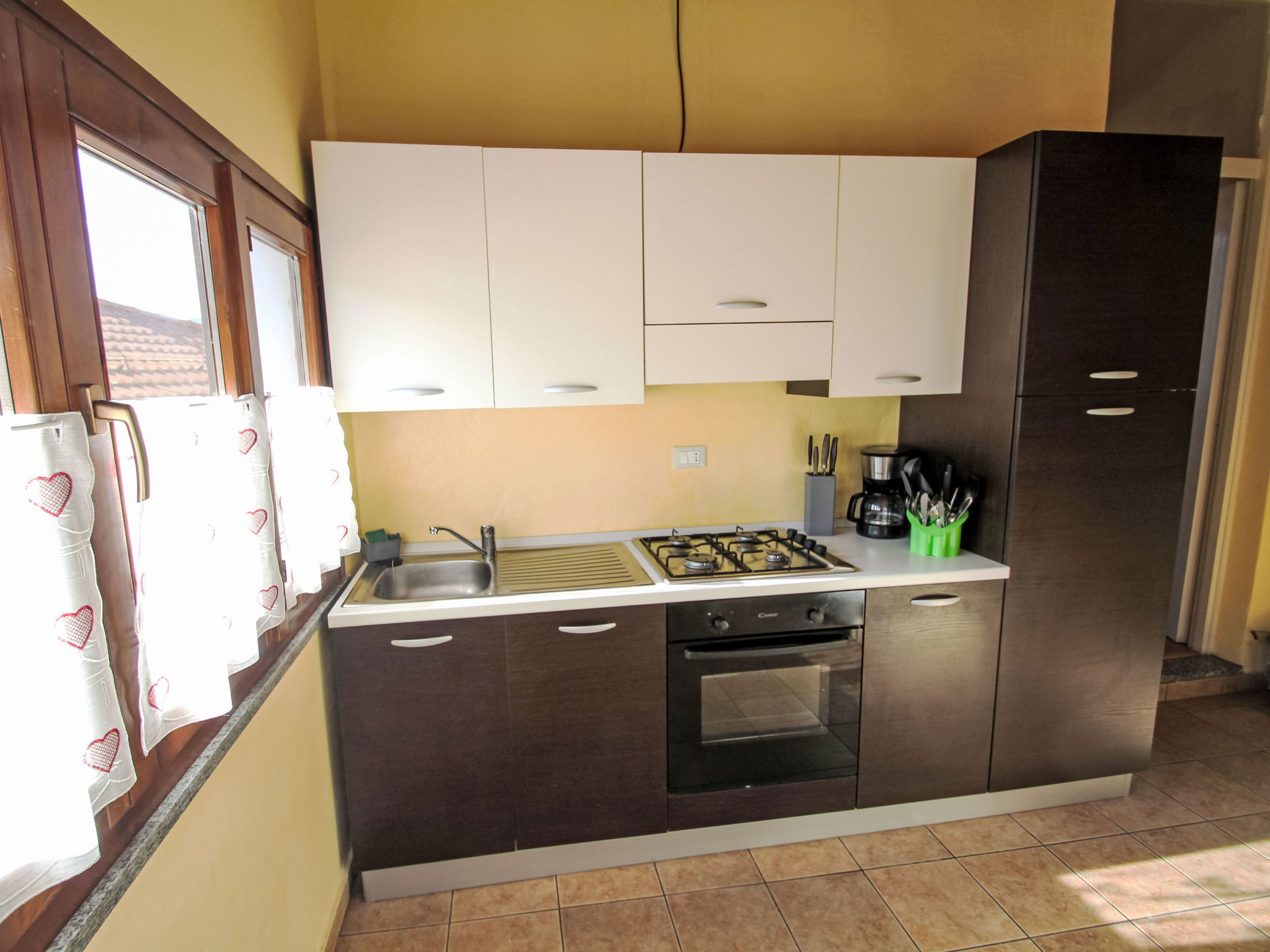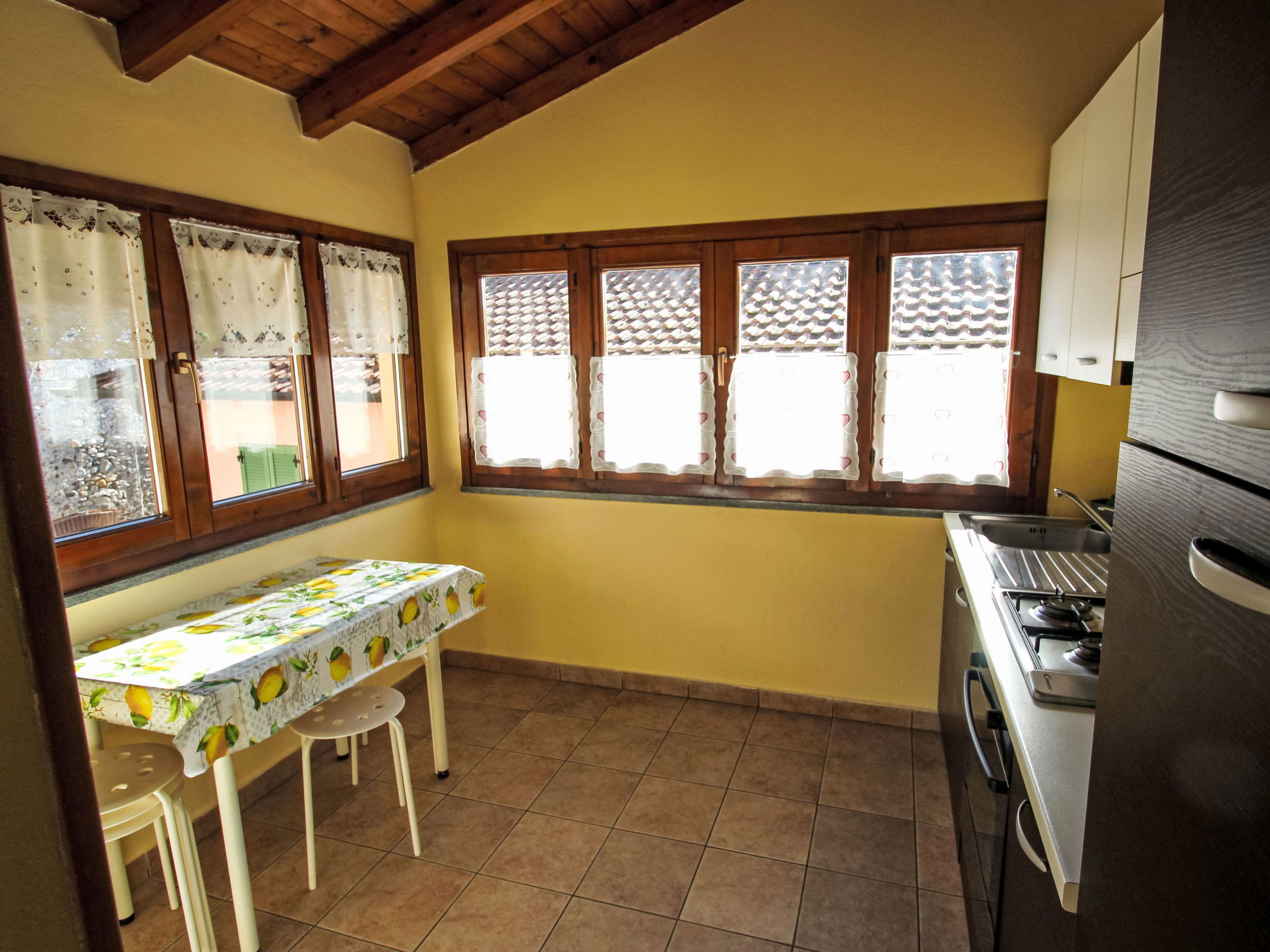 Appartement de 3 pièces 90 m2 au 2ème étage, situation ouest. Clair, aménagement fonctionnel: séjour/salle à manger avec table pour les repas et TV (satellite). Chambre avec passage avec 1 x 2 lits superposés. 1 grande chambre double avec douche/bidet/WC. Cuisine (four, Poêle à gaz, 4 feux, grille-pain, congélateur, cafetière électrique) avec table pour les repas. Pas de chauffage. Belle vue sur le lac et la localité. A disposition: lave-linge, chaise haute pour enfant, lit bébé jusqu'à 2 ans. Veuillez noter: logement non-fumeur. Maximum 1 animal/ chien autorisé. Extincteur, sans ascenseur. IT012114C267S47K52