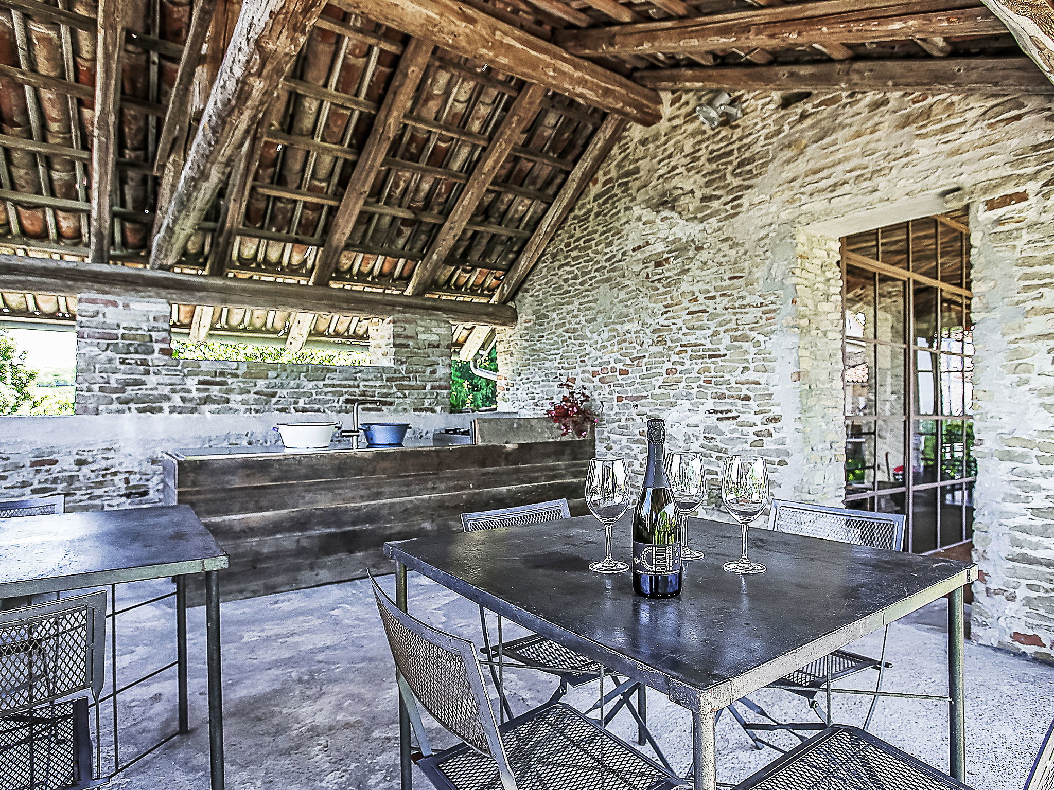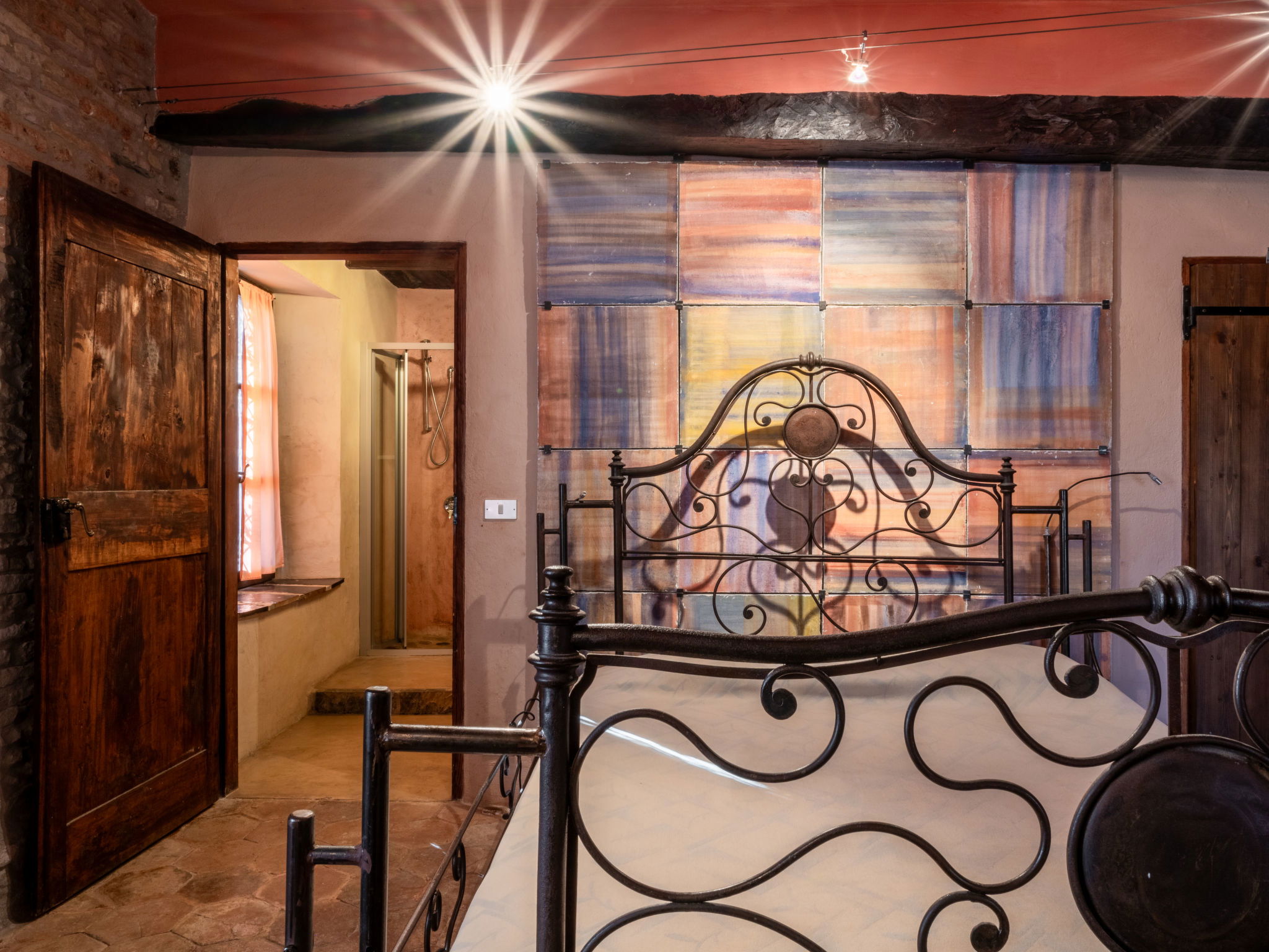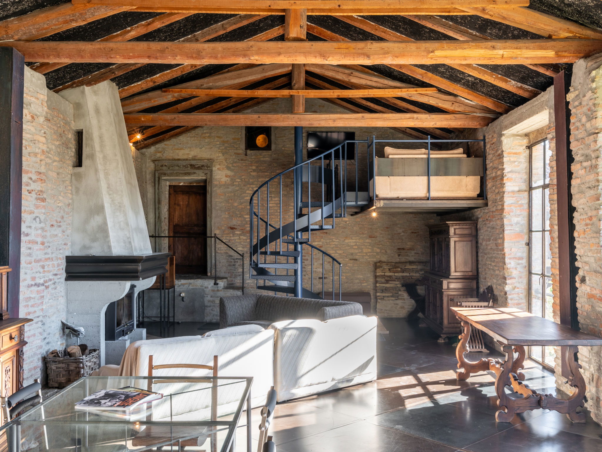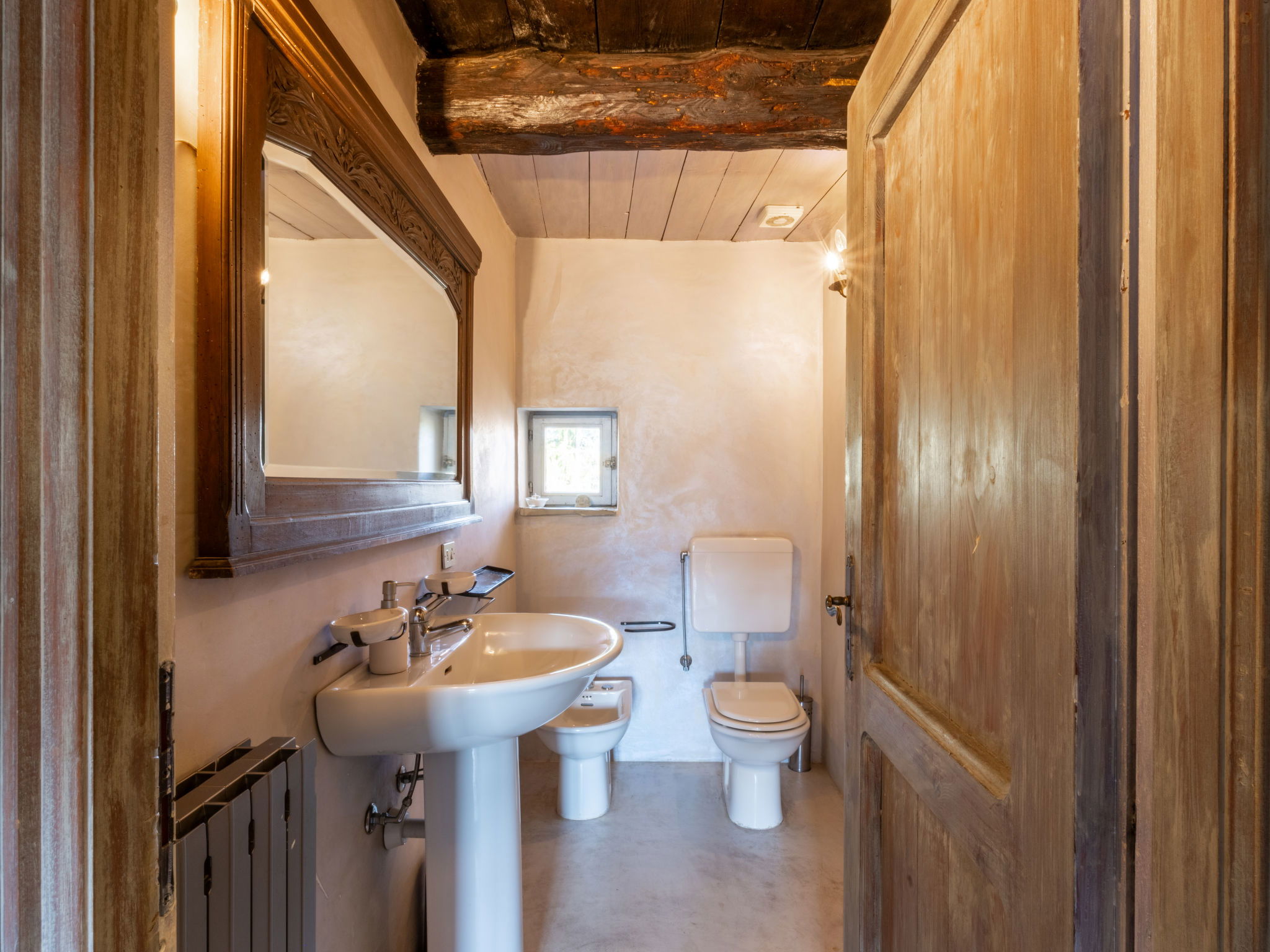 Trezzo Tinella à 10 km de Alba: Grande maison de maître historique "Borgo del Riondino", 550 m au dessus du niveau de la mer, du 15ème siècle, rénovée, environnée par les champs et vignobles. 3 maisons dans le même complexe de vacances. À 3 km du centre de Trezzo Tinella, à 8 km du centre de Neive, à 11 km du centre de Barbaresco, situation isolée, tranquille, à 75 km de la mer, dans la verdure. A usage privé: parc 10 ha avec plantes et arbres, piscine couverte (13 x 4 m, profondeur 140 cm, disponibilité saisonnière: 01.Jun. - 15.Sep.). Douche/WC dans l'espace piscine. Chauffage payable localement, possibilité de chauffage uniquement du 15.Oct. - 15.Avr.. Place de parking sur le terrain. Magasins 8 km, supermarché 8 km, restaurant 2.5 km, arrêt de bus 13 km. Attractions à proximité: Langhe - Barolo 10 km, Asti 30 km, Bra 30 km, Cuneo 80 km. Veuillez noter: voiture recommandée. Le propriétaire habite sur le même terrain. La résidence de vacances est située en face d’une cour ancienne où se trouve une entreprise viticole biologique. Il y a une aire de pique-nique et un sentier pour les joggeurs dans le parc.