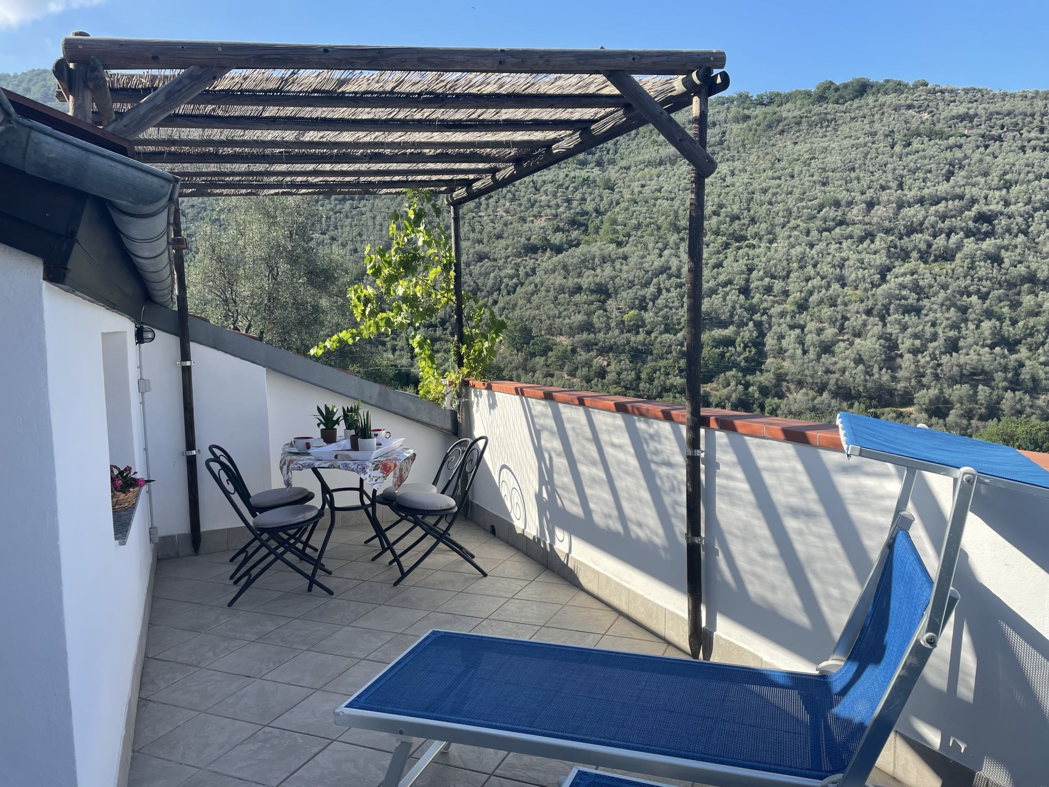 "Asplanato ", Appartement de 2 pièces 50 m2 sur 2 niveaux. Complètement rénové en 2023, aménagement rustique et plaisant: à l'étage supérieur: (escalier extérieur) 1 chambre avec 1 grand-lit (160 cm). Cuisine (four, 4 feux, grille-pain, bouilloire électrique, cafetière électrique) avec table pour les repas. Douche/WC. Chauffage au gaz. 2ème étage: (escalier extérieur) 1 chambre, mansardée avec 1 lit double (160 cm). Sortie sur la terrasse. WC séparé. Chauffage au gaz. Terrasse. Meubles de terrasse, barbecue. Belle vue sur les alentours. A disposition: Internet (Connexion WIFI, gratuit). Veuillez noter: maximum 1 animal/ chien autorisé. Entrée privée, détecteur de fumée, extincteur. Pas de liaison interne entre les étages. IT008030B5IIHHVFIS