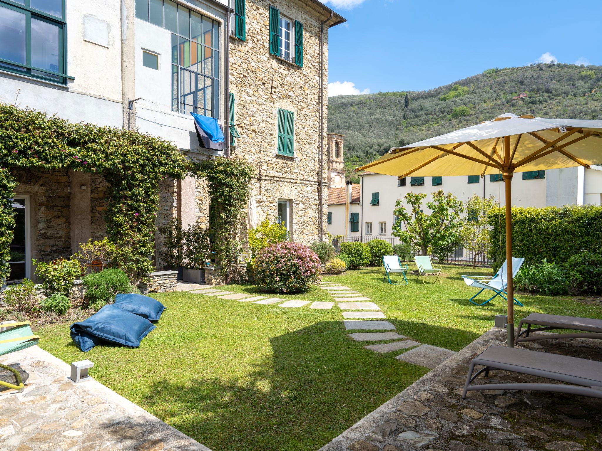 Bel immeuble historique de 3 étages, du 18ème siècle. 5 appartements dans la même entité. Dans la localité Dolcedo, à 9 km du centre d'Imperia, à 34 km du centre de San Remo, à 7 km de la mer. En commun: jardin entretenu, 400 m2 (clôturé) avec pelouse et arbres, pré. Terrasse, meubles de jardin, barbecue. Infrastructures de la Maison: lave-linge (en commun). Supermarché 9 km, restaurant, bar, boulangerie, café, arrêt de bus 50 m, gare ferroviaire "Imperia oneglia" 15 km, plage de sable "Imperia Porto Maurizio" 7 km, plage de galets "San Lorenzo al Mare" 15 km, baignade en lac "Lecchiore" 5 km. Centre équestre 3 km, chemins de randonnées pédestres depuis la maison 50 m. Groupes de jeunes sur demande seulement. Veuillez noter: D’autres appartements sont également proposés à la location dans cette maison de vacances. La propriété référencée IT1790.662.1/2 est située sur le même terrain.