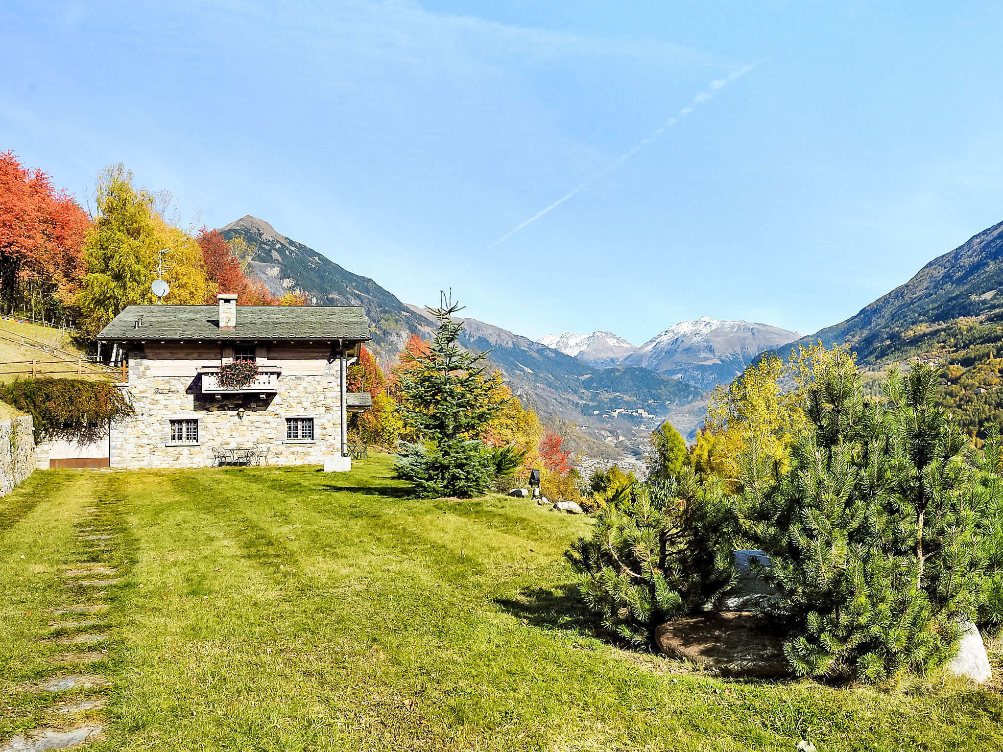 Beau chalet moderne, rustique "Chalet Anna", 880 m au dessus du niveau de la mer, année de construction 2003, environné par les arbres et prés. À 30 km du centre de Bormio, à 30 km du centre d'Aprica en-dehors de la localité, à 3 km du centre de Grosotto, situation tranquille, ensoleillée, surélevée sur un versant, à 30 km du domaine skiable, orientée sud. A usage privé: jardin 2'000 m2 (clôturé), pré. Meubles de jardin, espace barbecue. Infrastructures de la Maison: local pour les skis, chauffage central, blanchisserie. Sur demande possibilité d'achat avant l'arrivée. En hiver, merci de prévoir des chaînes. Place de parking (pour 2 voitures, couvert). Magasin d'alimentation 3 km, supermarché 3 km, restaurant 3 km, arrêt de bus 3 km. Attractions à proximité: Train Bernina Express:Tirano-St Moritz 15 km, Livigno 65 km, Saint Moritz 70 km. Veuillez noter: voiture recommandée.