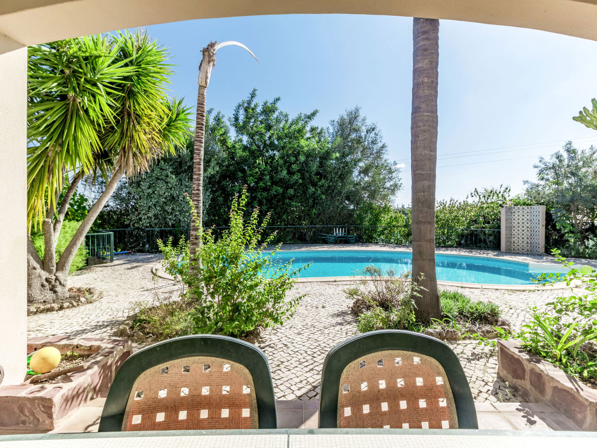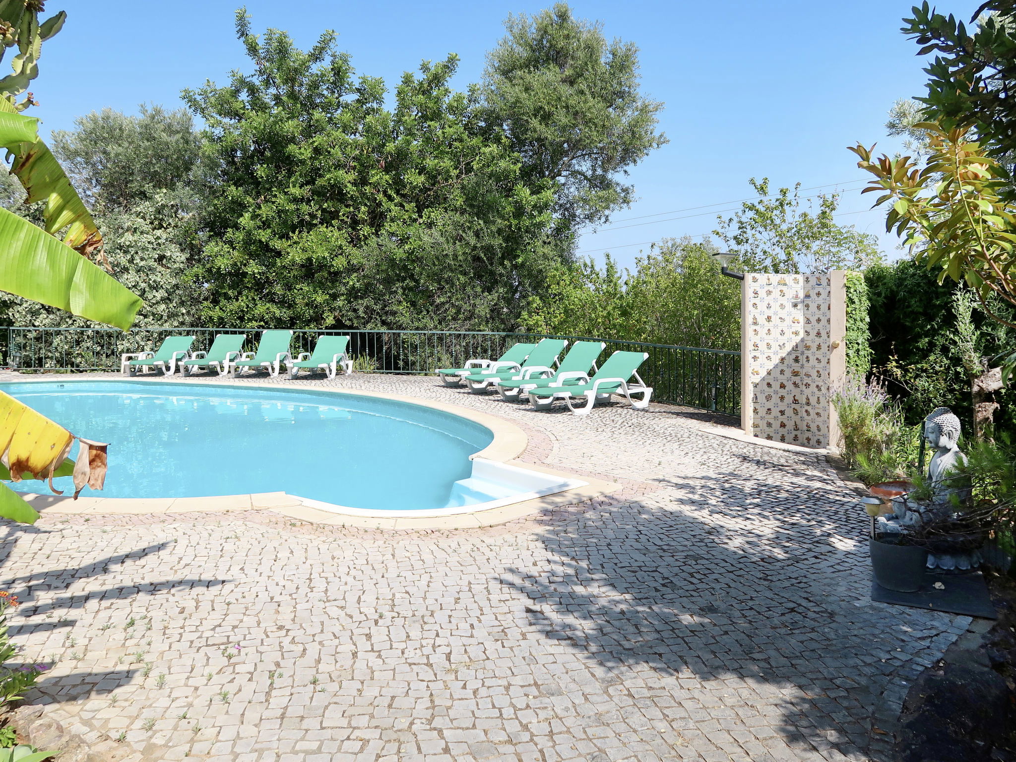 Maison individuelle "Monte Meco", année de construction 1999. 2 maisons dans la résidence. Dans le hameau de Venda Nova, à 3 km du centre de Silves, à 4 km du centre de Lagoa, à 13 km du centre de Portimão, à 11.2 km de la mer. En commun: terrain 3'000 m2 (clôturé) avec plantes et arbres. A usage privé: piscine en forme d’haricot (10 x 5 m, profondeur 90 - 190 cm, disponibilité saisonnière: 01.Jan. - 31.Dec.). Douche extérieure. Infrastructures de la Maison: baby foot, terrasse sur le toit. Débarras disponible. Place de parking (pour 2 voitures, couvert) sur le terrain. Magasins 1.3 km, supermarché 3.4 km, gare ferroviaire "Silves" 1.6 km, plage de sable "Carvoeiro" 11.2 km. Terrain de golf (18 trous) 3.5 km. Attractions à proximité: Aquapark Slide & Splash 8 km.