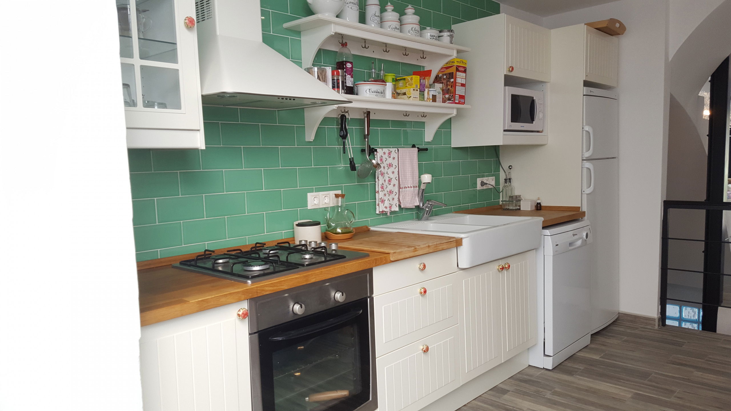 La cuisine américaine, à gaz, est équipée avec micro-ondes et lave-vaisselle.