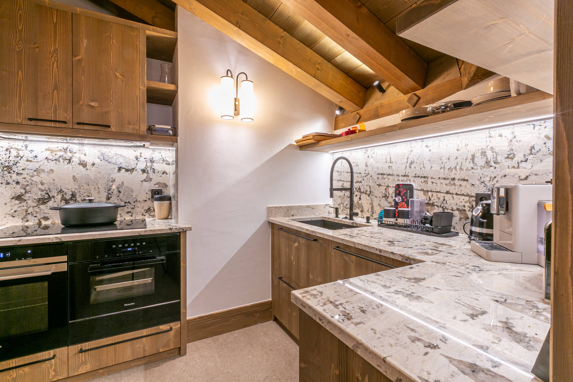 1 Cuisine fermée: plaque induction, lave-vaisselle, réfrigérateur, congélateur, hotte aspirante, four électrique, four à vapeur, micro ondes