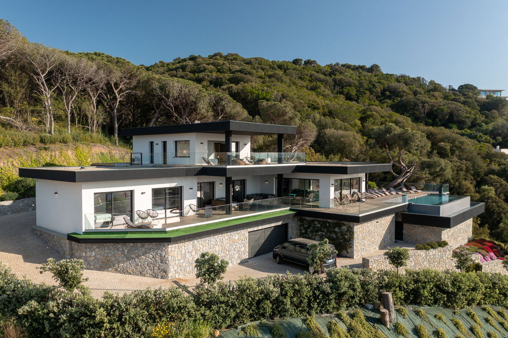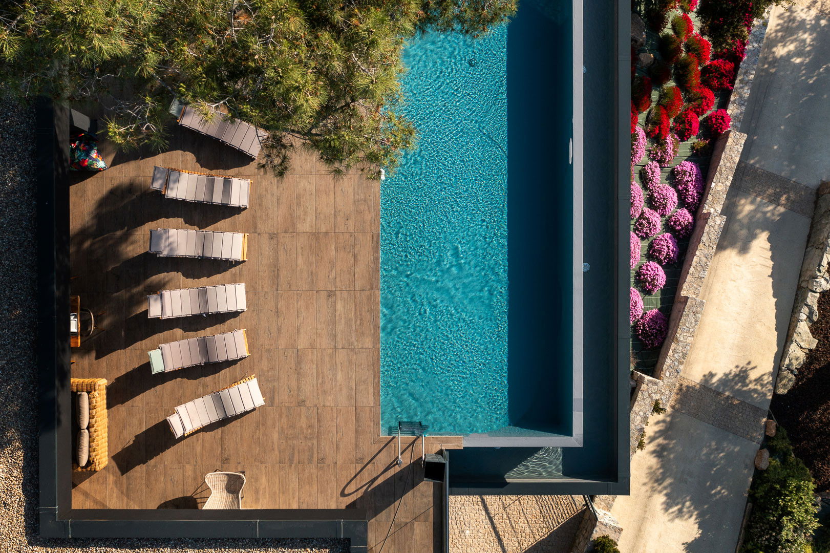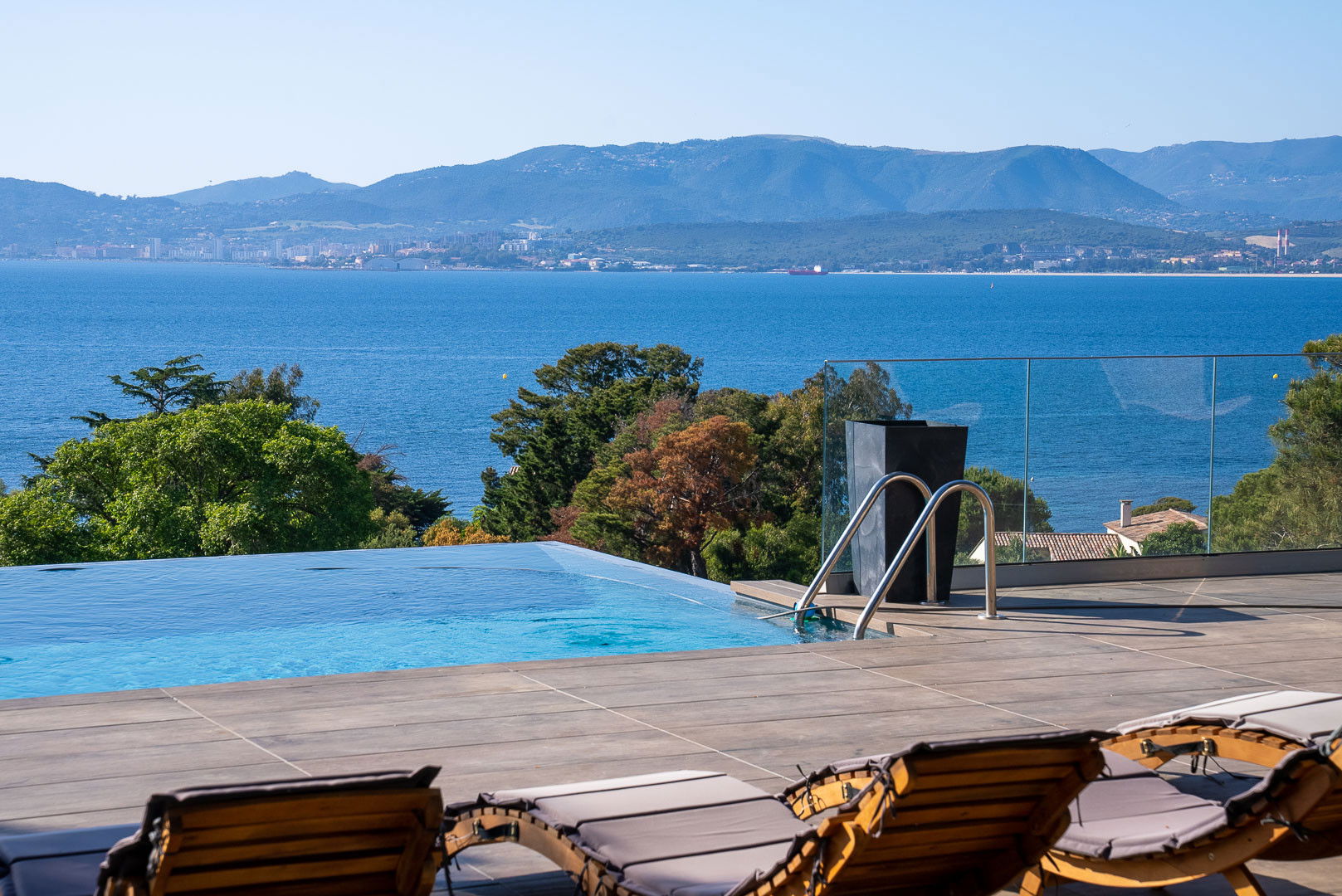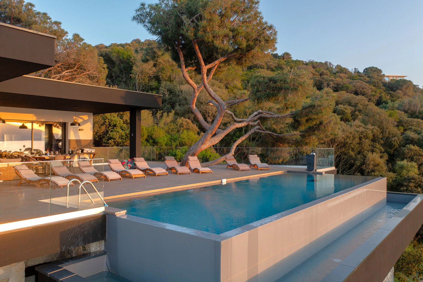 • Piscine 8* 4 à débordement avec alarme donnant l'impression de se jeter dans la mer