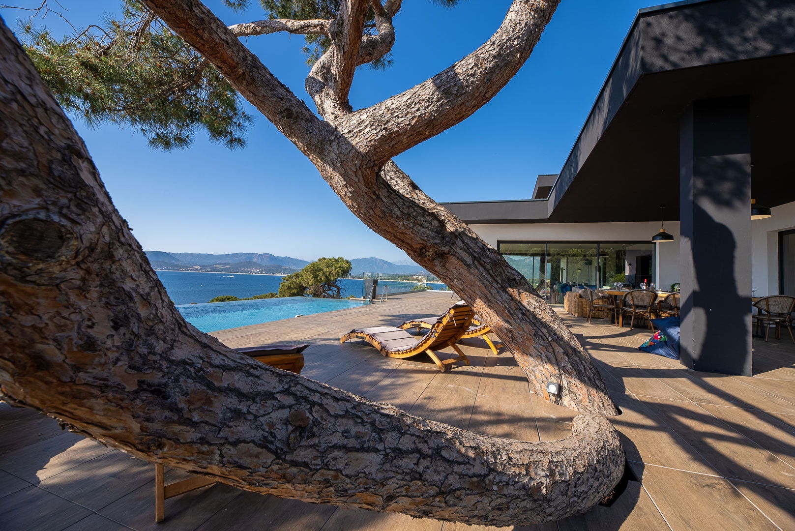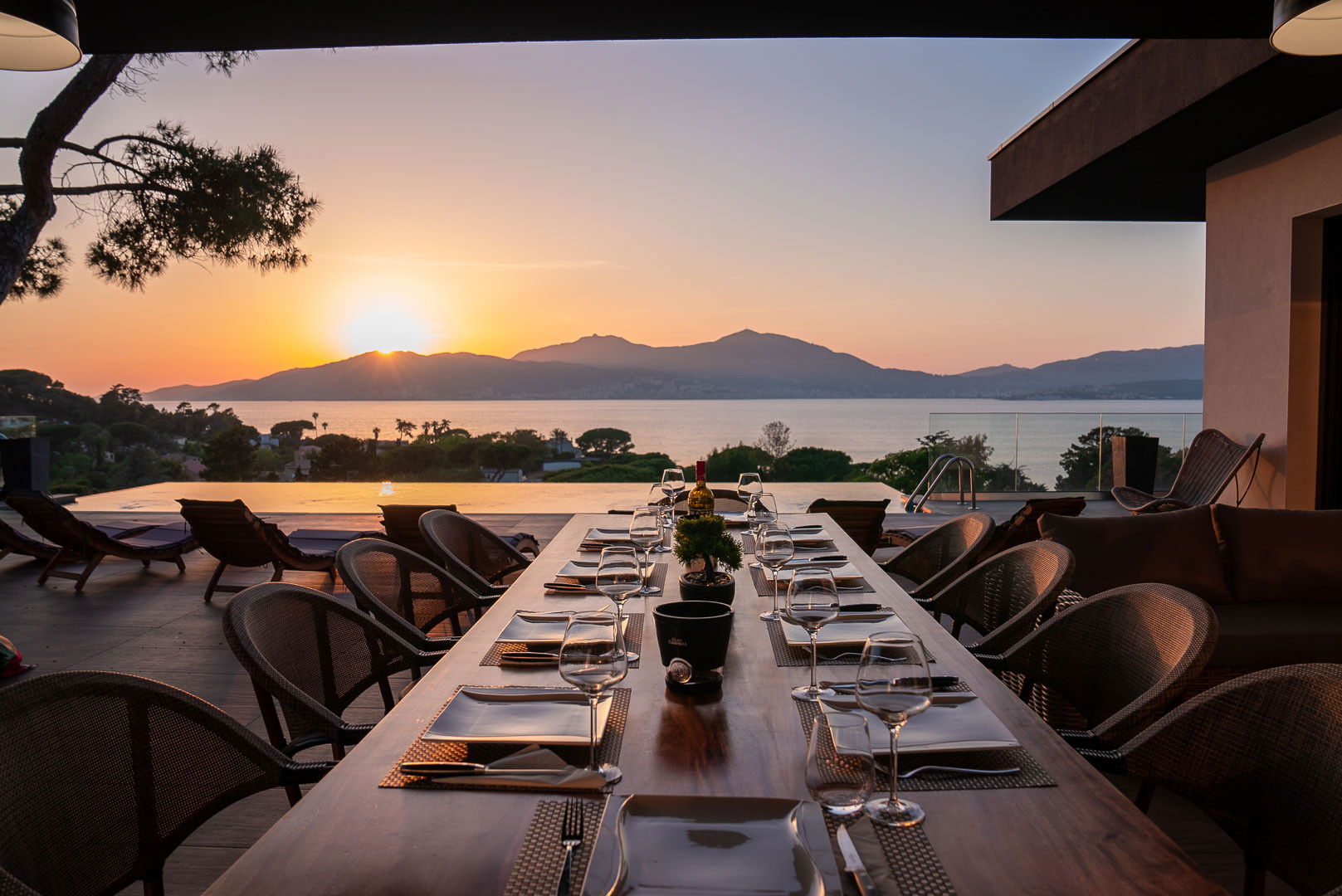 • Terrasse panoramique avec une grande table pour des repas en plein air