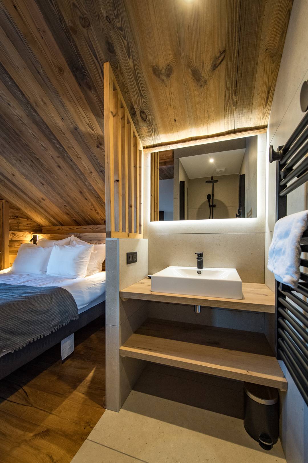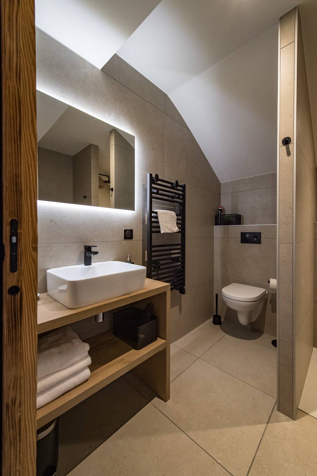 Cet appartement de 72m2 en sous-pente propose une décoration chaleureuse et des matériaux de grandes qualités.