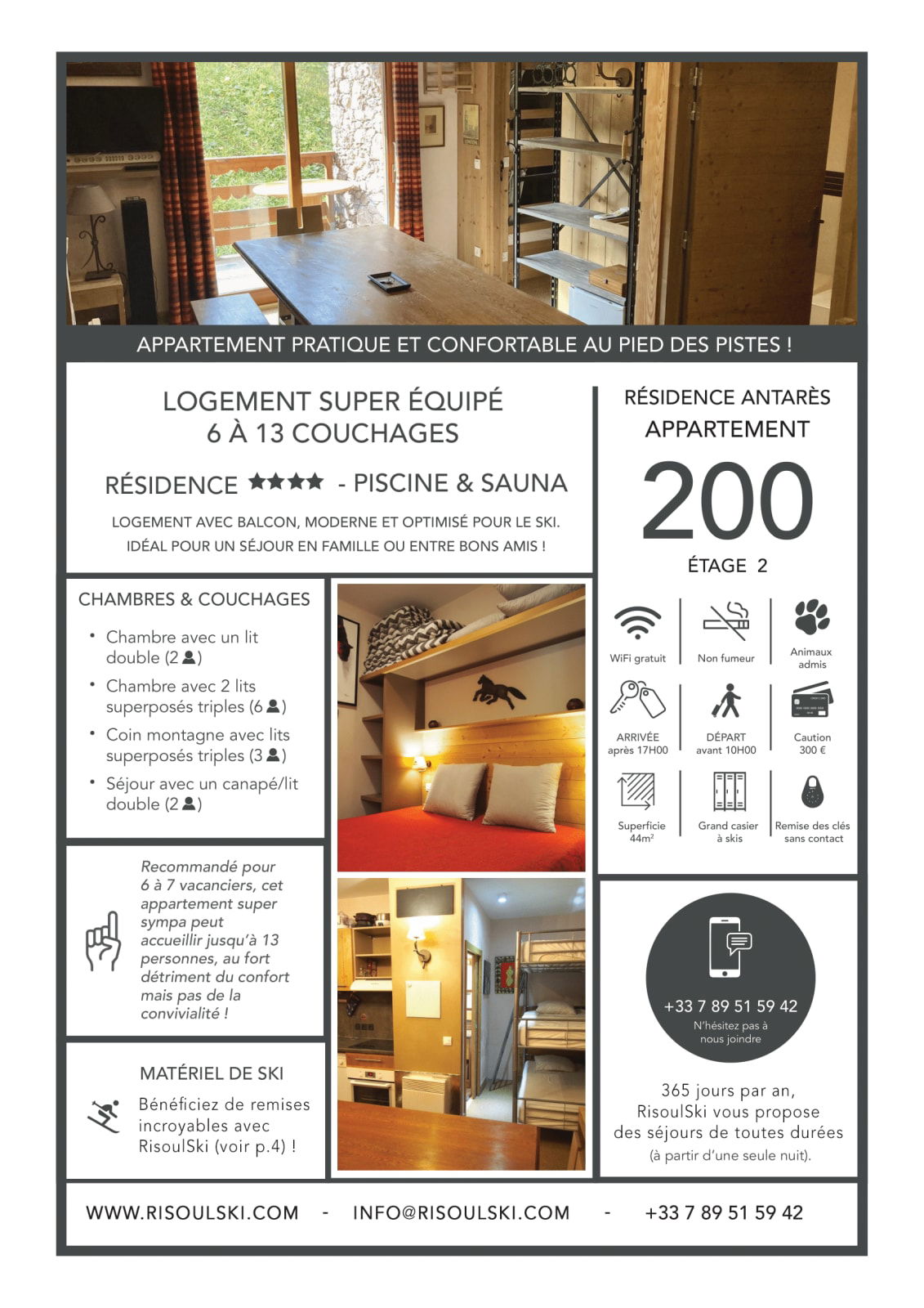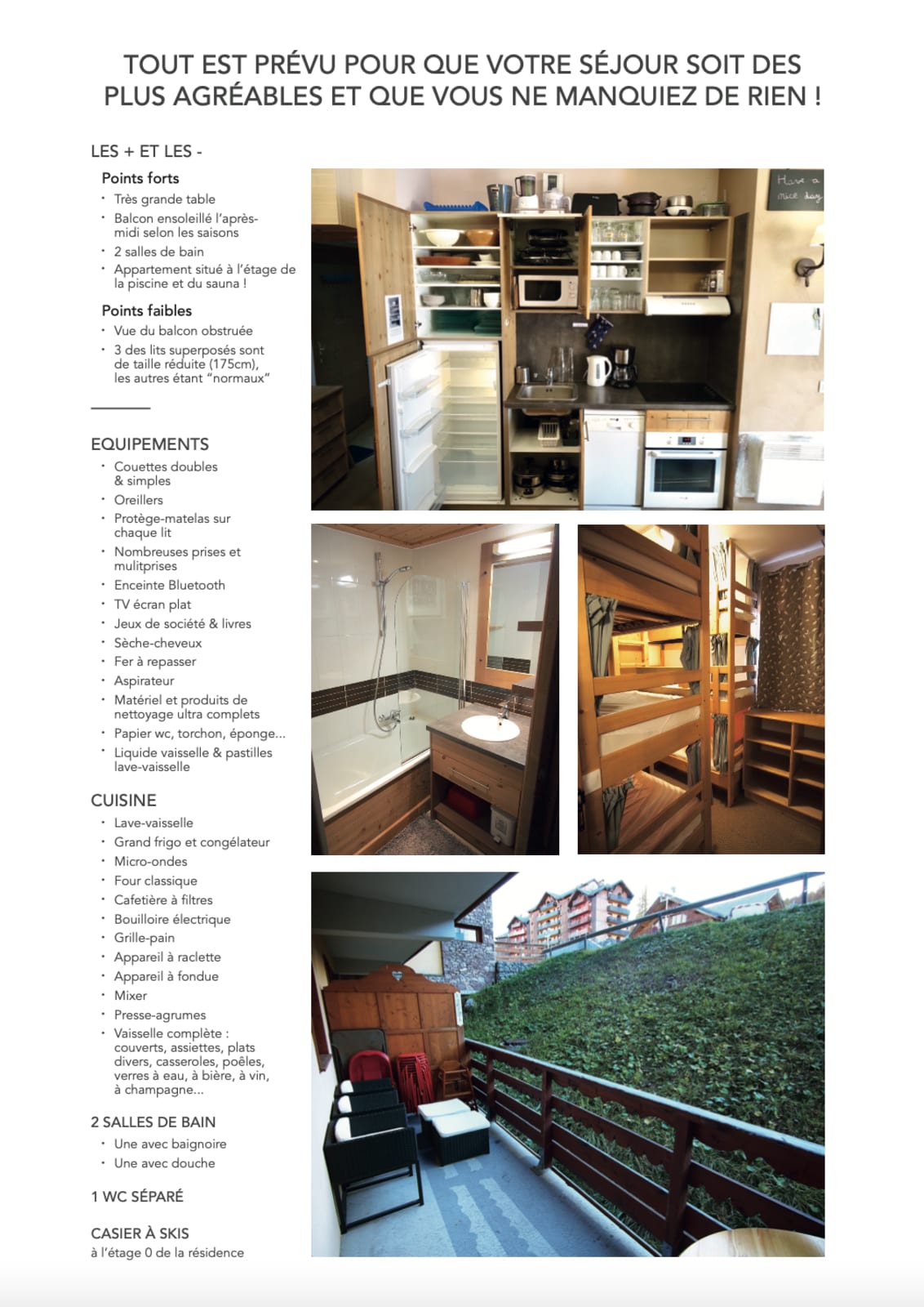 Lisez bien tout le descriptif avant de réserver et regardez bien toutes les photos: nous y avons mis des PDF avec des infos précieuses comme de très belles réductions sur le matériel de ski !