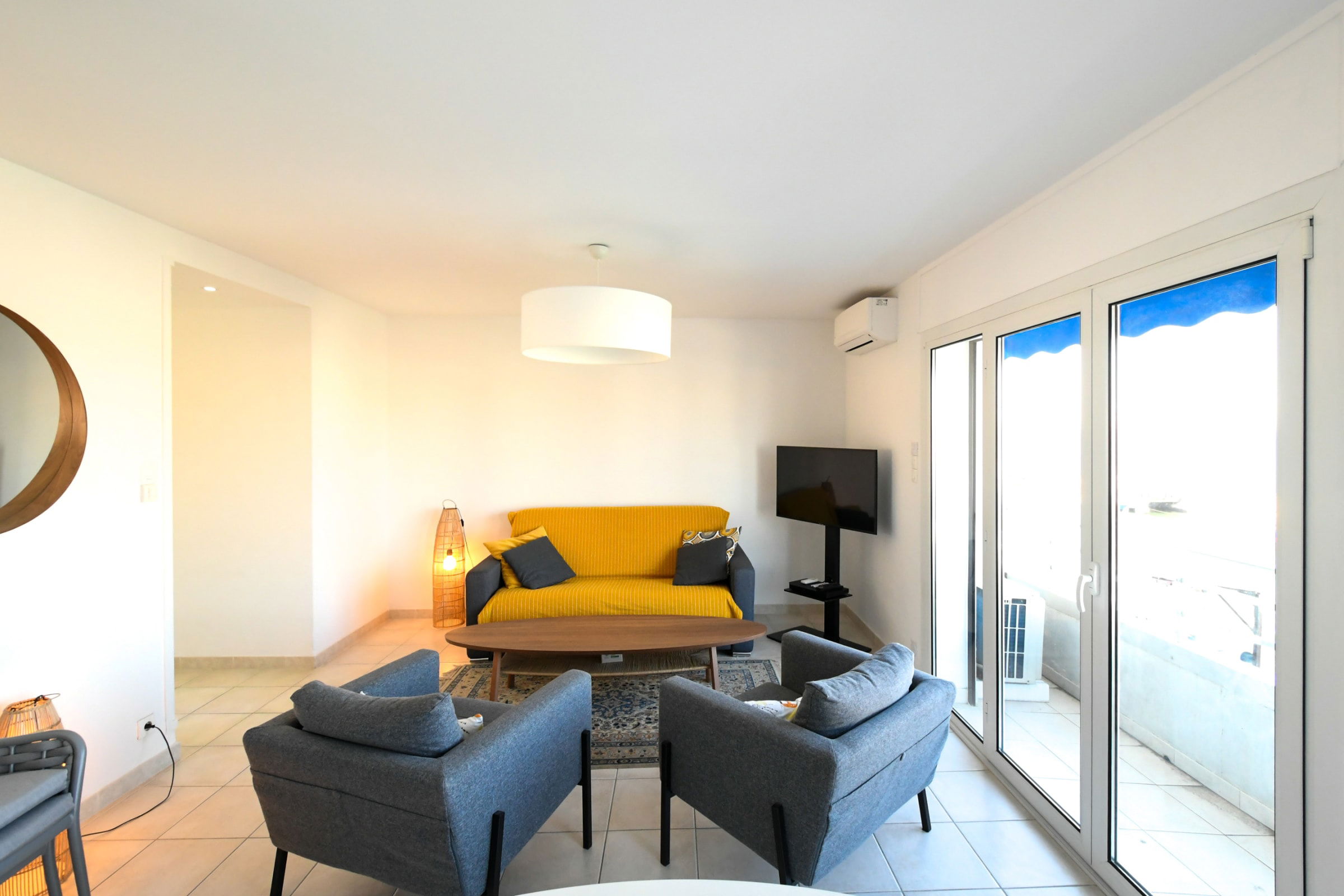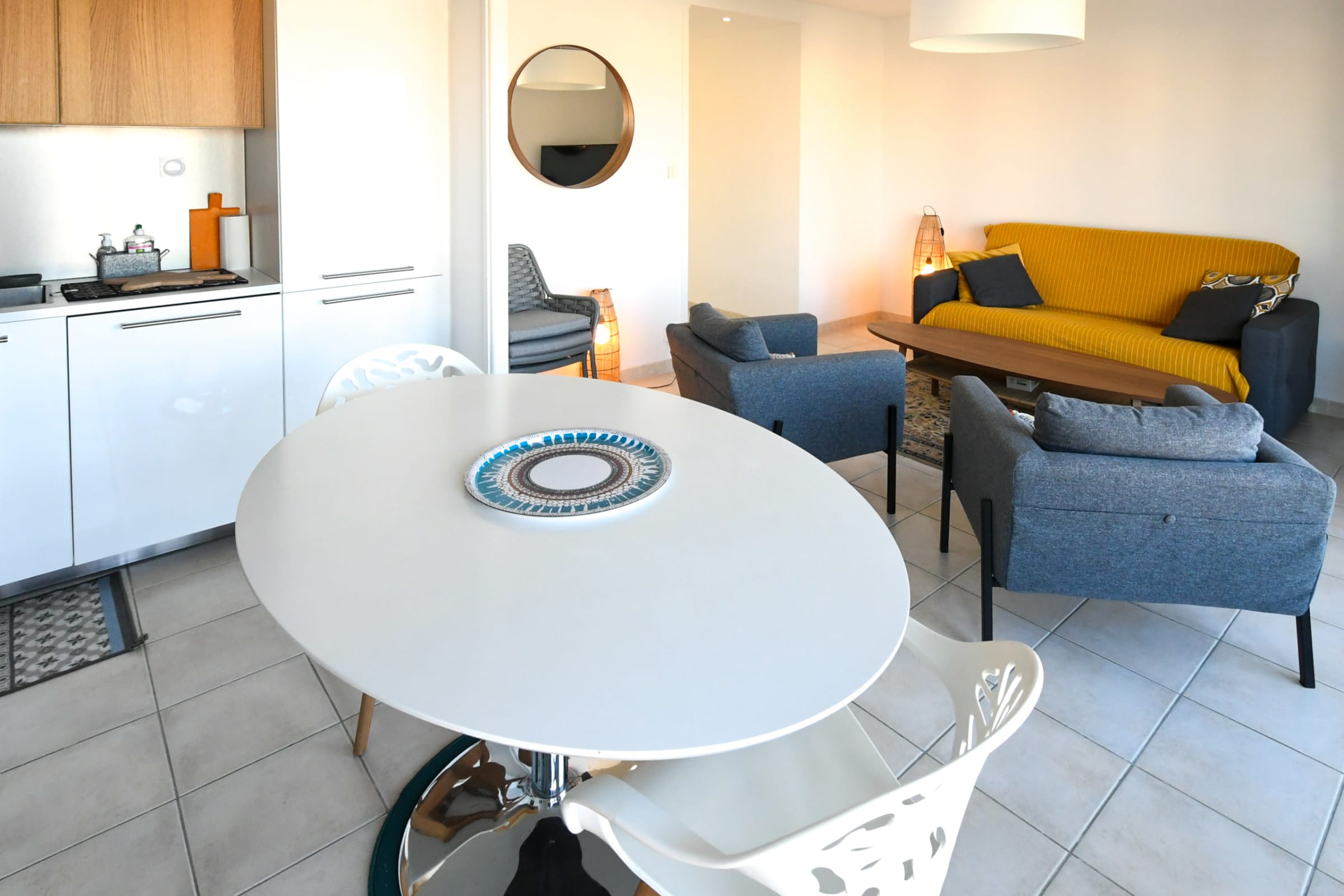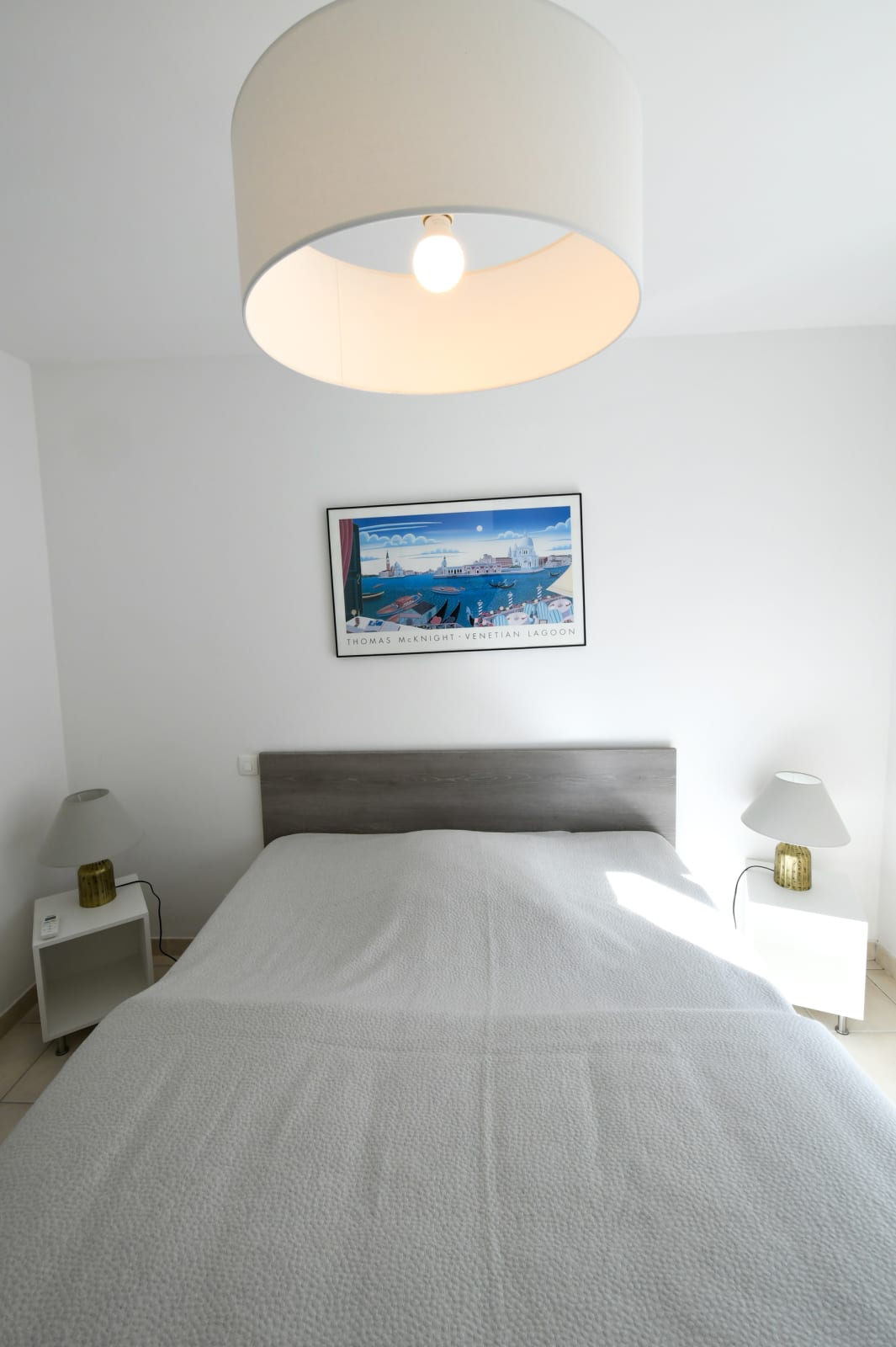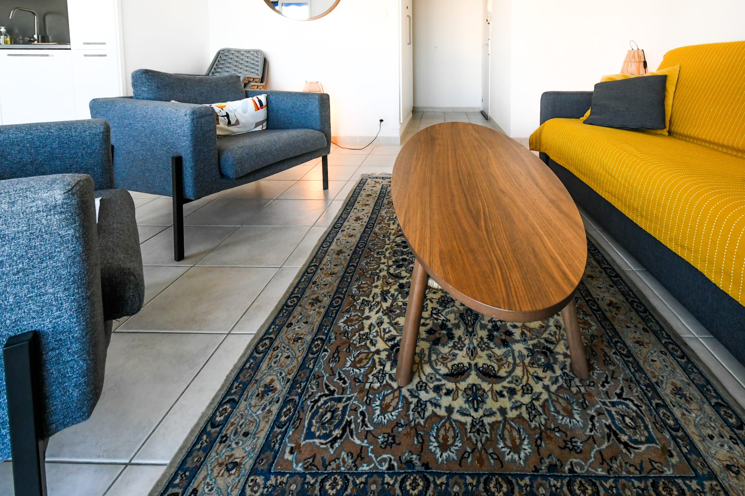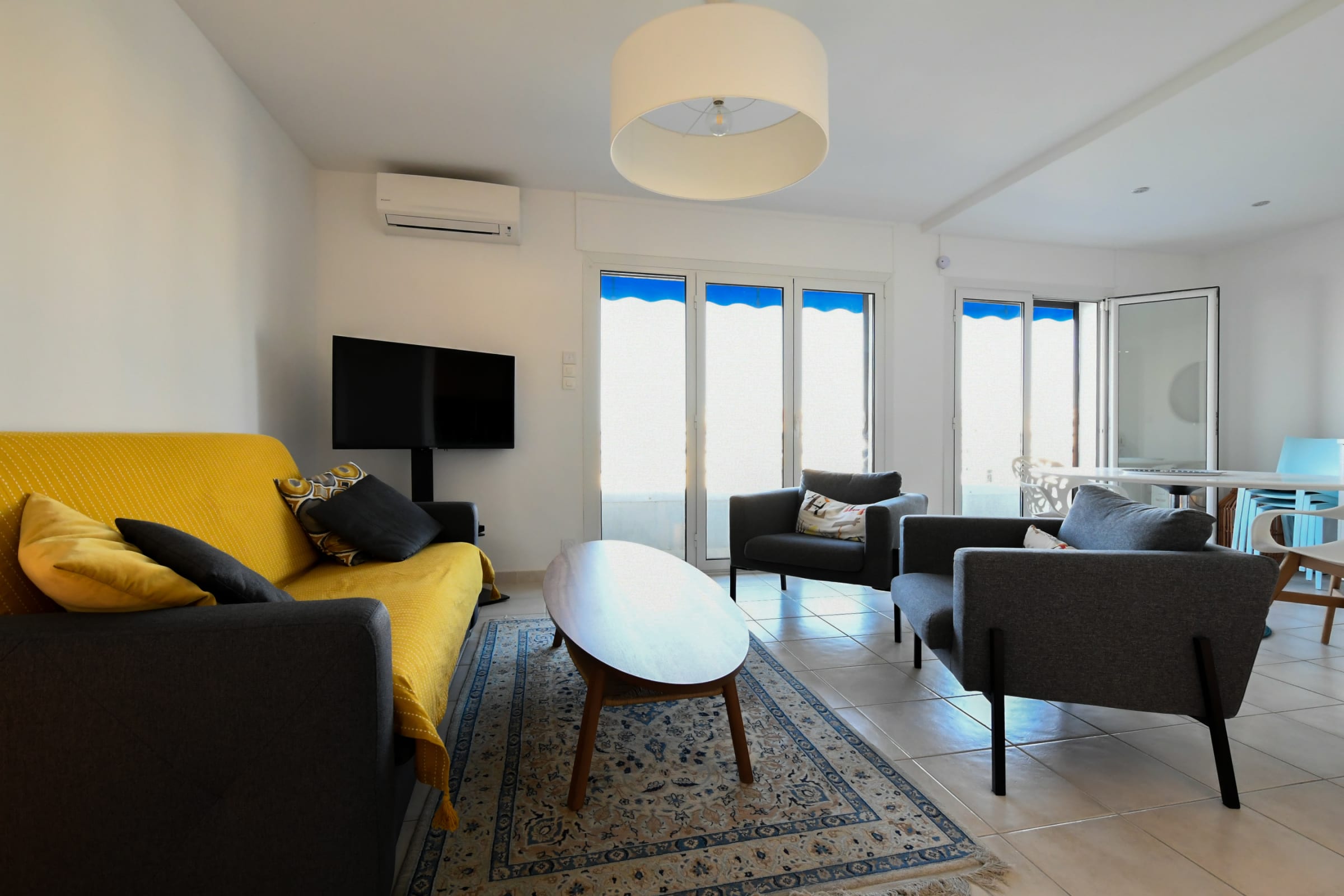 La pièce de vie est agréable et baignée de lumière, avec un canapé convertible, une TV, et la climatisation. Appréciez le calme et reposez-vous dans une des deux chambres chaleureuses à la décoration épurée.