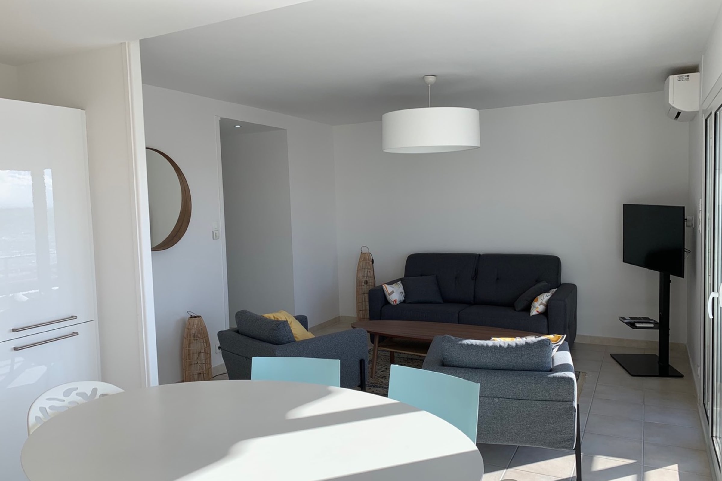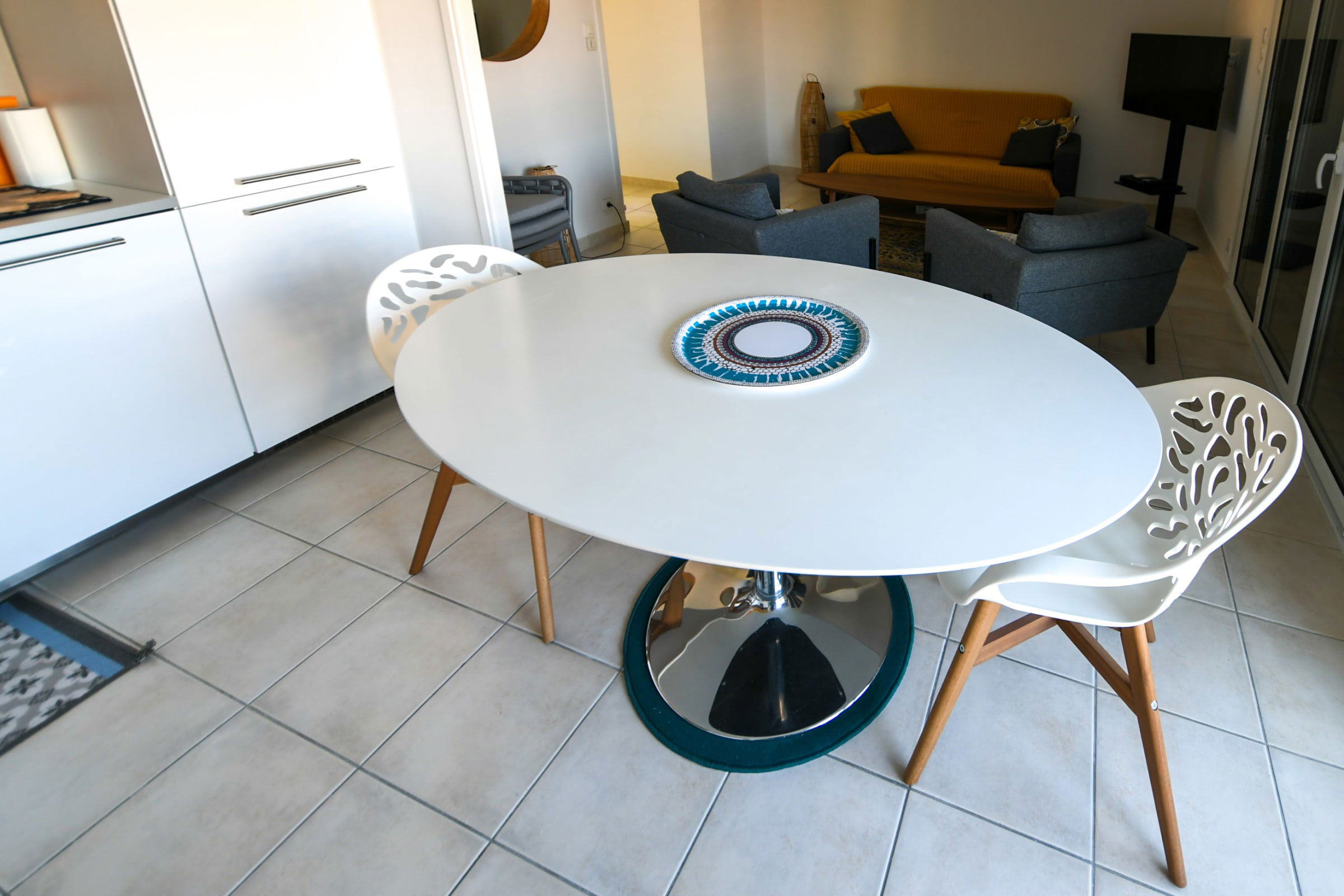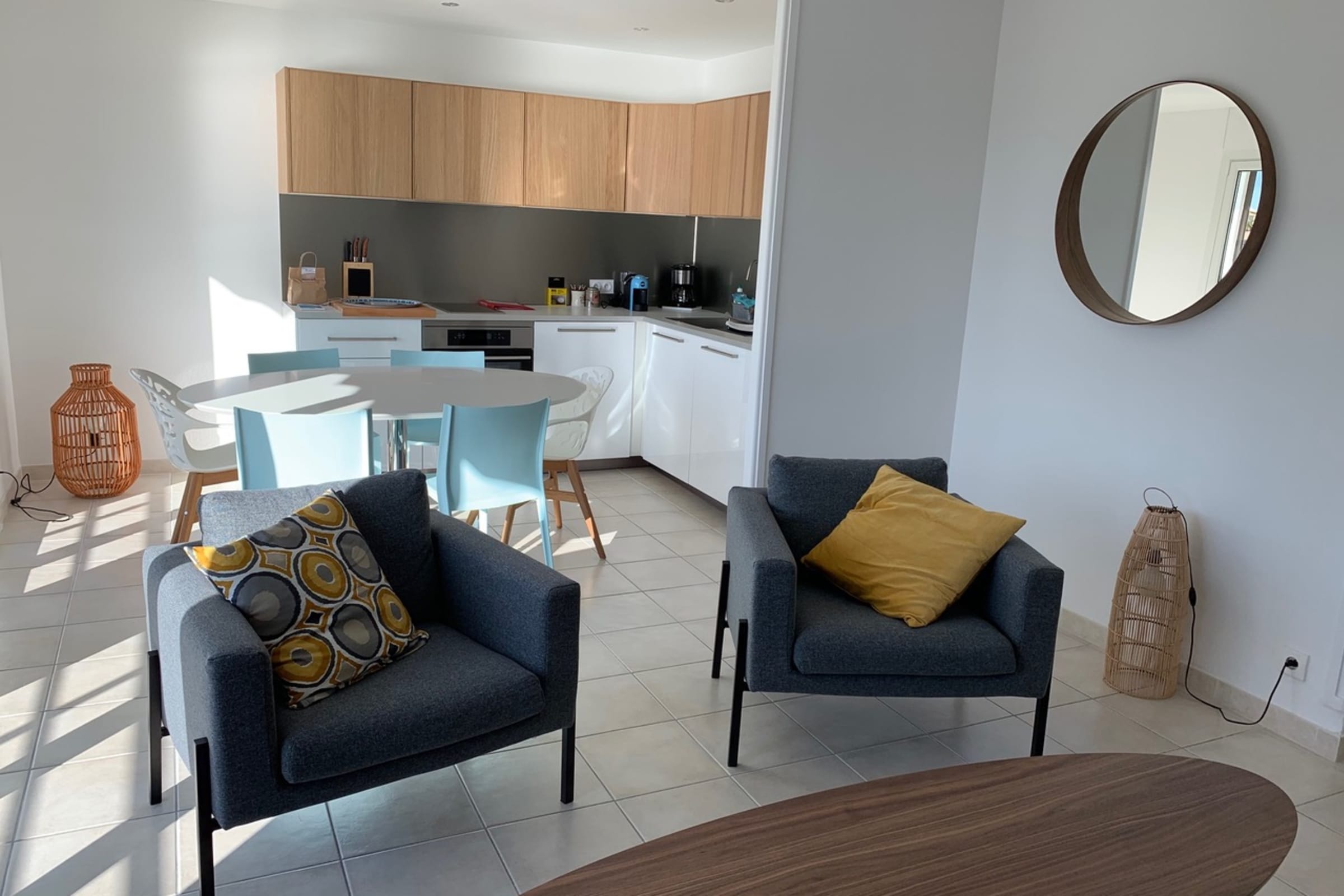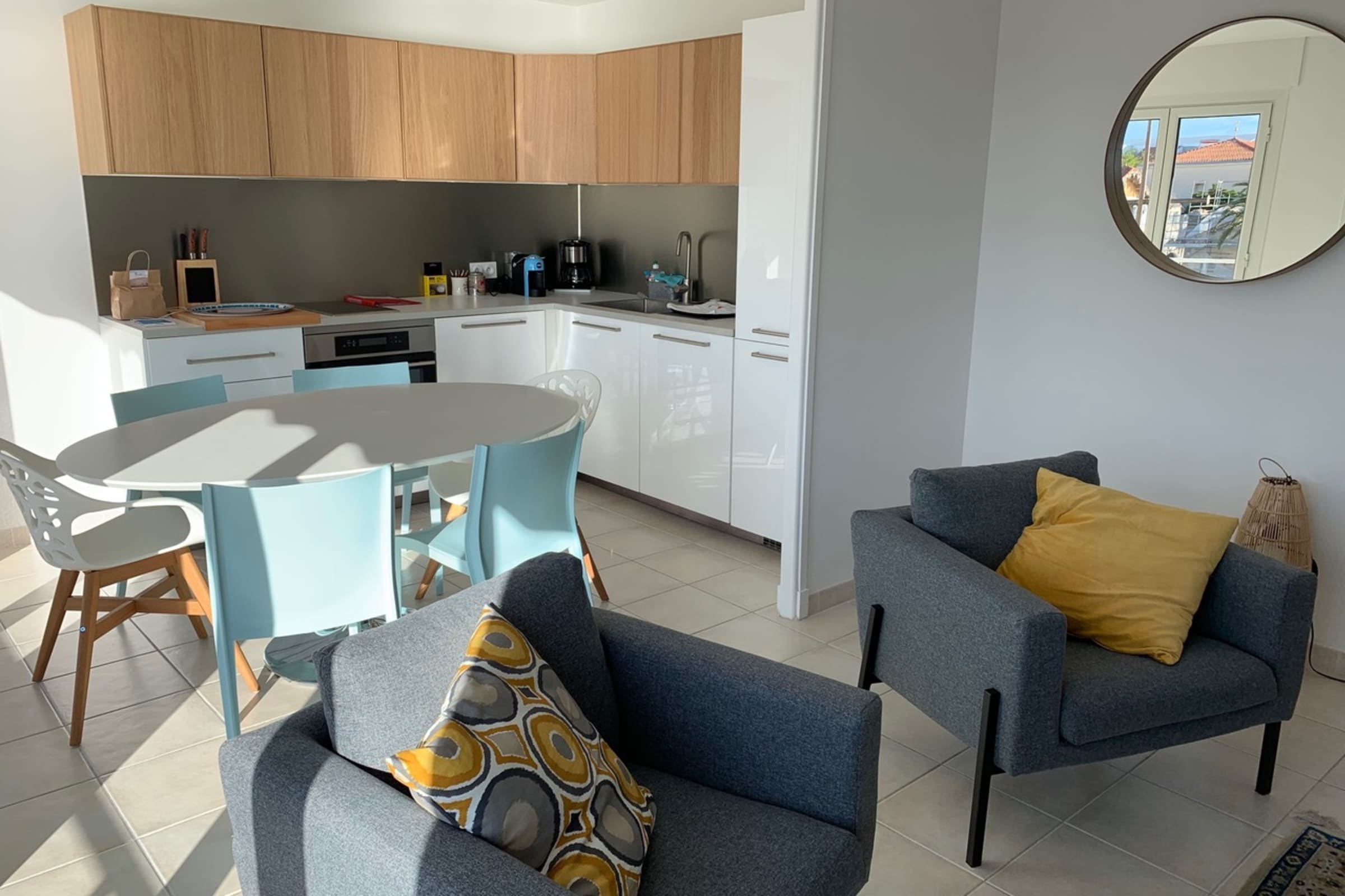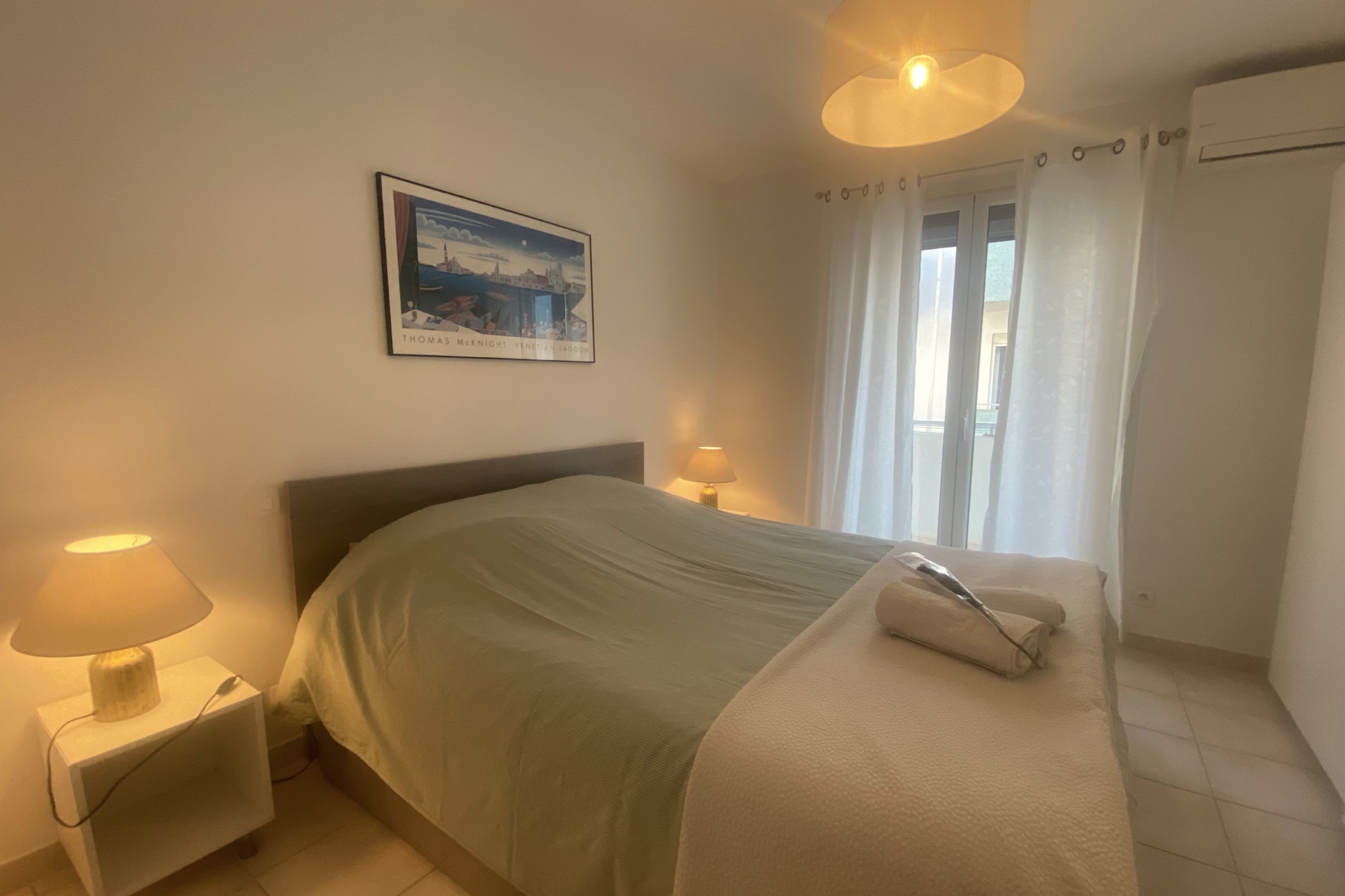 La pièce de vie est agréable et baignée de lumière, avec un canapé convertible, une TV, et la climatisation. Appréciez le calme et reposez-vous dans une des deux chambres chaleureuses à la décoration épurée.