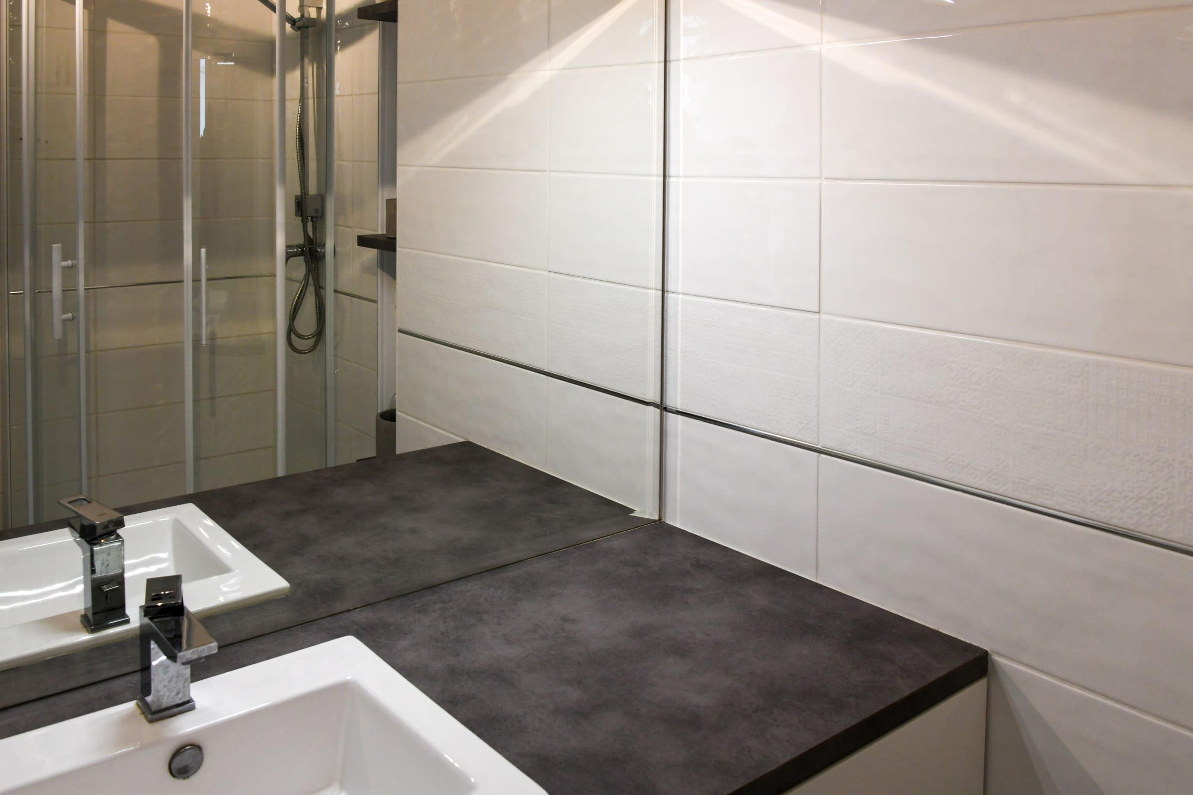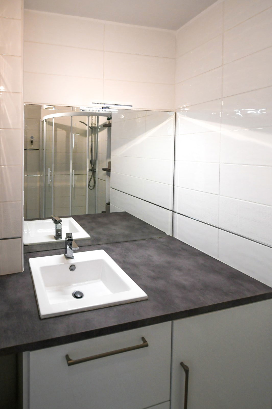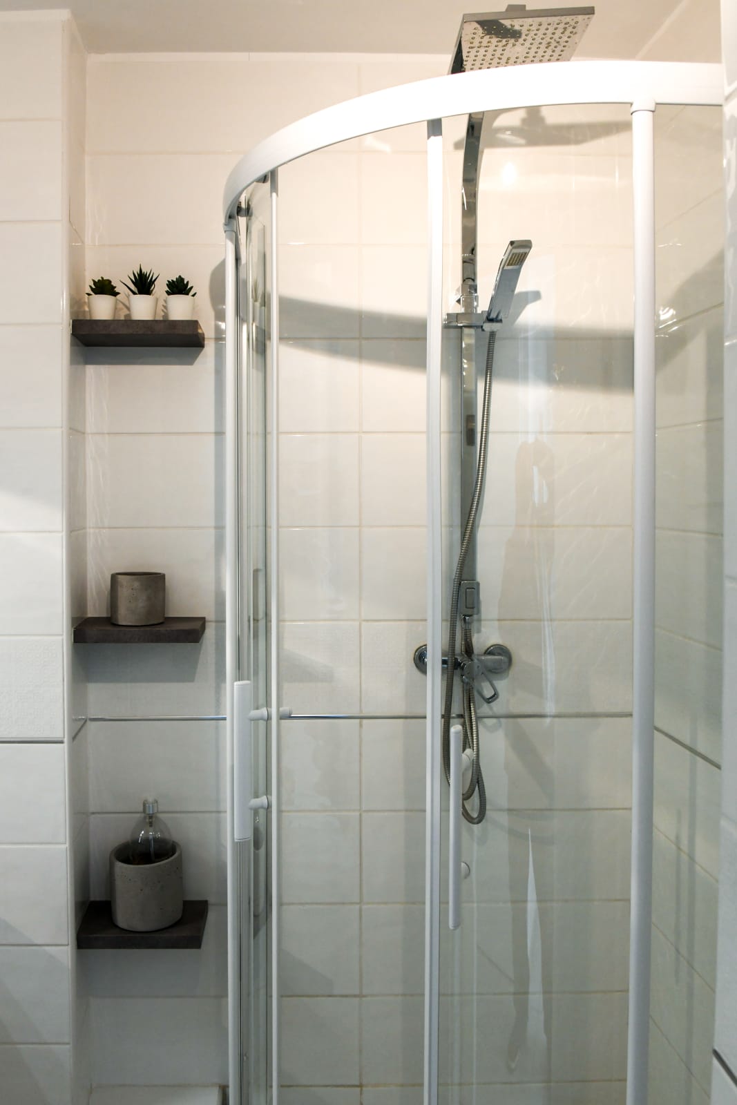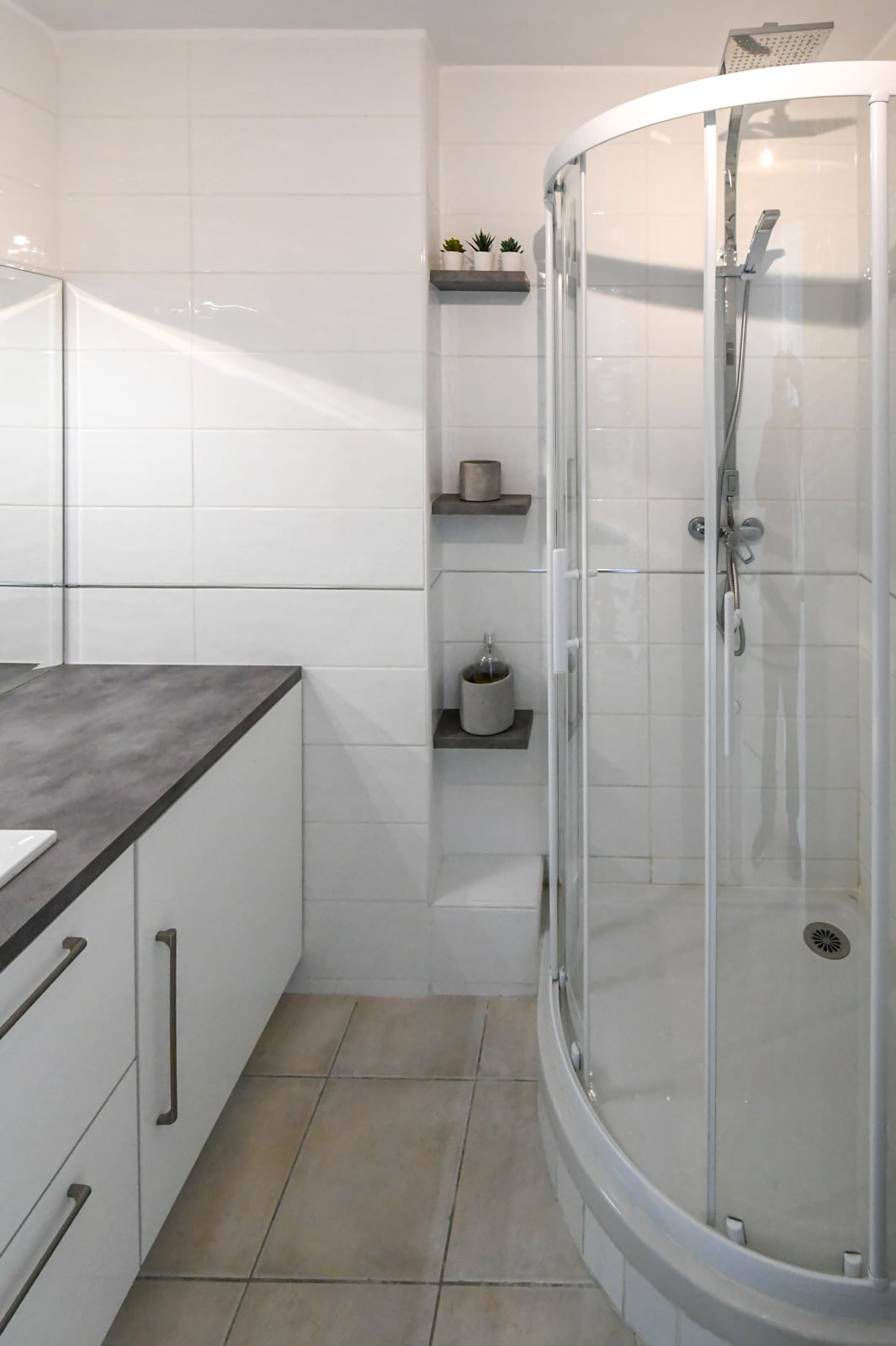 L'appartement dispose d'une salle d'eau avec une douche et un WC séparé.