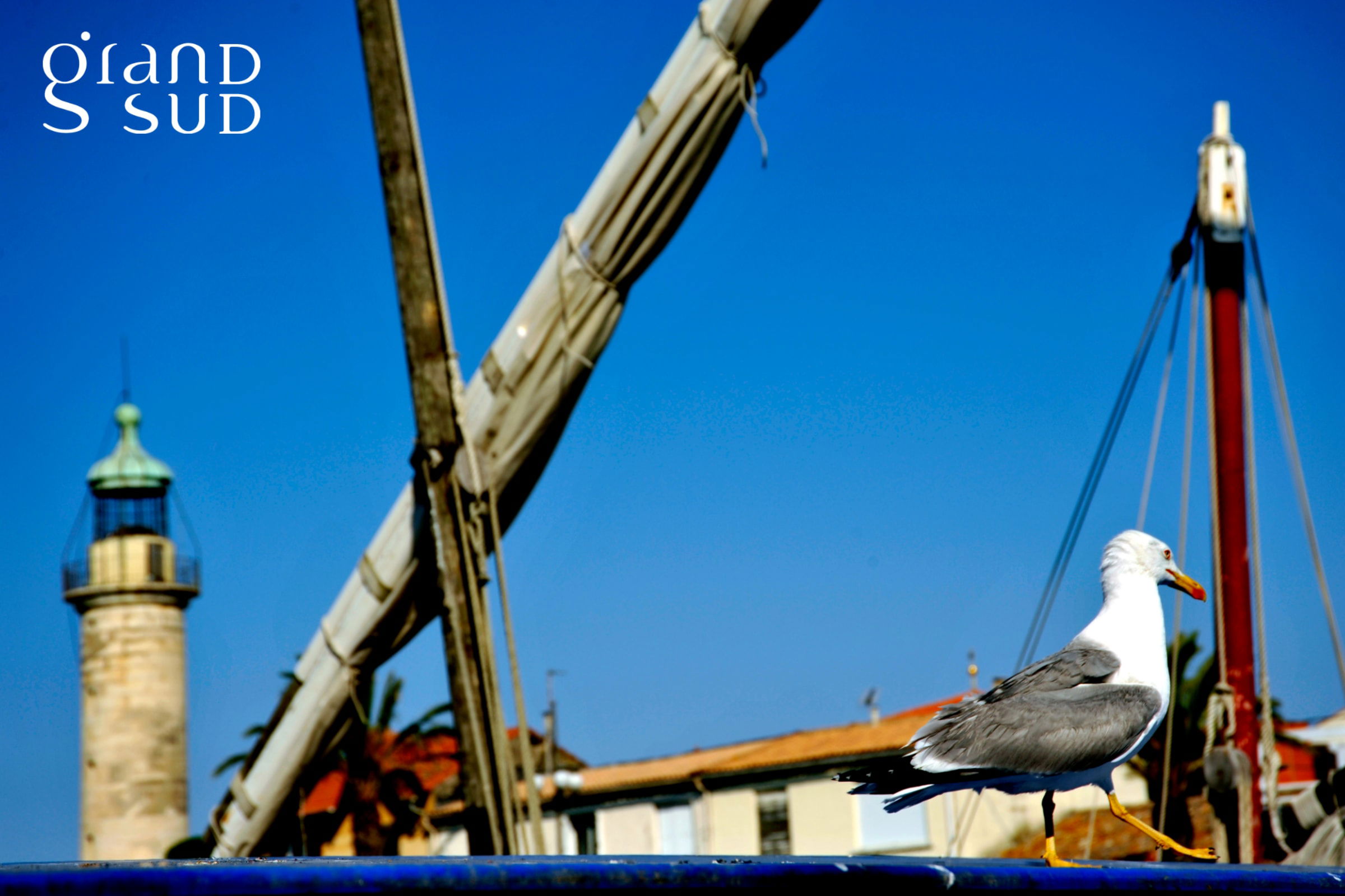 Vue dégagée sur la mer, la baie d’Aigues-Mortes et La Grande-Motte, depuis la terrasse exposée nord-ouest, idéale pour admirer de magnifiques couchers de soleil.