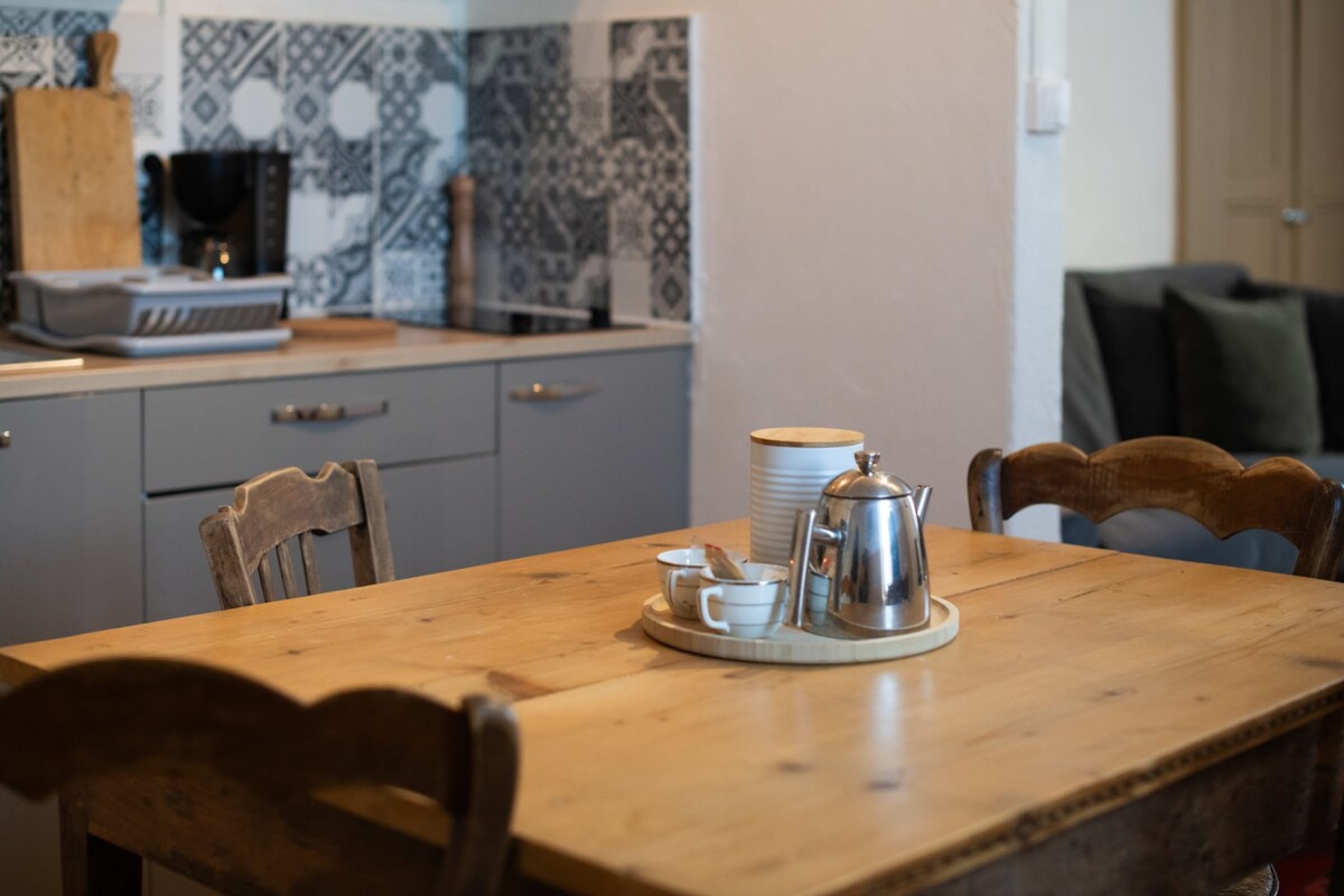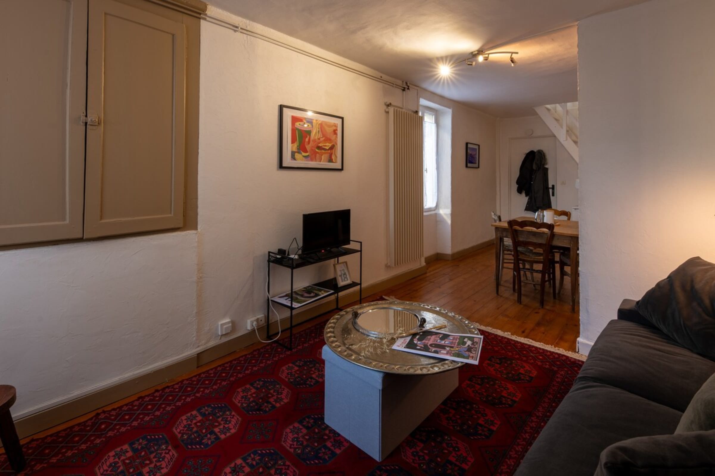 - 1 espace de vie avec cuisine ouverte entièrement équipée donnant sur le salon cosy avec télévision