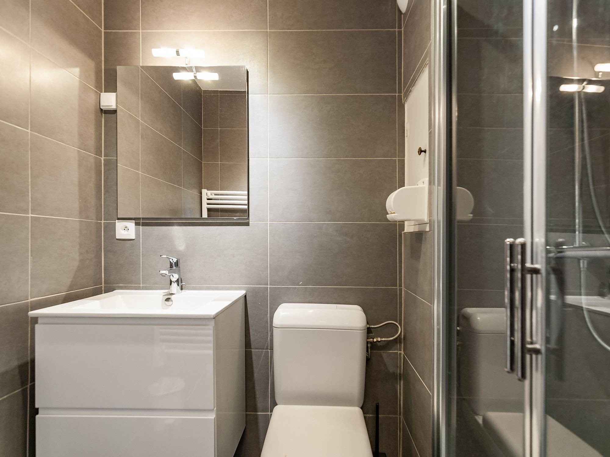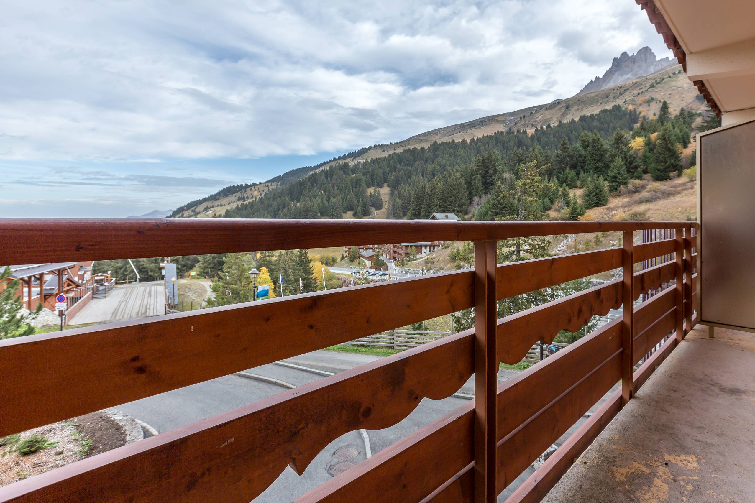 Séjour avec une banquette lit, un lit gigogne la télévision. Kitchenette équipée de plaques de cuisson et réfrigérateur. Salle de douche rénovée avec WC. Balcon. Casier à skis et ascenseur dans la résidence.Appartement non-fumeur / Animaux non admis.