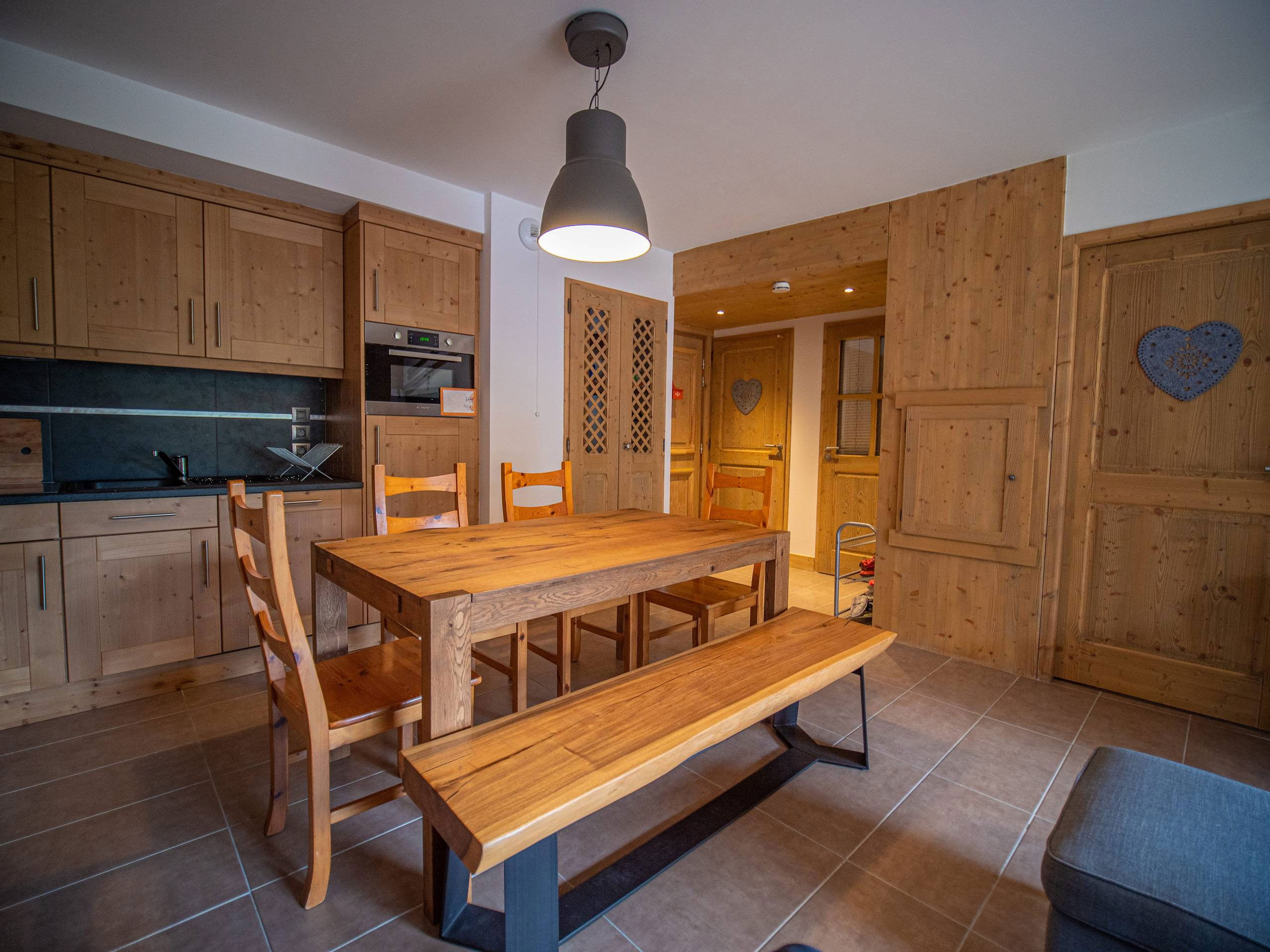 - Coin repas avec une table à manger, 4 chaises et 1 banc