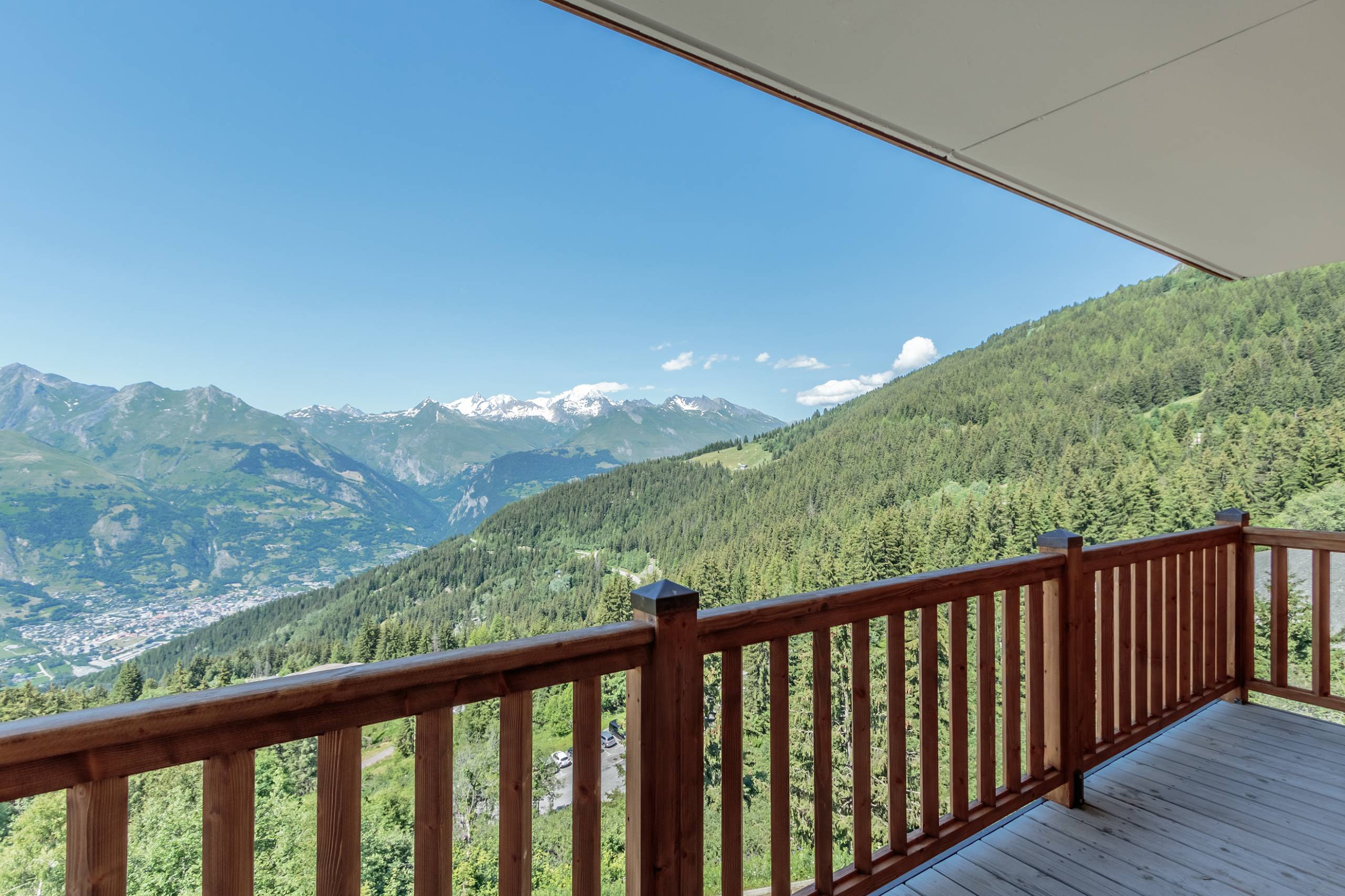 ARCS 1800 – Résidence 4 cristaux : L'ISERAN. Ambiance montagne pour cet appartement 4 pièces avec balcon, à proximité immédiate des pistes, offrant une magnifique vue sur la vallée et le Mont Blanc. Une résidence 46 appartements de grand standing ski aux pieds l'hiver, bénéficiant d'un panorama somptueux et d'une piscine couverte chauffée.