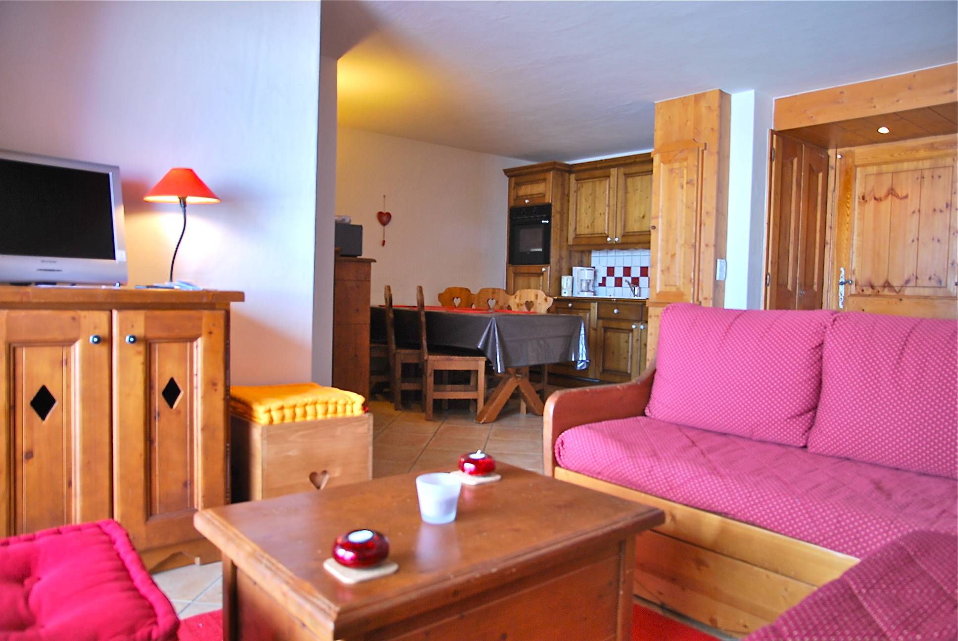 Appartement en duplex 3 chambres + mezzanine, 60m², 6 personnes avec balcon au 1er étage (entrée résidence) avec ascenseur, skis aux pieds.