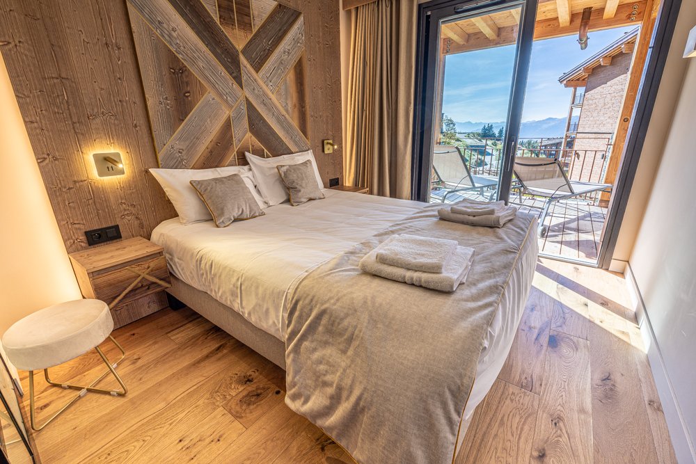 Appartement NEUF 6 personnes, 64 m² avec 2 chambres + 1 coin montagne et 1 grande TERRASSE orientée Ouest avec une magnifique VUE PANORAMIQUE sur le Mont Blanc. Décoration chic et contemporaine !