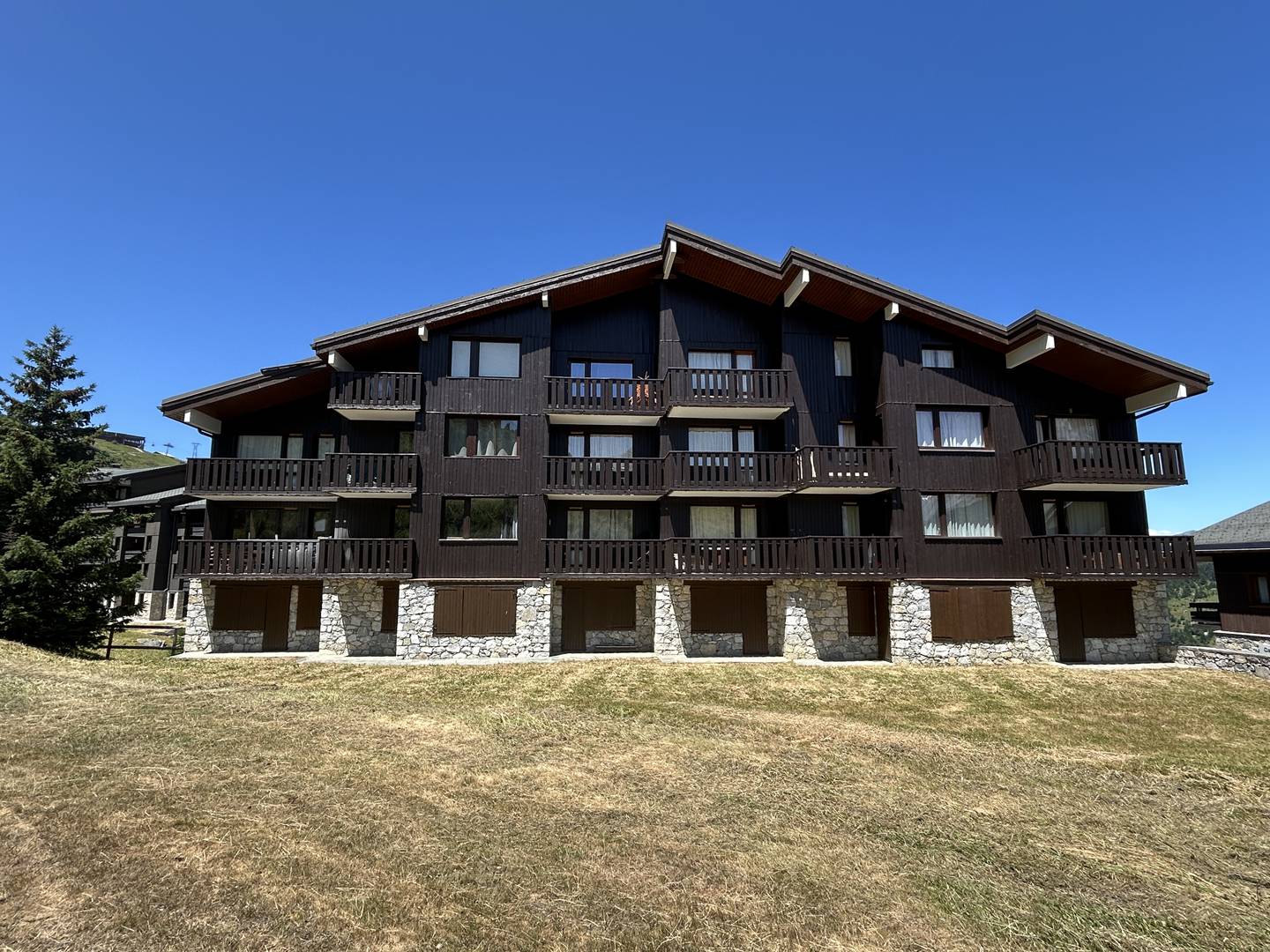 Séjour avec télévision, prolongé d'un balcon avec vue panoramique. Pas de couchages dans le séjour. Chambre avec lit double (140x190). Salle de bains et WC séparés. Cuisine américaine équipée de plaques vitrocéramique, four, lave-vaisselle, réfrigérateur, bouilloire, cafetière à filtre grille-pain. A l'étage, deux lits simples sur la mezzanine (80x190). Chambre mansardée contenant 2 lits simples et un lit tiroir (80x190). Salle de douche avec WC. Appartement non-fumeur. Animaux non admis. Casier à skis dans la résidence. 4ème étage.