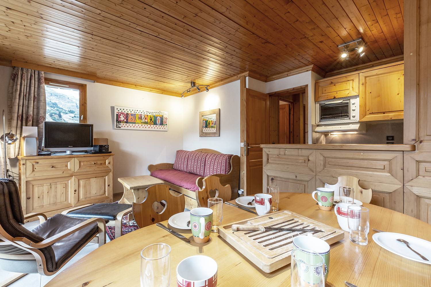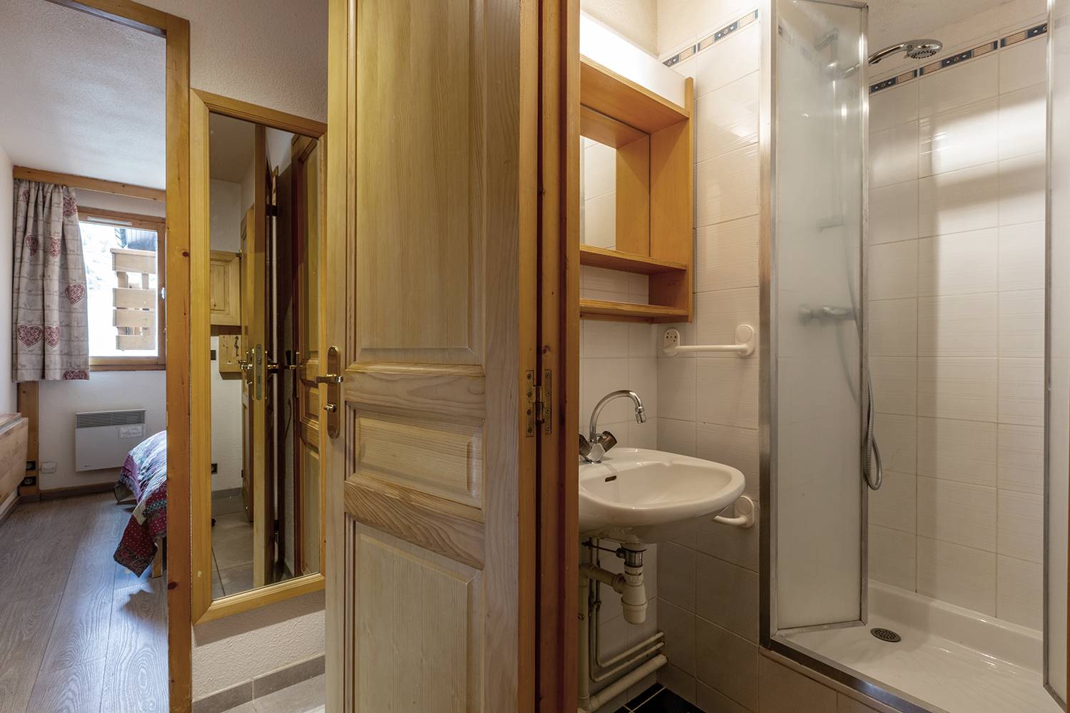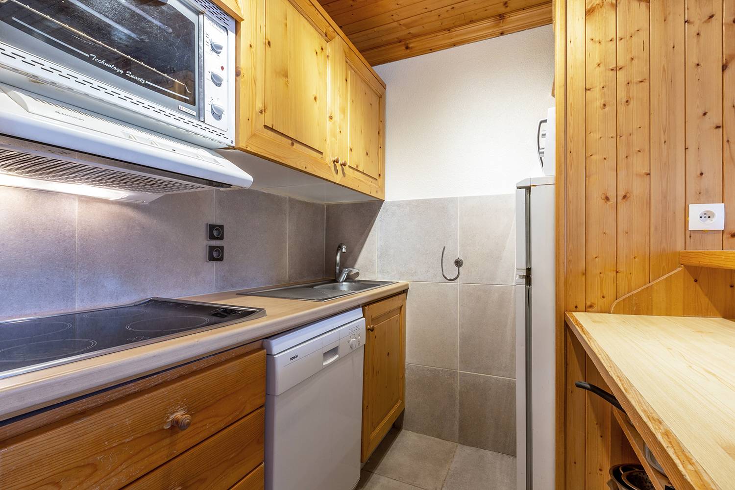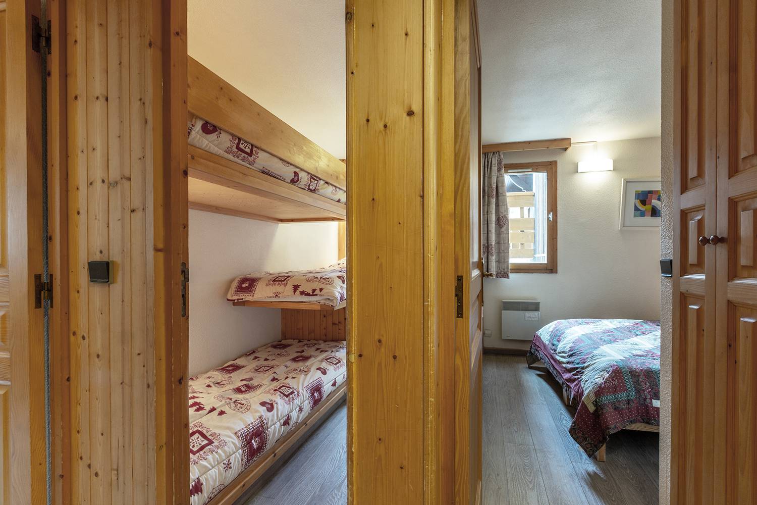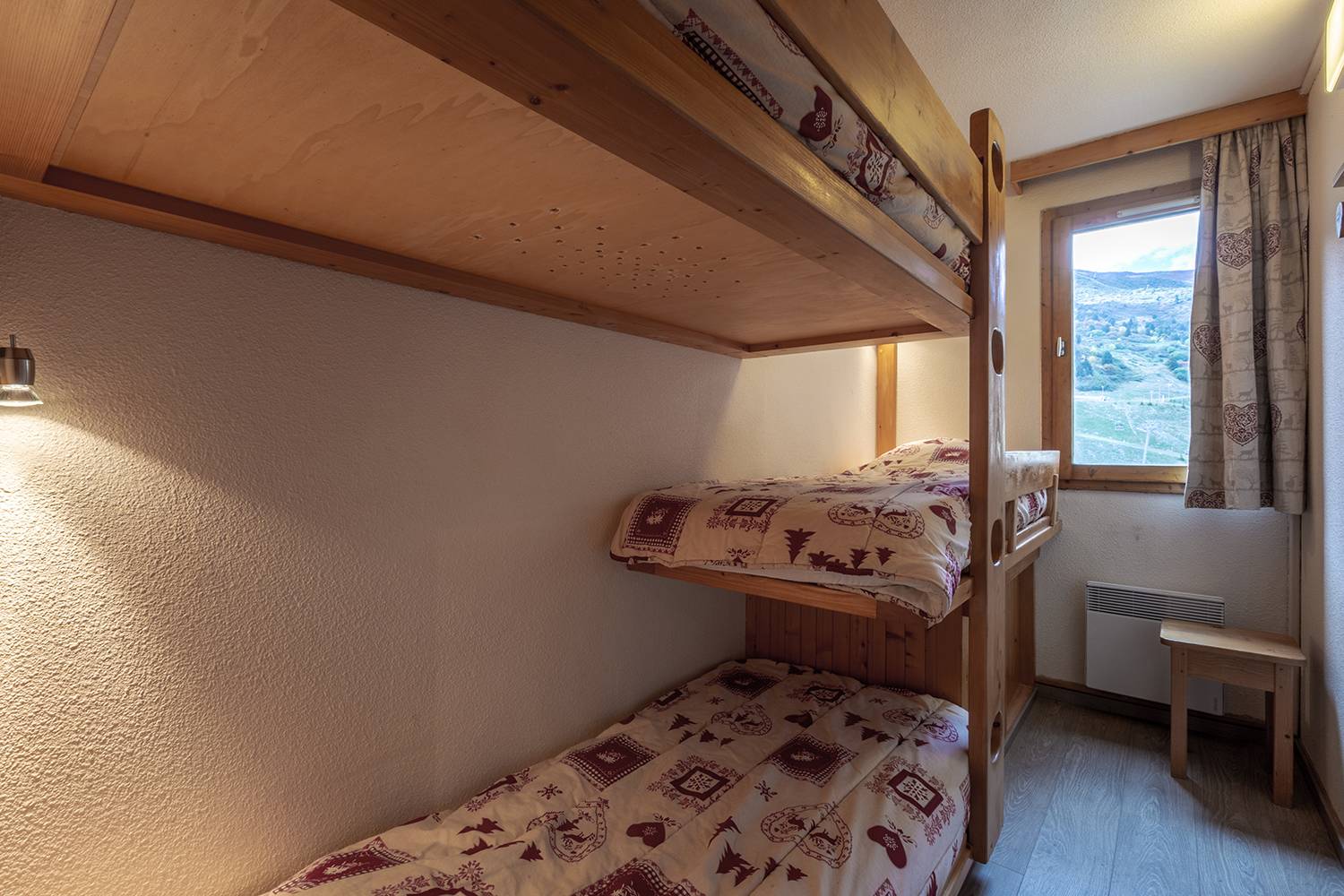 Le séjour se compose d'une banquette lit et d'un lit gigogne (80x190), la télévision et un lecteur DVD. Chambre avec 2 lits simples collés (80x190). Chambre cabine avec lits superposés = 3 couchages (80x190). La kitchenette est équipée de plaques vitrocéramique, four, micro-ondes, lave-vaisselle, réfrigérateur, hotte aspirante, grille-pain, bouilloire, cafetière. Accès WIFI. Salle de bains, salle de douches et WC séparés. Balcon, casier à ski et ascenseur dans la résidence.