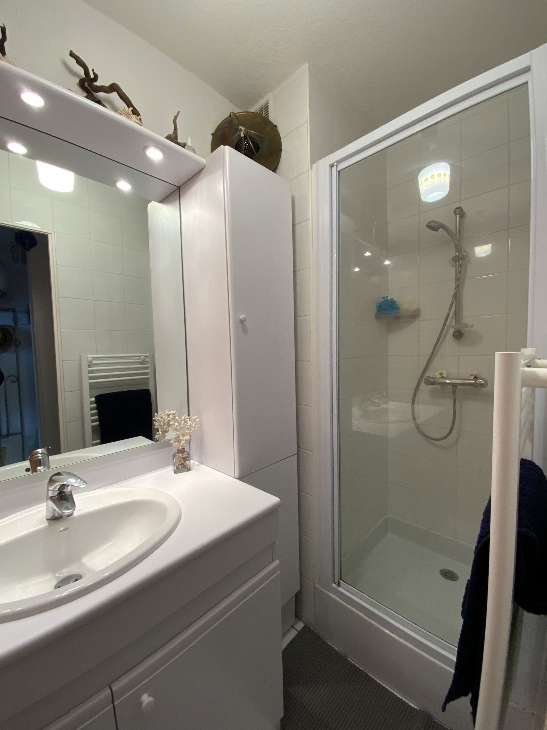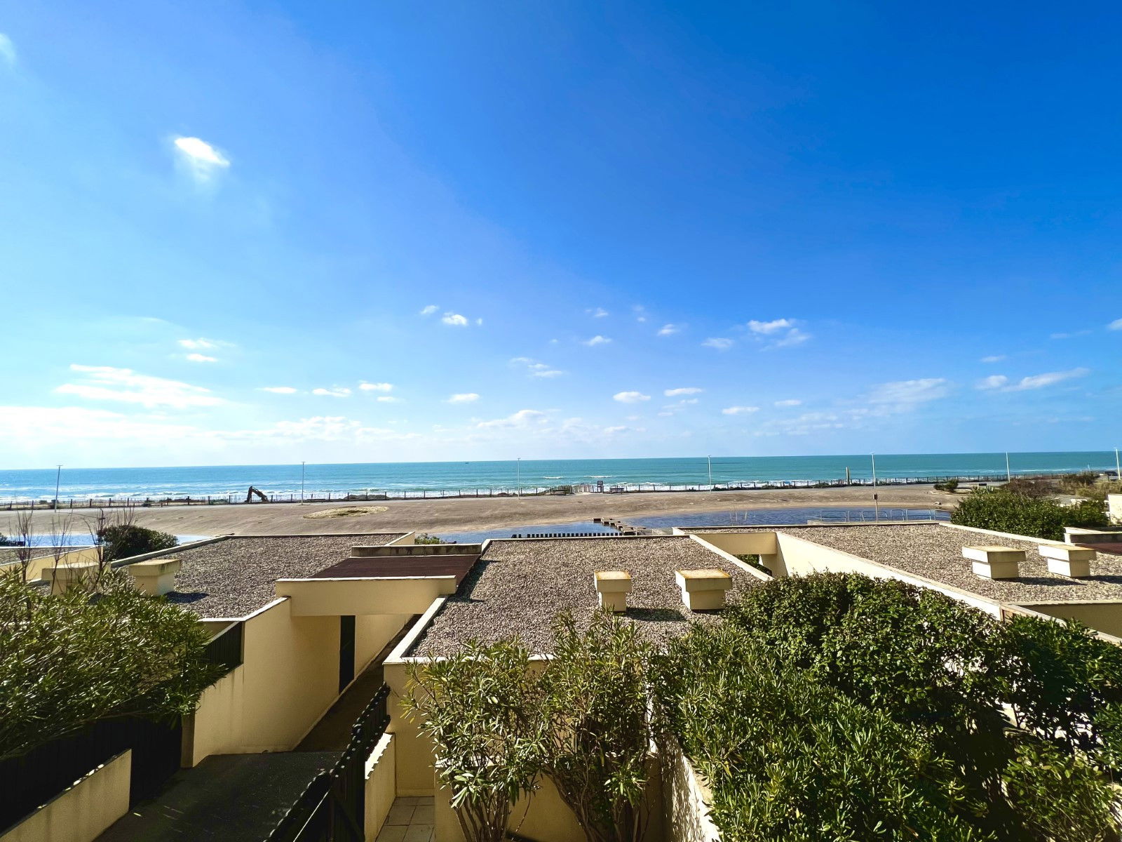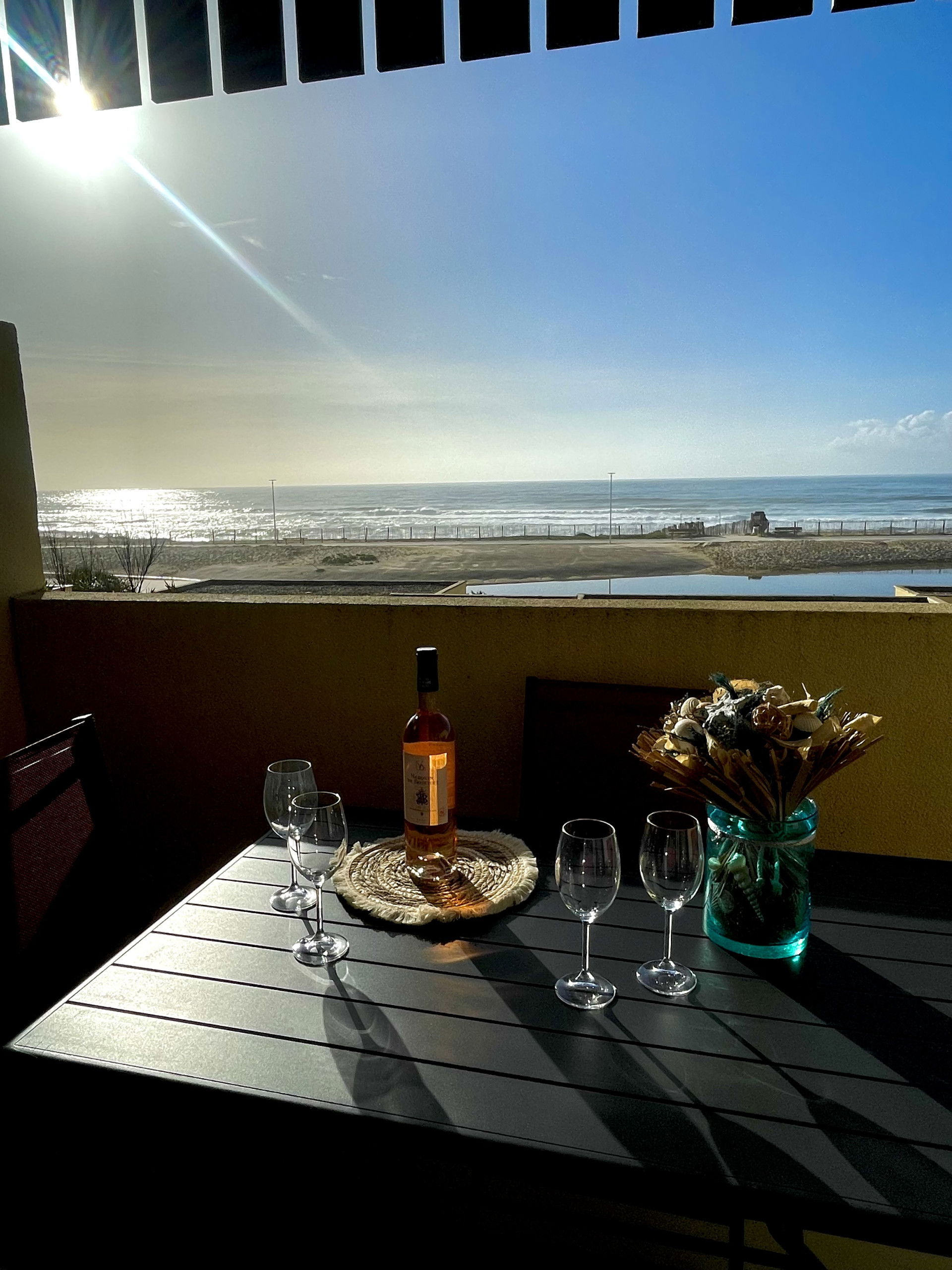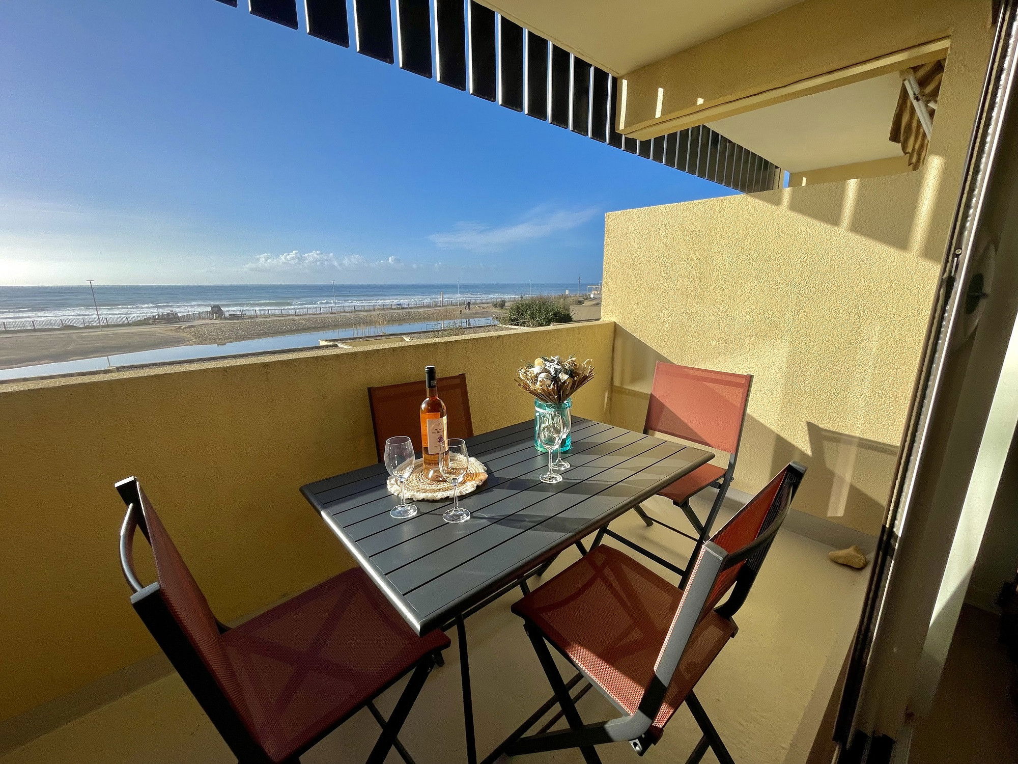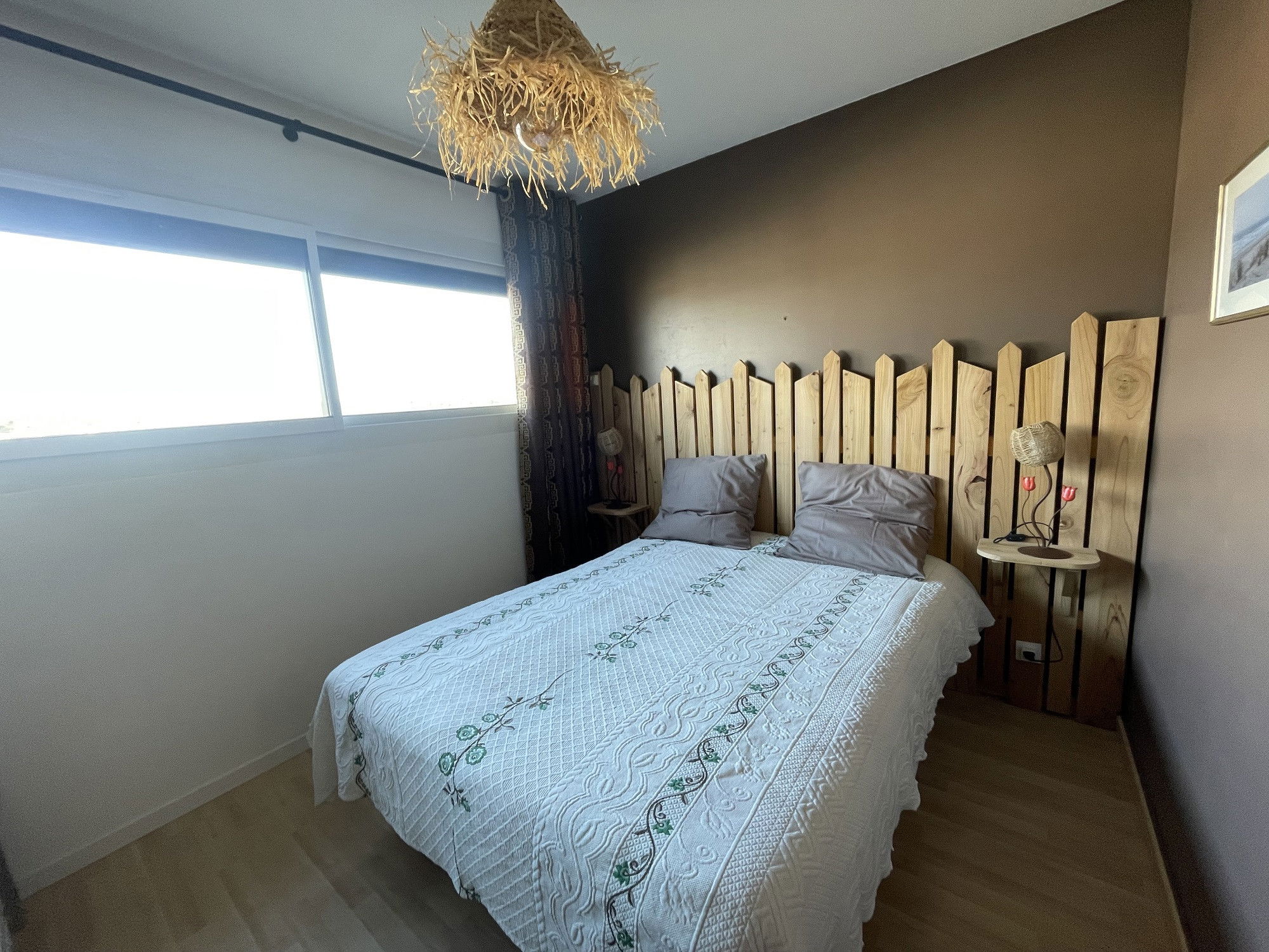 Le balcon, accessible depuis le séjour, offre une vue dégagée sur l’océan et est aménagé avec un salon de jardin, idéal pour profiter des repas en extérieur ou des couchers de soleil. Une place de parking privative complète ce bien.