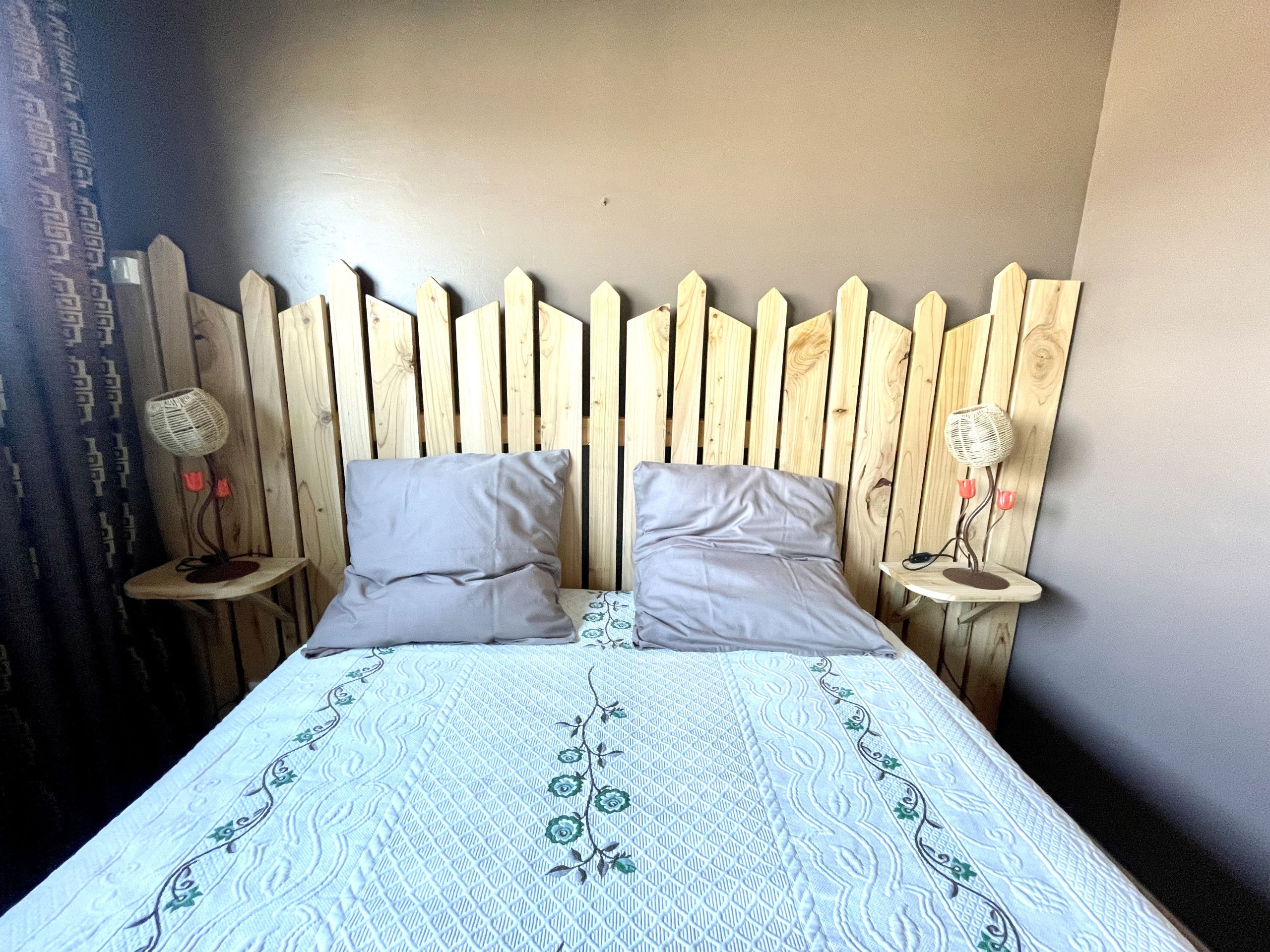 La chambre dispose d’un lit double de 140 cm et d’une armoire de rangement. La salle d’eau est équipée d’une douche et d’un lavabo. Les WC sont indépendants pour plus de confort.