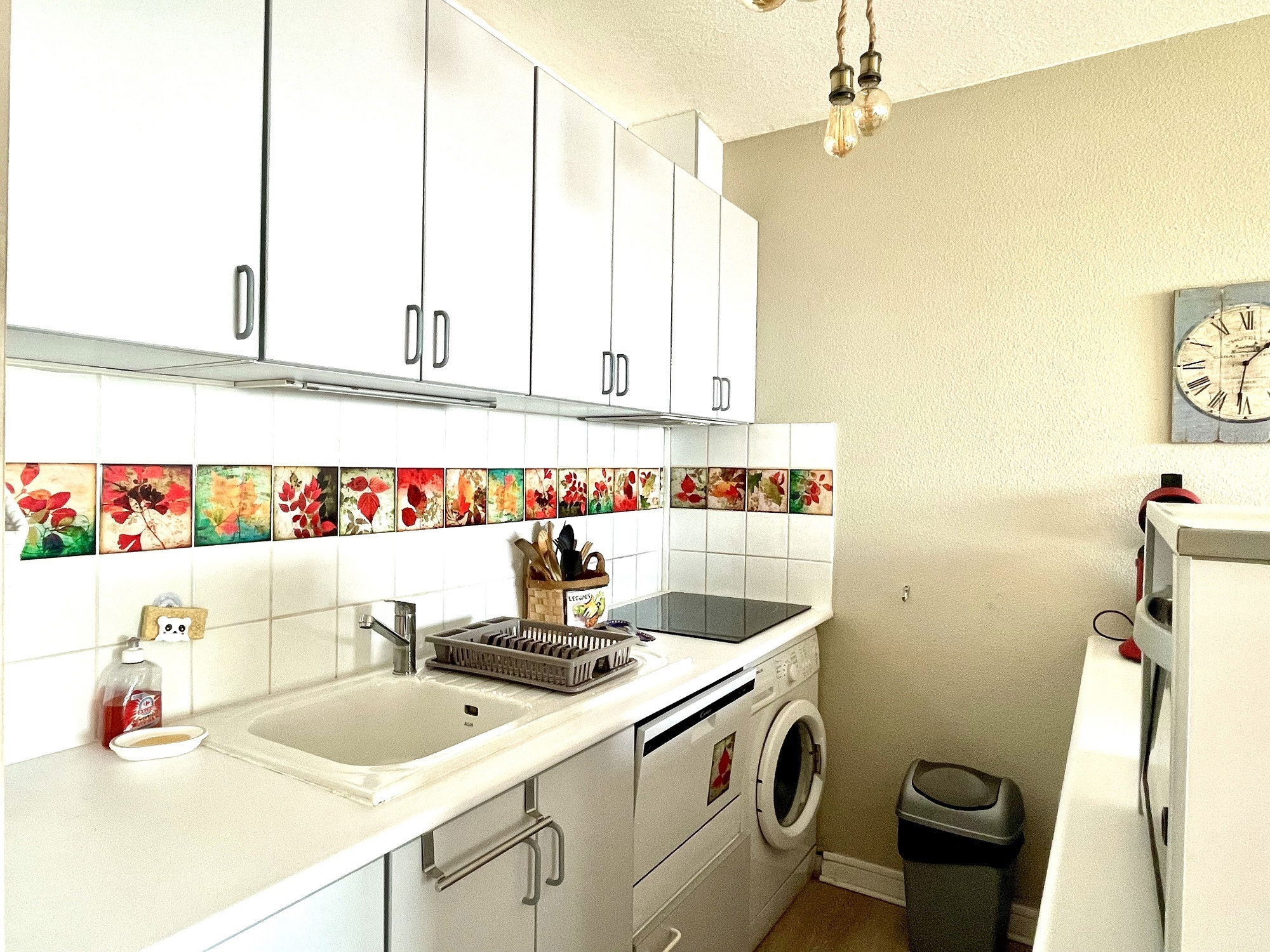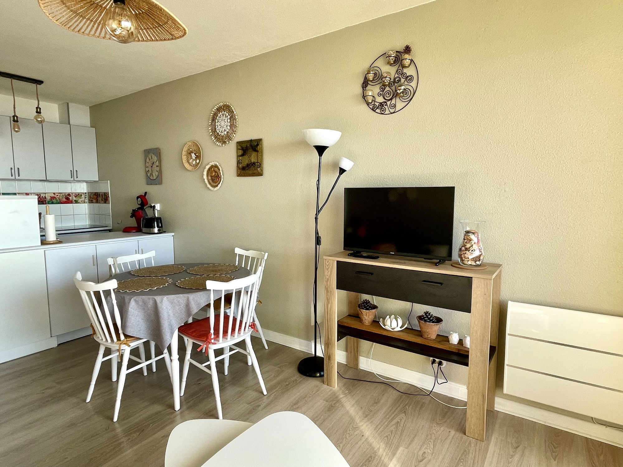L’appartement se compose d’un séjour agréable et lumineux équipé d’une table avec chaises, d’un canapé-lit confortable de 160 cm pour deux personnes et d’une télévision. Le coin cuisine, intégré au séjour, est entièrement équipé avec évier, plaques de cuisson électriques, four, réfrigérateur/congélateur, petit lave-vaisselle, lave-linge ainsi que vaisselle et ustensiles de cuisine.