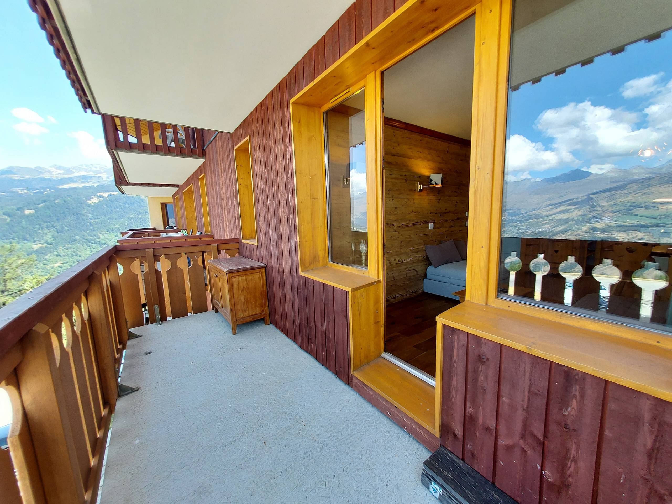 Le balcon avec vue sur le mont Blanc est exposé Nord-Ouest. Le casier à skis est dans la résidence