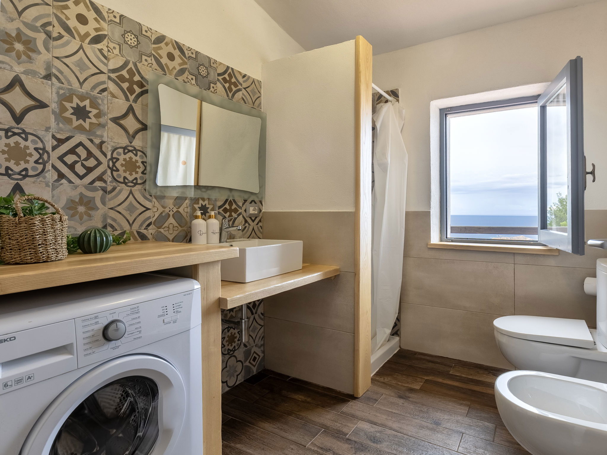 Villa 7 pièces 150 m2 sur 2 niveaux. Aménagement fonctionnel et confortable: séjour/salle à manger avec 1 divan-lit double et TV (satellite). Sortie sur le balcon, sur la véranda. 1 chambre double avec douche/bidet/WC. 1 chambre double avec douche/WC. 1 chambre avec 2 lits. Cuisine ouverte (4 plaques de cuisson, four, lave-vaisselle, congélateur). Douche/bidet/WC. Air-conditionné, chauffage à air chaud. À l'étage inférieur: (escalier extérieur) séjour/salle à manger. Sortie sur la véranda. 1 chambre double. 1 chambre avec 2 lits. Coin cuisine (4 plaques de cuisson, four, congélateur). Sortie sur la véranda. Douche/bidet/WC. Chauffage au gaz, chauffage par énergie solaire. Très belle vue panoramique sur la mer et les alentours. A disposition: lave-linge. Internet (Connexion WIFI, gratuit). Maximum 1 animal/ chien autorisé. Pas de liaison interne entre les étages. Si le nombre d’occupants n’atteint pas le maximum, un étage restera fermé. IT090074C2000Q2745