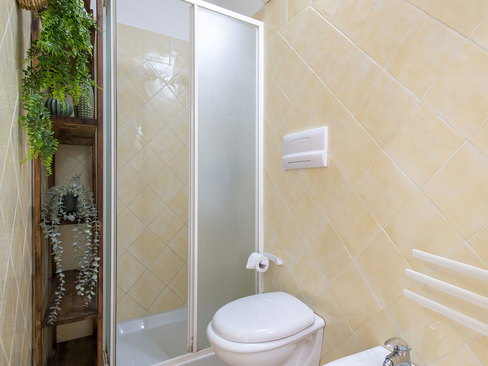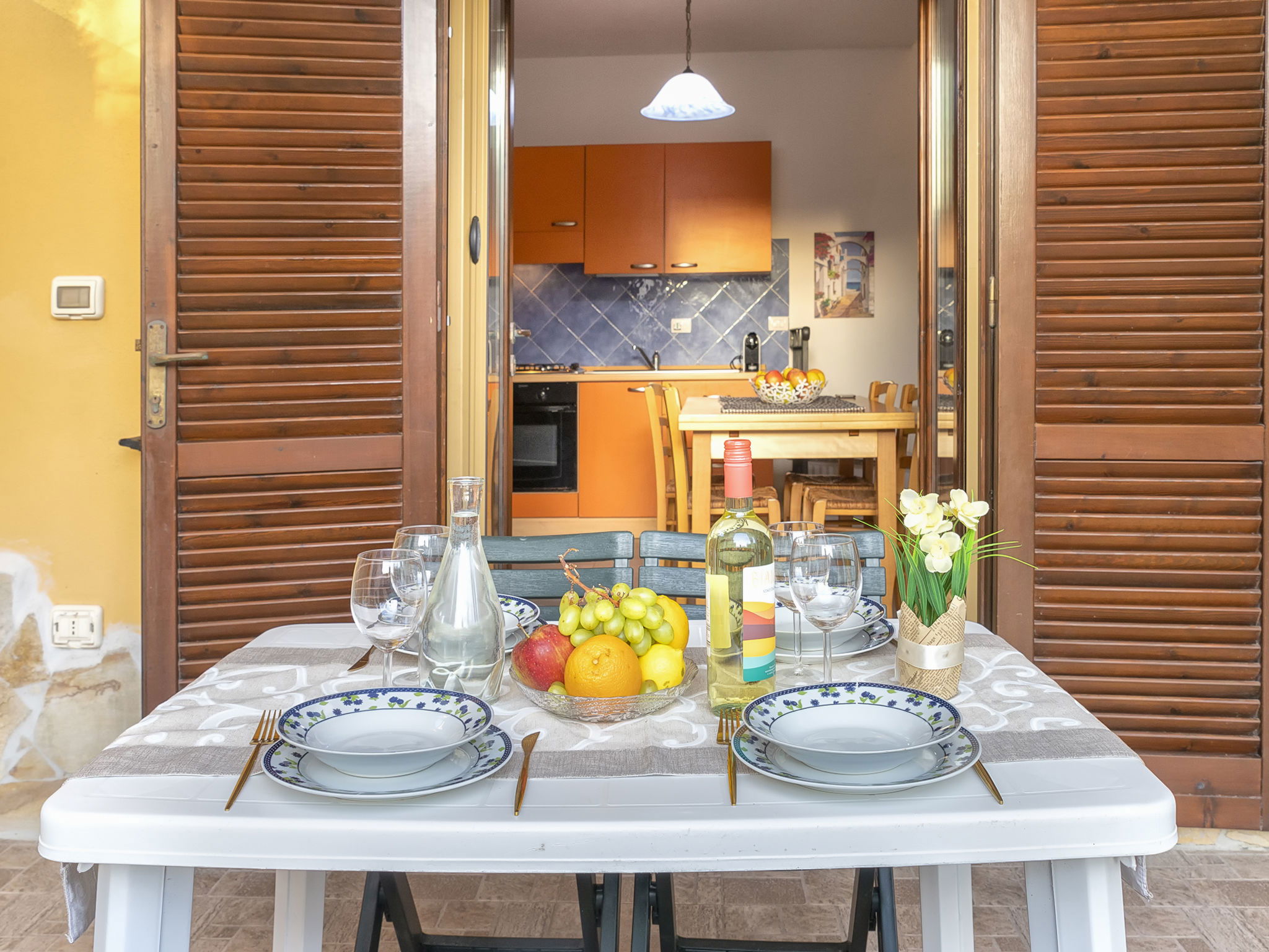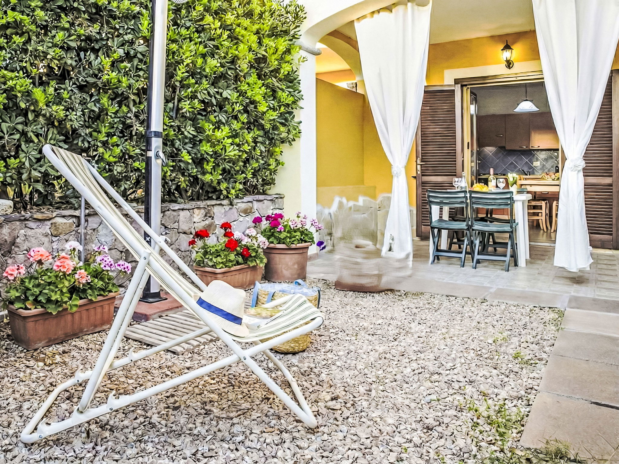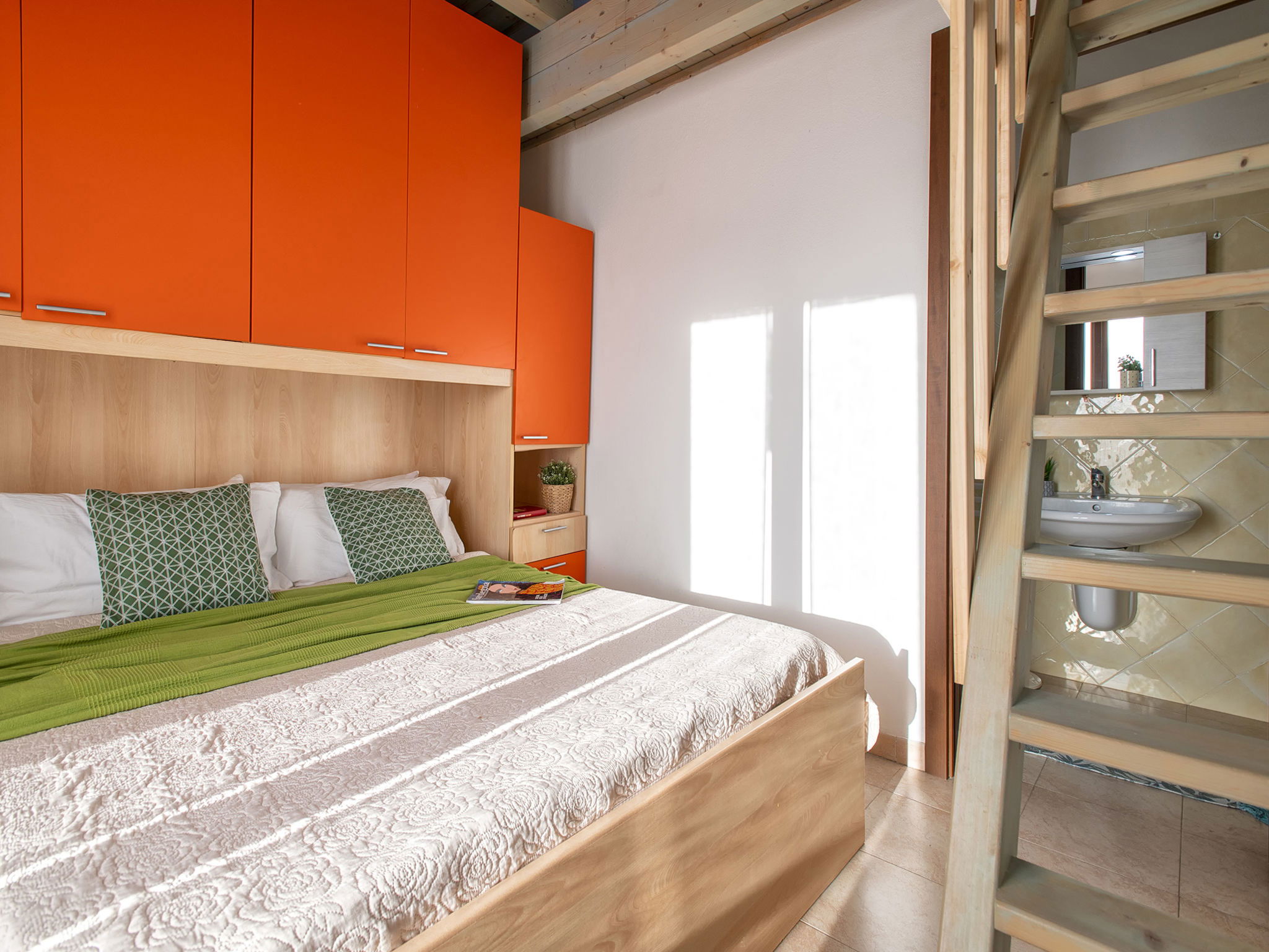 "Happy Island", maison 2 pièces 45 m2 sur 2 niveaux. Aménagement fonctionnel et confortable: séjour/salle à manger avec 1 divan-lit double et TV (écran plat). Sortie sur le jardin, sur la terrasse. Coin cuisine (4 plaques de cuisson, four, grille-pain, bouilloire électrique). (en sus), air-conditionné. À l'étage supérieur: 1 chambre avec 1 lit double. Sortie sur la terrasse. (escalier raide) galerie ouverte avec 1 lit. Douche/bidet/WC. Terrasse couverte. Meubles de terrasse, barbecue. A disposition: lave-linge, fer à repasser, sèche-cheveux. Internet (Connexion WIFI, gratuit). Place de parking No B6. Veuillez noter: maison non-fumeur. Maximum 1 animal/ chien autorisé. Détecteur de fumée, extincteur. Au lieu d'une chambre fermée, des espaces de couchage sont situés dans une zone ouverte (galerie, alcôve...). IT090081C2000R0060
