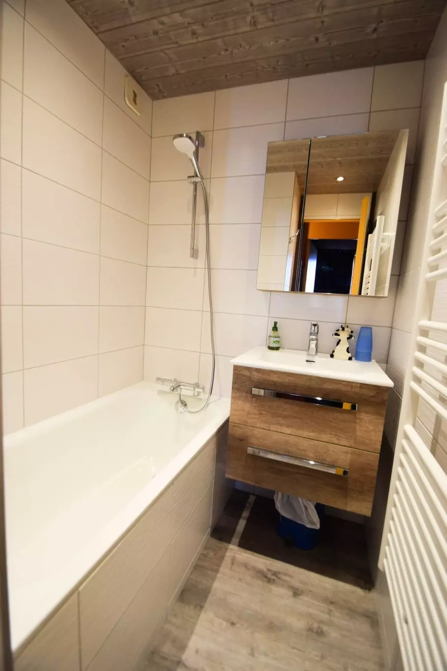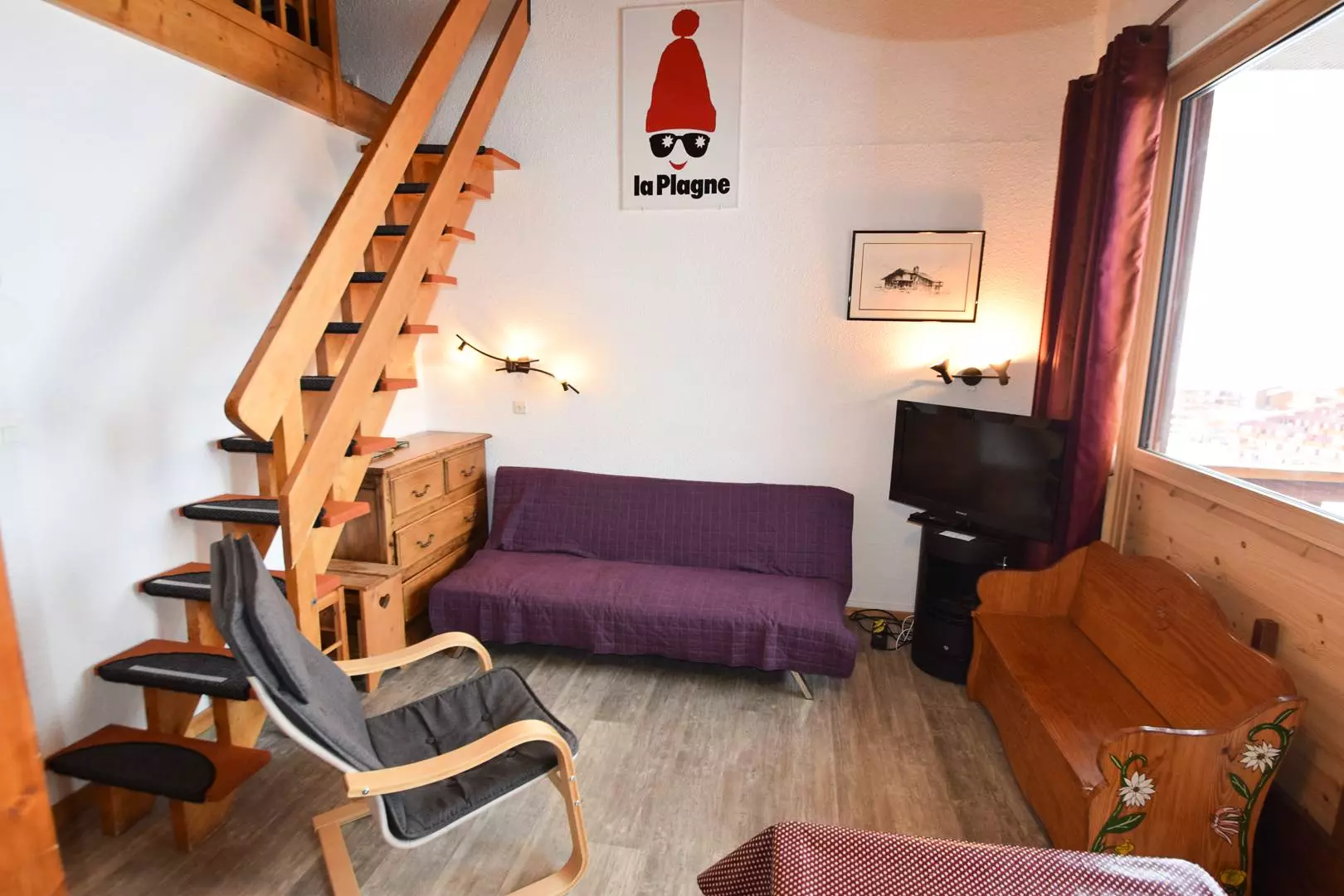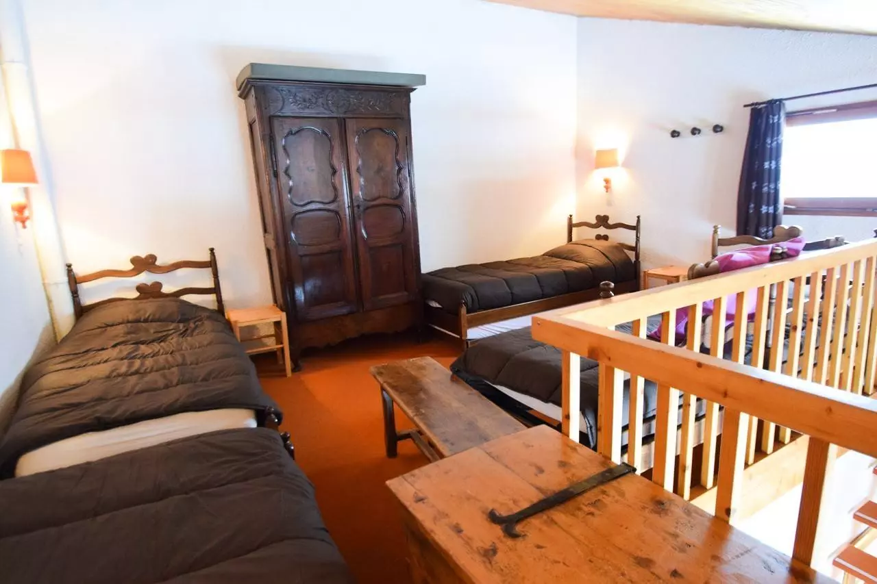 Appt 2 pièces + mezzanine, 5/6 pers, env 39m2, balcon Est, vue dégagée sur la montagne et le Dou du Praz, 4ème étage avec ascenseur. Cuisine : 2 plaques vitro céramiques, réfrigérateur, four micro-ondes/grill, lave-vaisselle petit modèle, cafetière senseo - Séjour : coin repas et coin salon, télévision - Chambre : 1 lit double - Mezzanine : 4 lits 1 pers - Salle de bains : baignoire, WC séparés - Sols : plastique séjour, sdb et wc, carrelage cuisine et moquette chambre et mezzanine - Literie : couettes et couvertures - Casier à skis n° 419, situé au rdc. Appartement non fumeur,