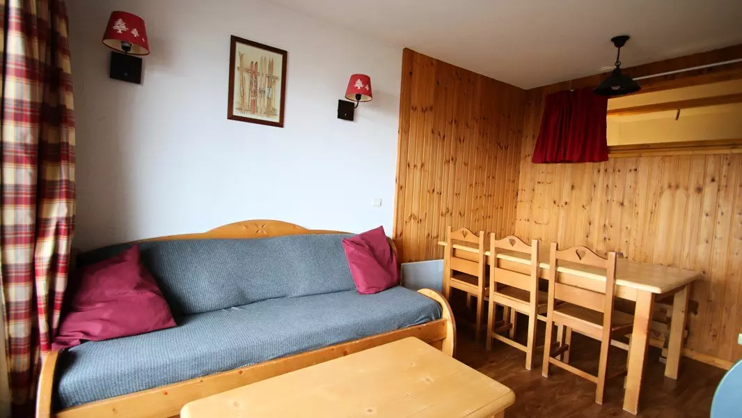 - Séjour avec canapé lit gigogne convertible (2/80x190 ou 160x190), table à manger, tv écran plat et balcon équipé d’une table et deux chaises.