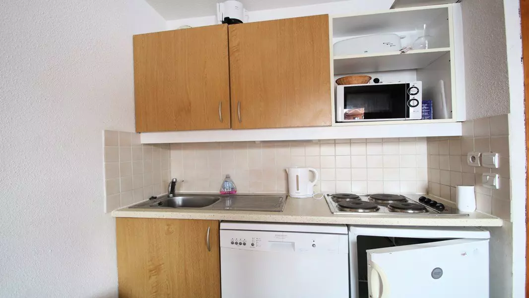 - Cuisine équipée : lave vaisselle, 4 plaques électriques, mini four, bouilloire, cafetière, grille pain. Séjour comprenant une banquette gigogne, balcon nord.