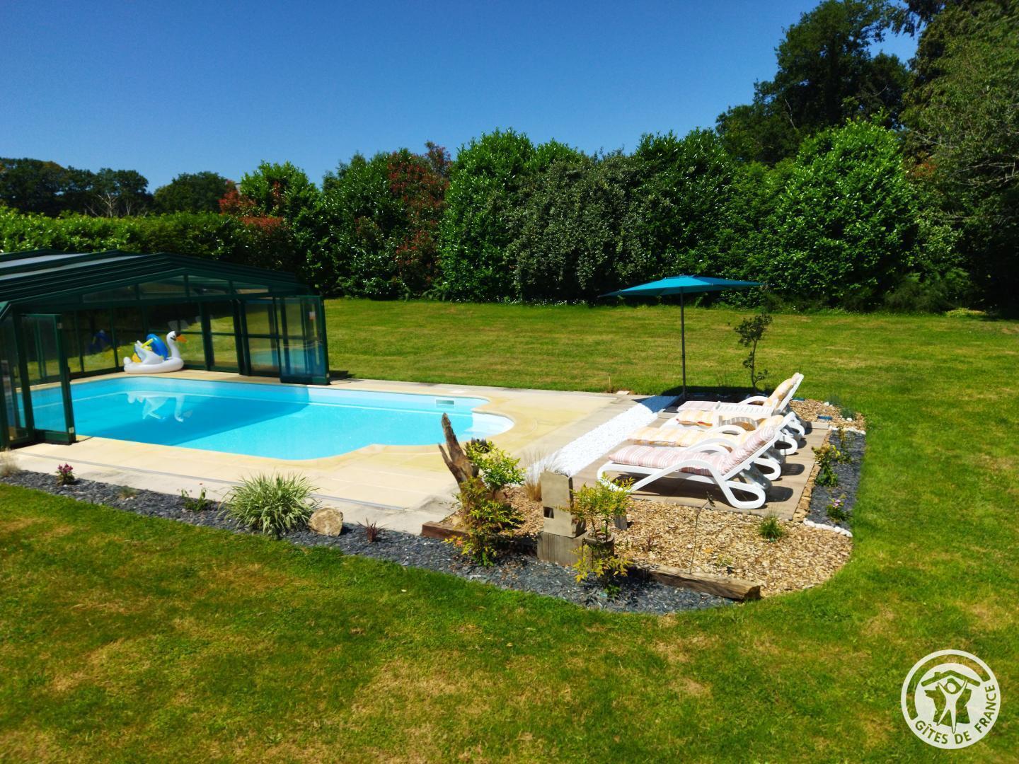 Piscine couverte de 10x5 avec profondeur progressive non chauffée et partagée avec les propriétaires, entretenue par nos soins