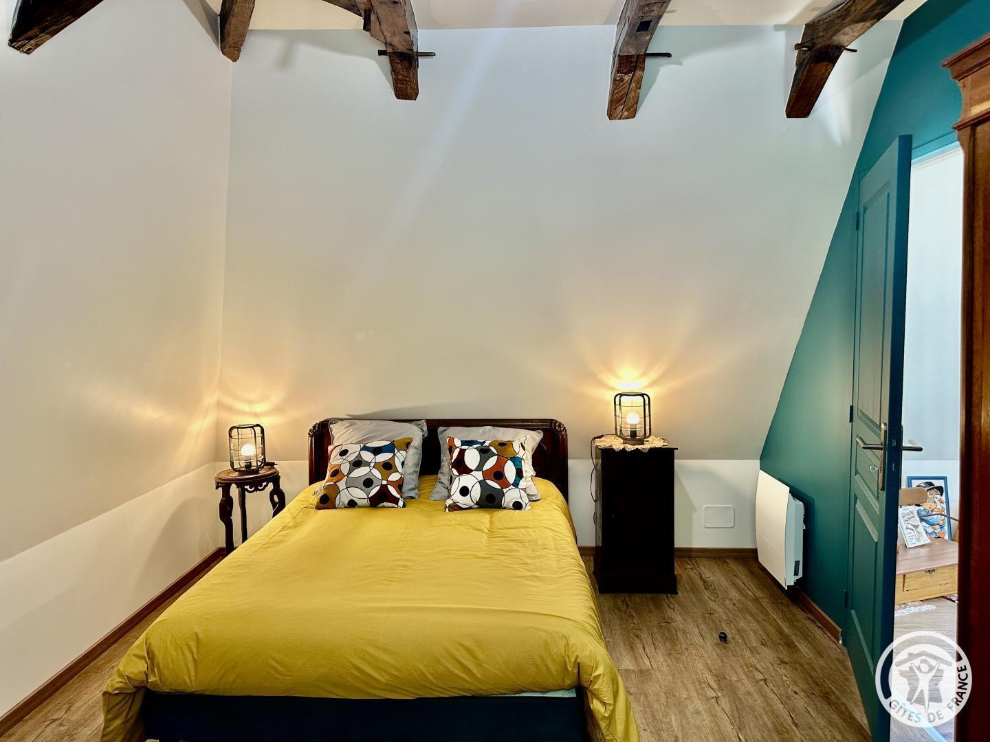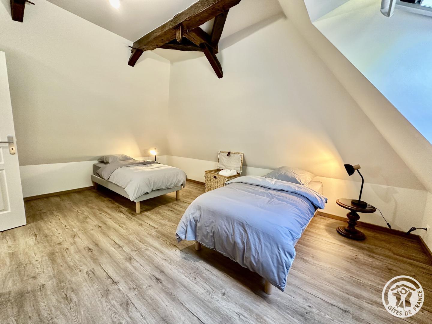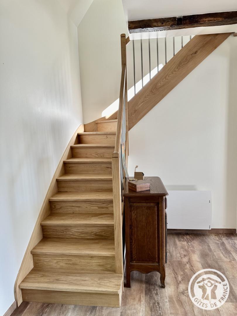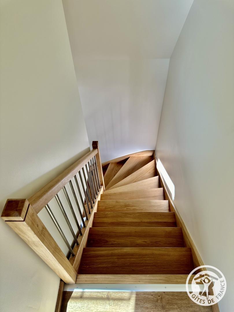 La maison se compose au rez de chaussée d'un salon-séjour avec un poêle à granulés et cuisine ouverte, d'une chambre double avec lit 160cm, une salle d'eau et wc indépendant. Accès à la terrasse. A l'étage sont desservies deux chambres, une chambre double avec lit 140cm et une seconde chambre avec deux lits 1 personne de 90cm. Une salle d'eau et wc indépendant. Dans la cuisine, cafetière Nescafé Dolce Gusto et cafetière à filtre, bouilloire, grille-pain, lave vaisselle, four, plaque céramique...