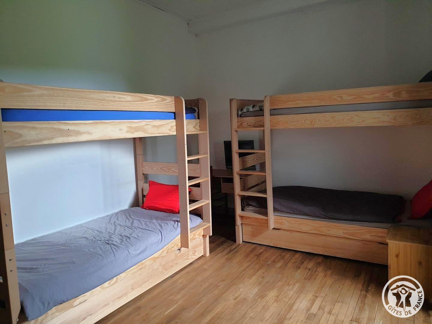 À l'étage supérieur, vous trouverez trois chambres : deux avec un lit double de 140 cm et une troisième avec deux lits superposés.