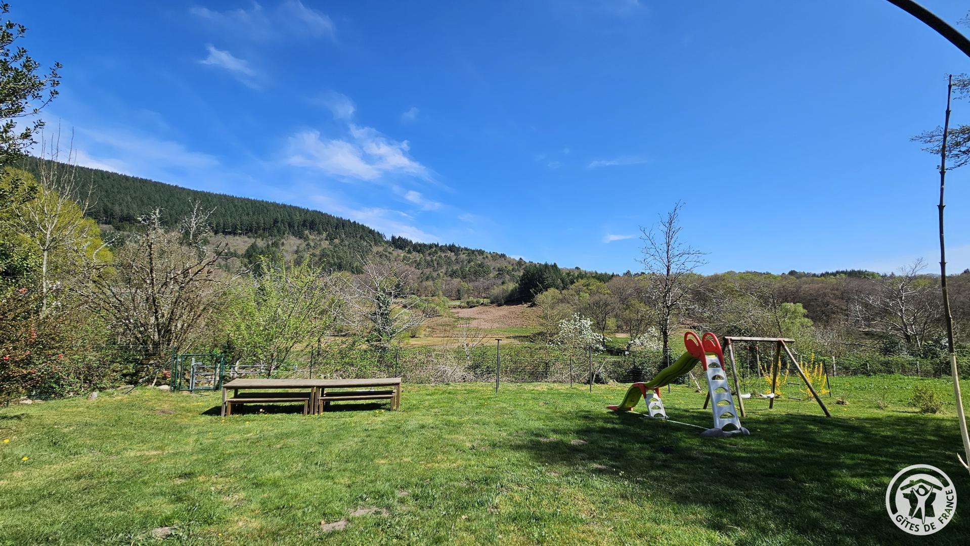 Le jardin clos, à seulement 10 mètres de la maison, offre un salon de jardin, un bac à sable, un toboggan et une balançoire pour le plaisir des enfants.