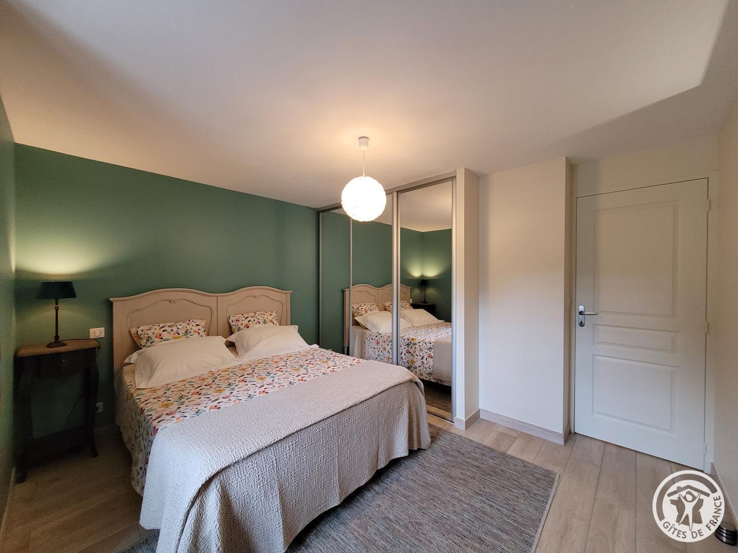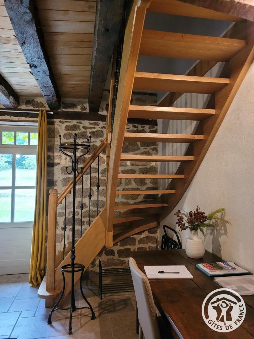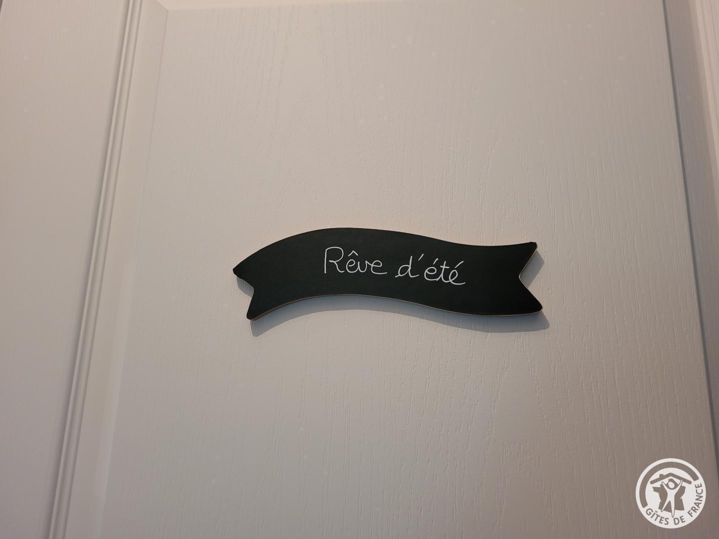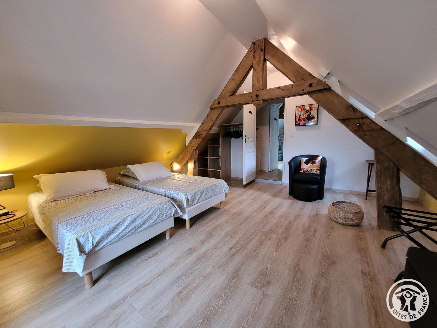 Depuis le salon du RDC, accès à la chambre "Rêve d'été", 2 lits simples de 90x200, qui bénéficie aussi d'un escalier extérieur avec petit perron.