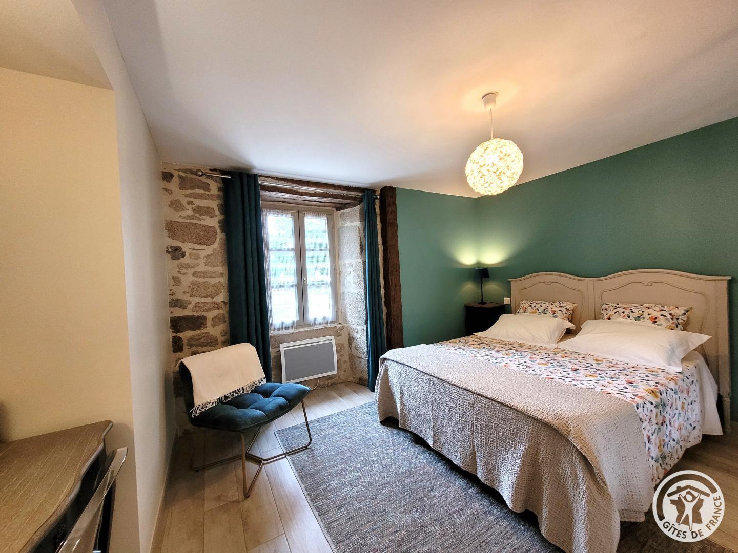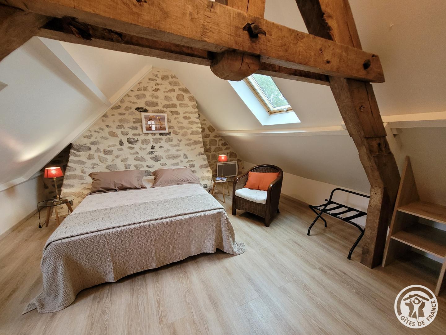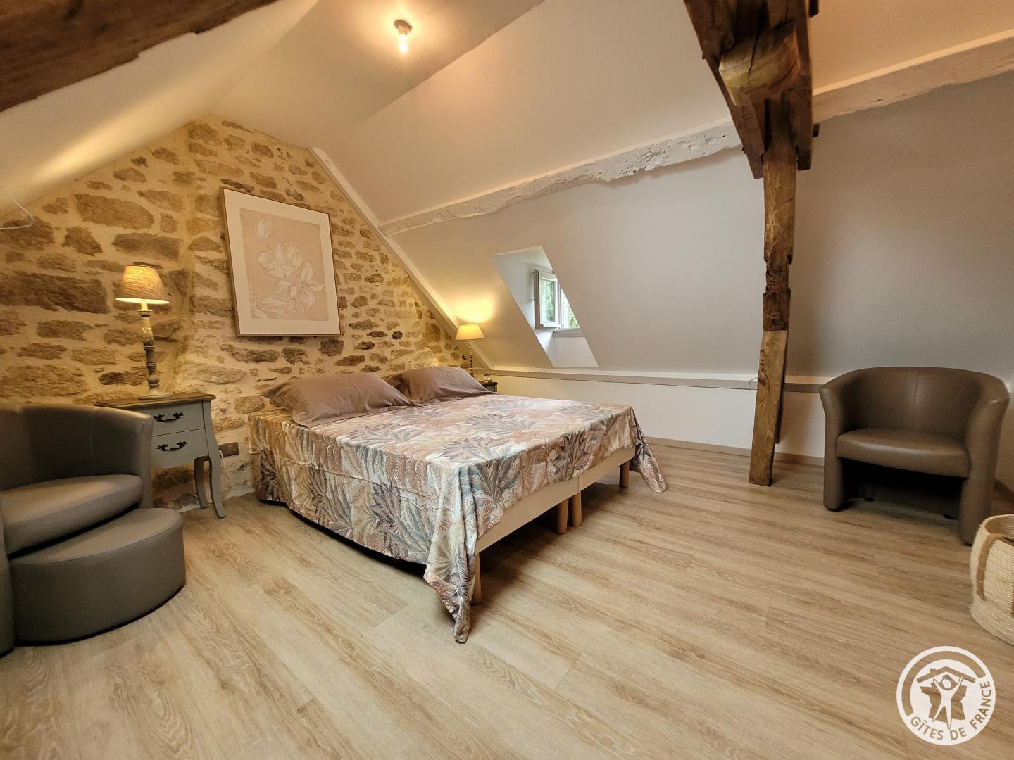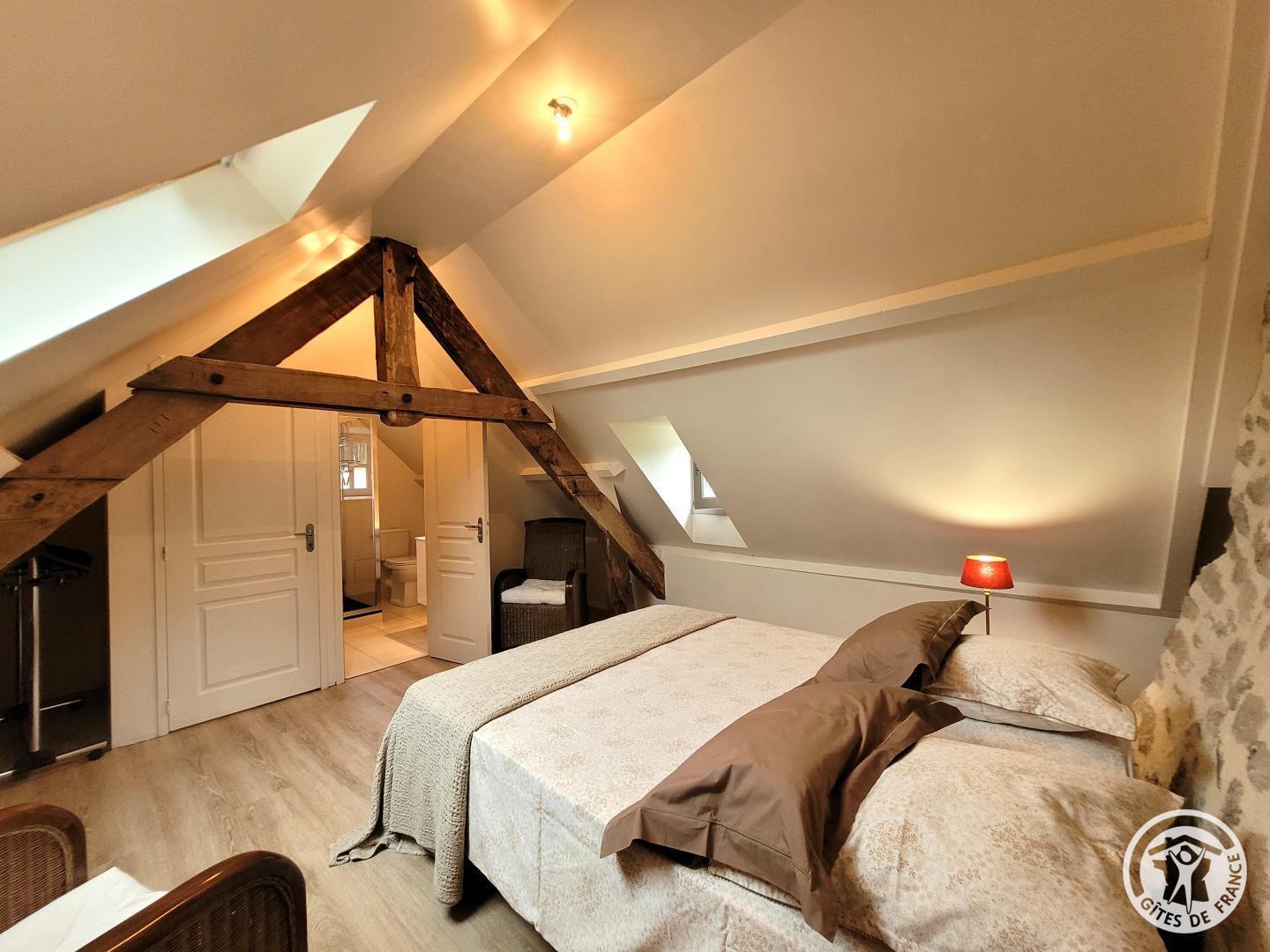 Depuis la cuisine du RDC, accès à la chambre "Feuille de Vigne", lit double 160x200 avec sa salle d'eau et son WC.