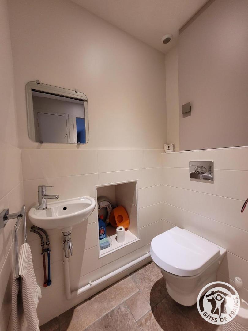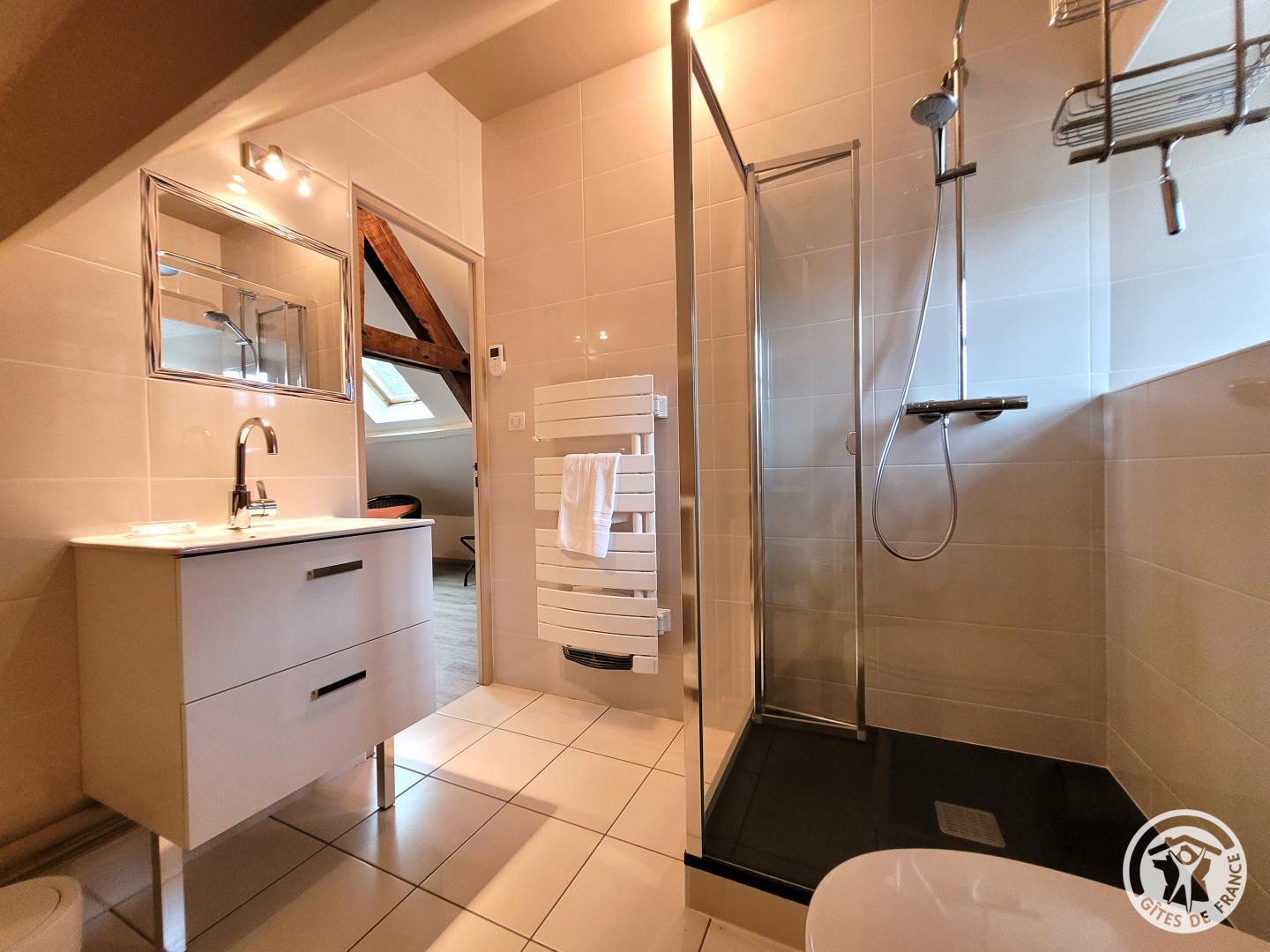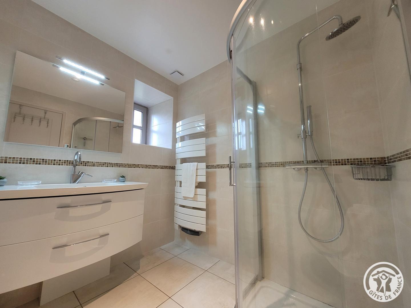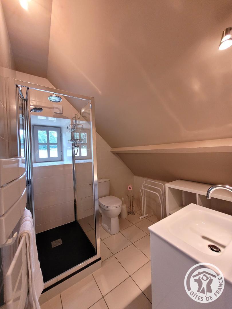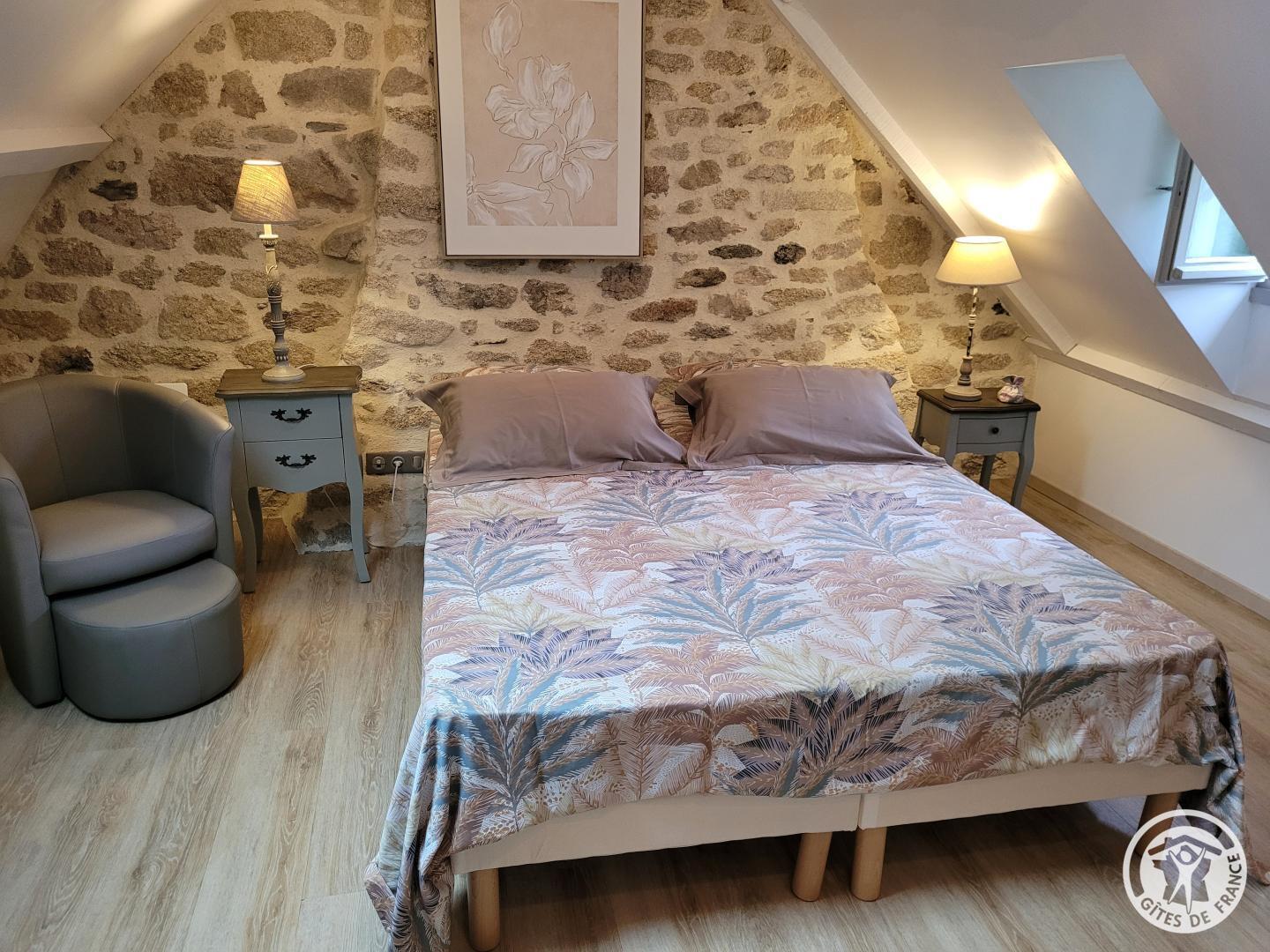 Depuis la cuisine du RDC, accès à la chambre "Feuille de Vigne", lit double 160x200 avec sa salle d'eau et son WC.
