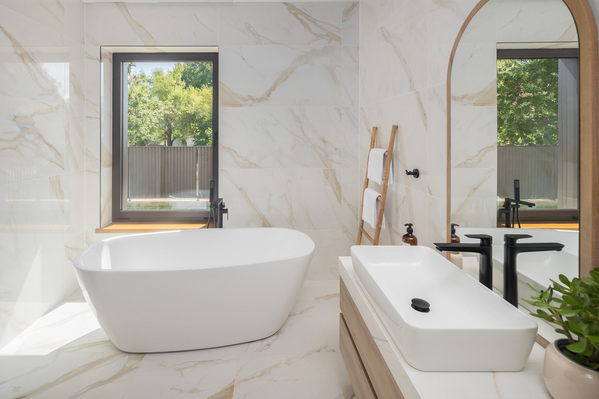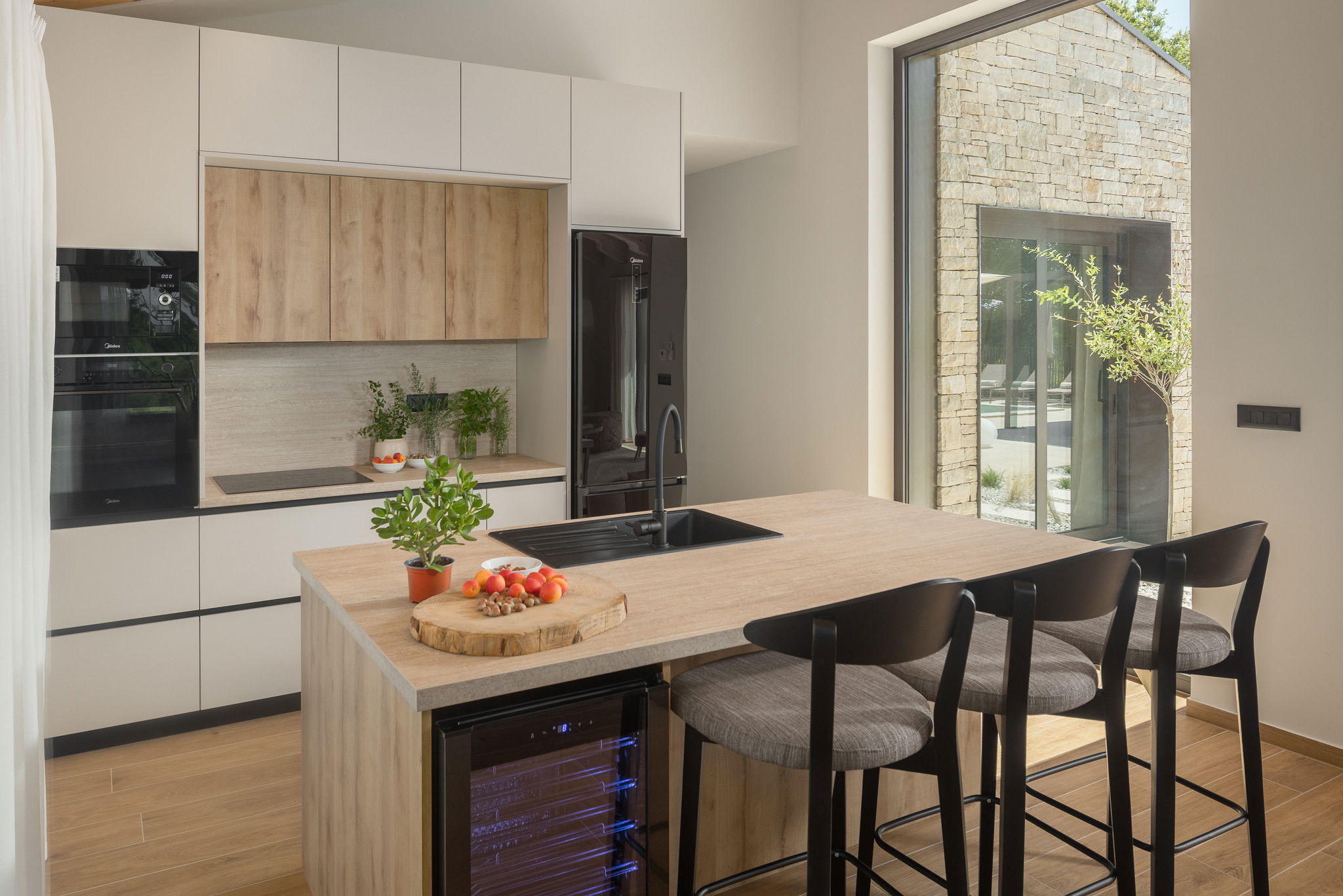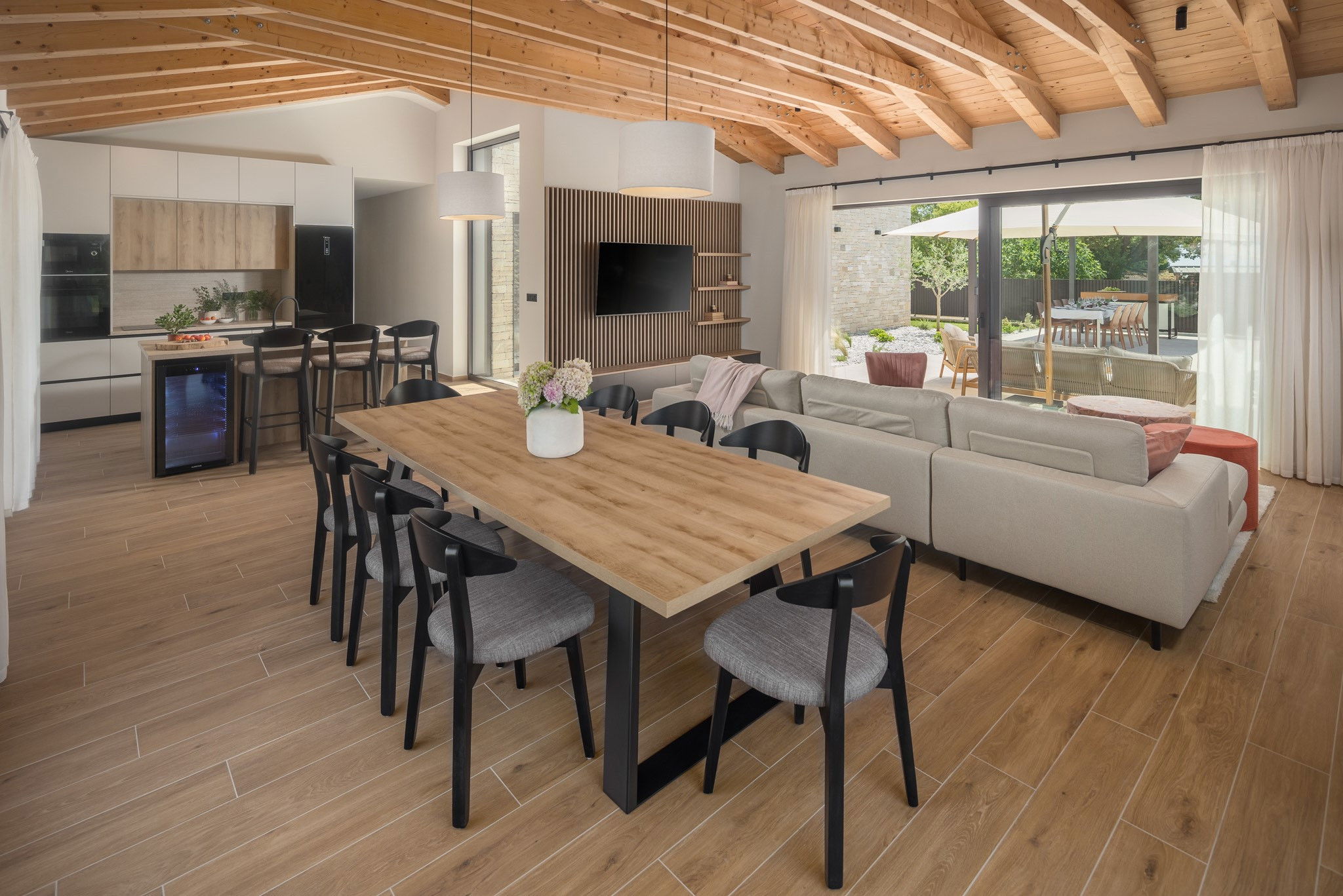 Logement de 200 m² meublé avec goût et très lumineux, avec vue sur le jardin et la piscine.