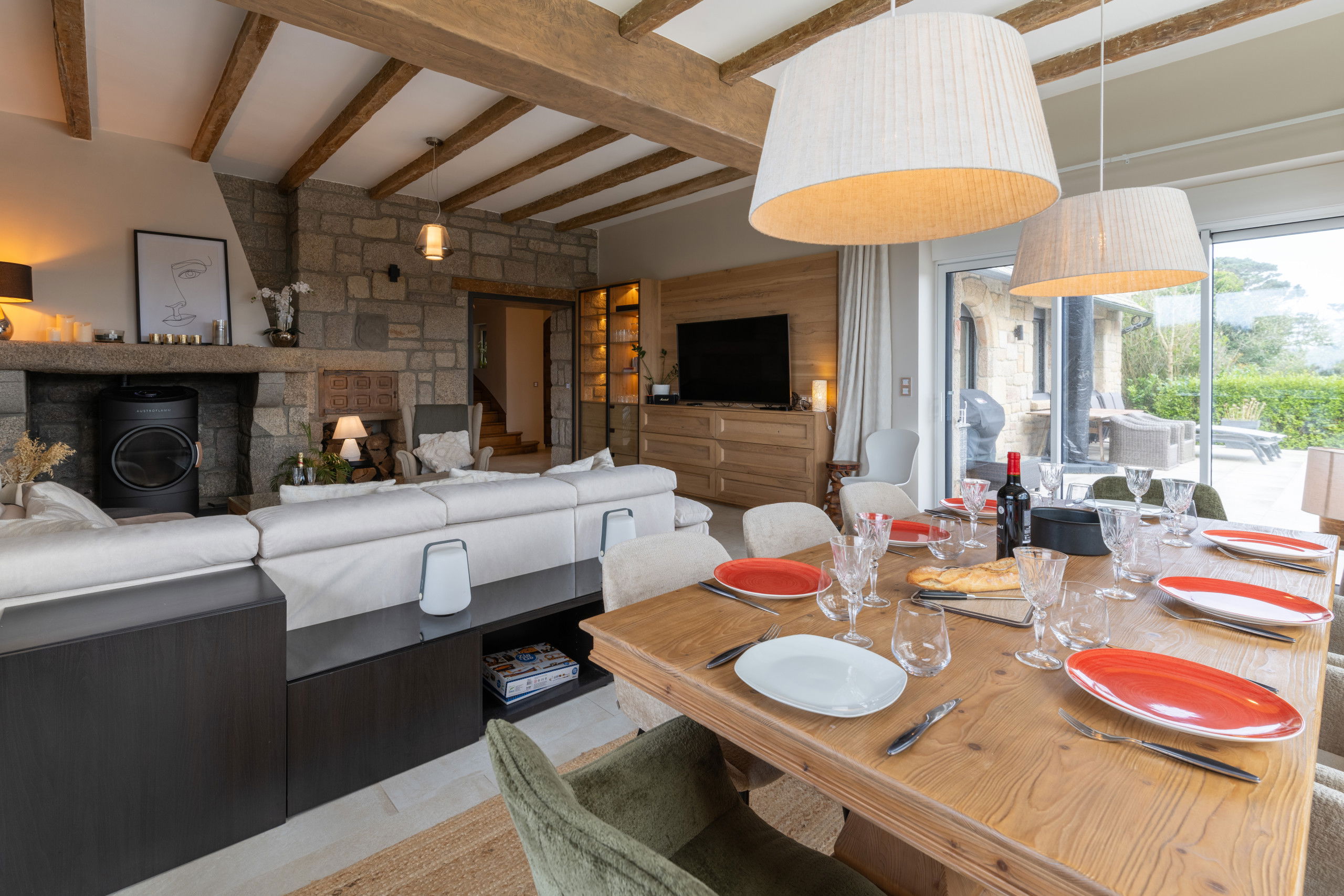 Vous pourrez profiter d'un très grand jardin clos et arboré qui possède son propre accès à l'Aber, c'est un point de départ idéal pour une sortie en kayak ou paddle ! Vous pourrez profiter également de la grande terrasse avec sa magnifique vue sur l'Aber pour des repas en famille ou entre amis. Et le point d'orgue de ces extérieur est le spa chauffé à 29 degrés toute l'année.
