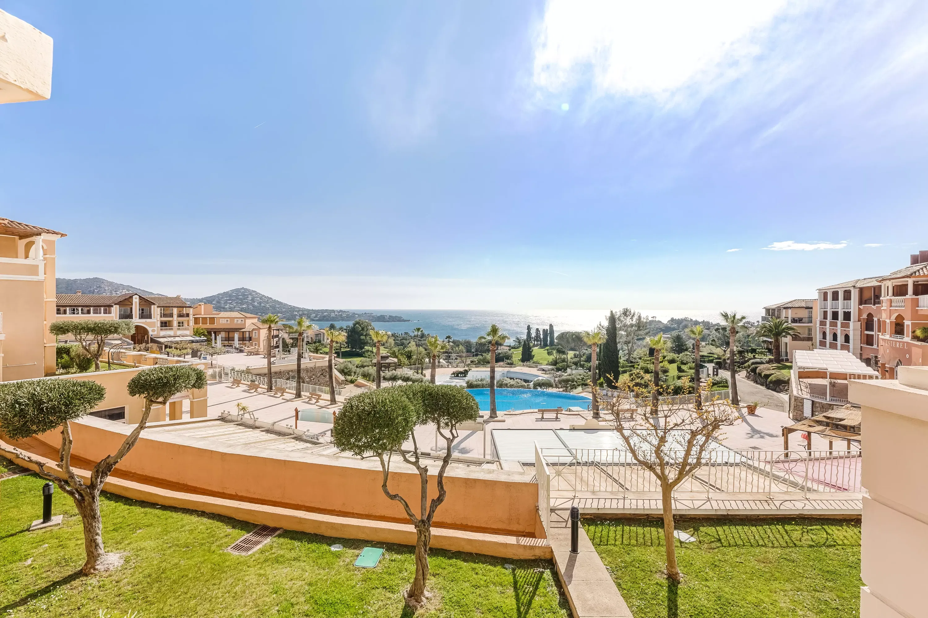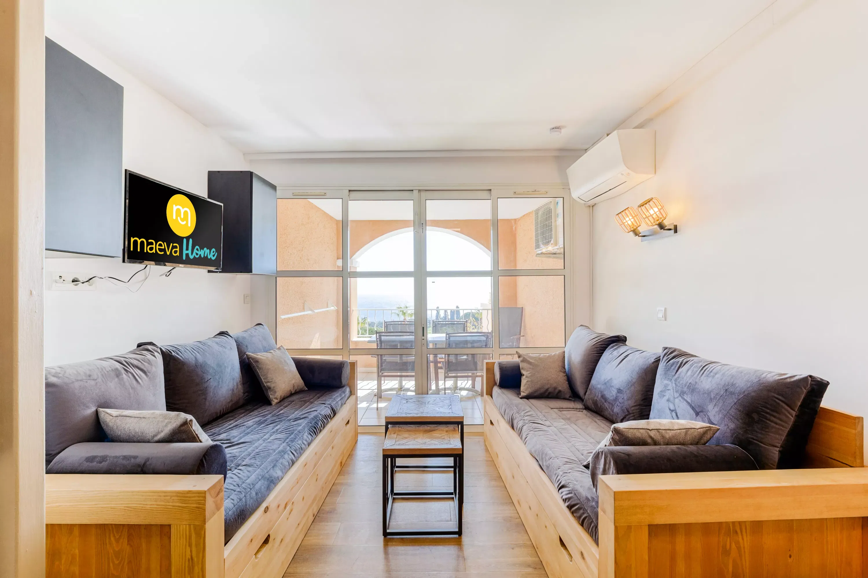 Les atouts de votre location : Appartement pour 5 personnes offrant un balcon avec vue sur mer au de votre résidence avec piscines.