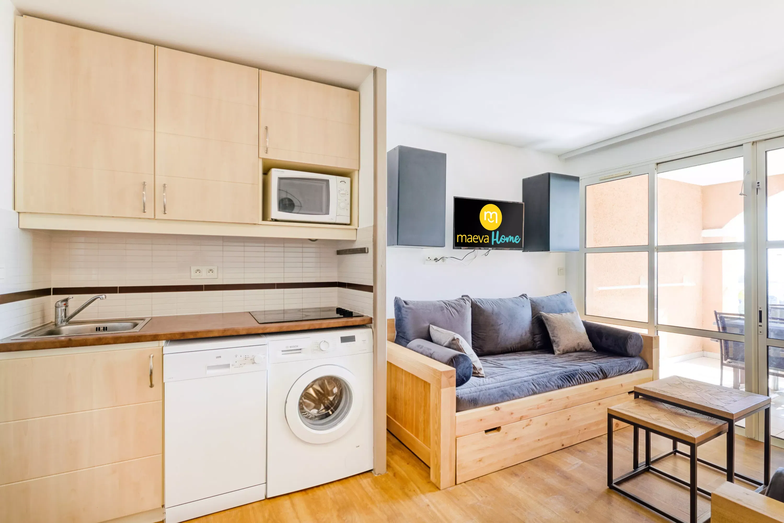 Votre location de vacances comporte : 1 séjour, 1 cuisine, 1 chambre, 1 salle de bain, 1 WC séparé, 1 balcon et 1 place de parking.
