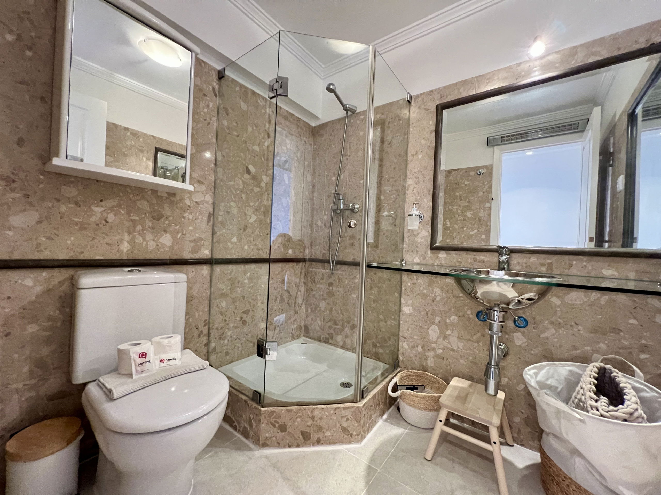 Tous les draps et serviettes sont fournis, ainsi que des commodités pour le premier jour comme du gel douche et du papier toilette.